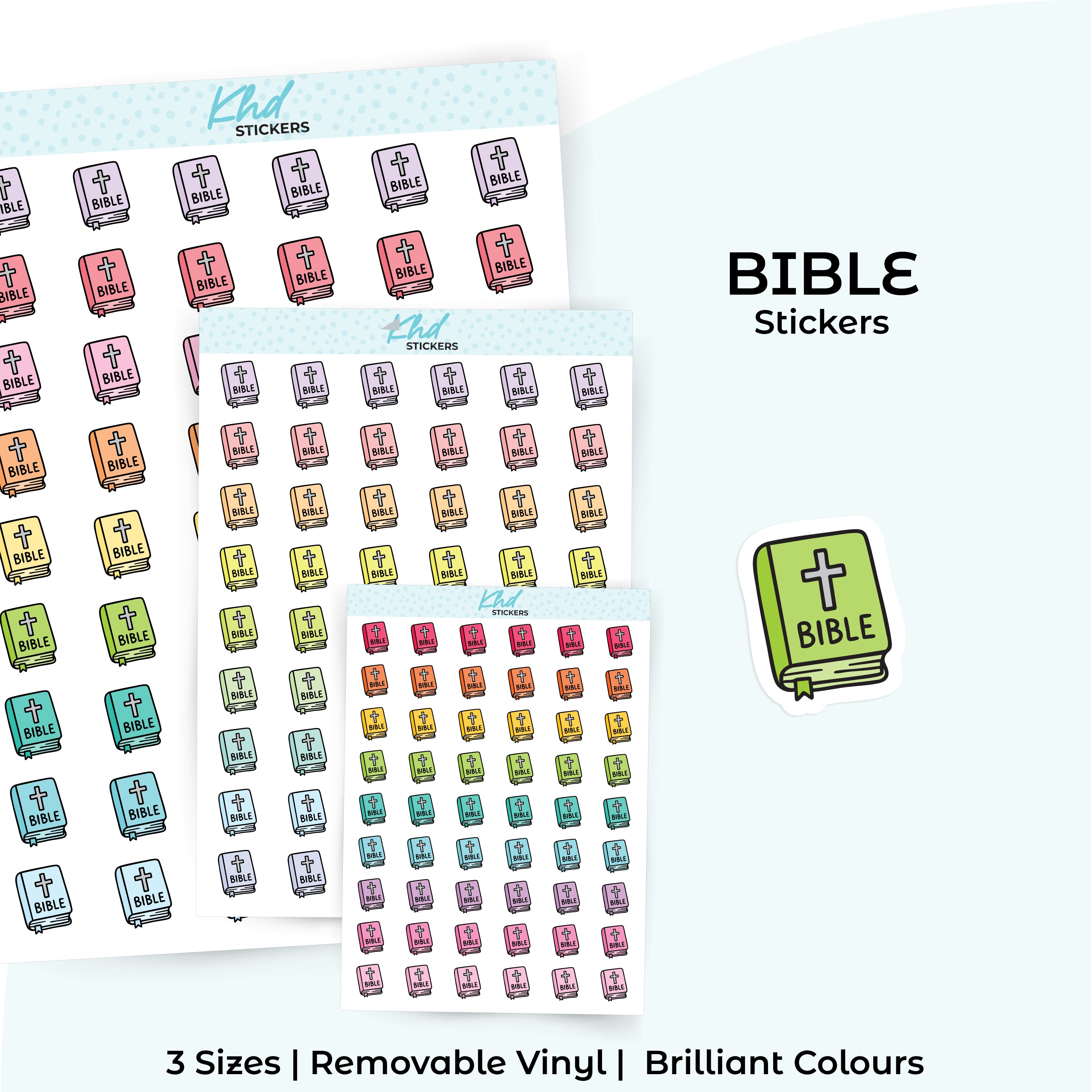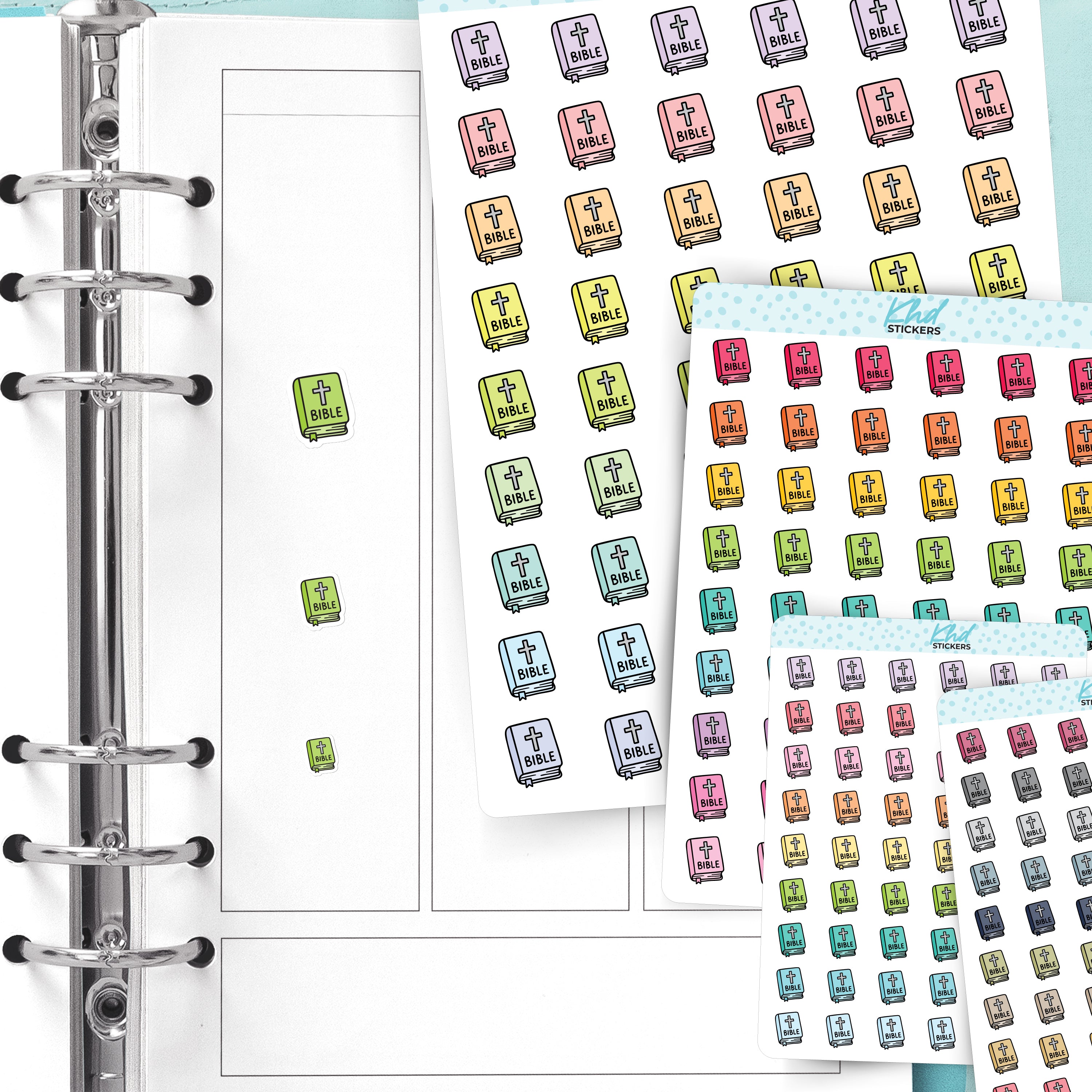 Bible Icons Planner Stickers. Select from one of 4 colourways, or select a sheet of your favourite colour. Available in three great sizes making it easy to match your planning style.