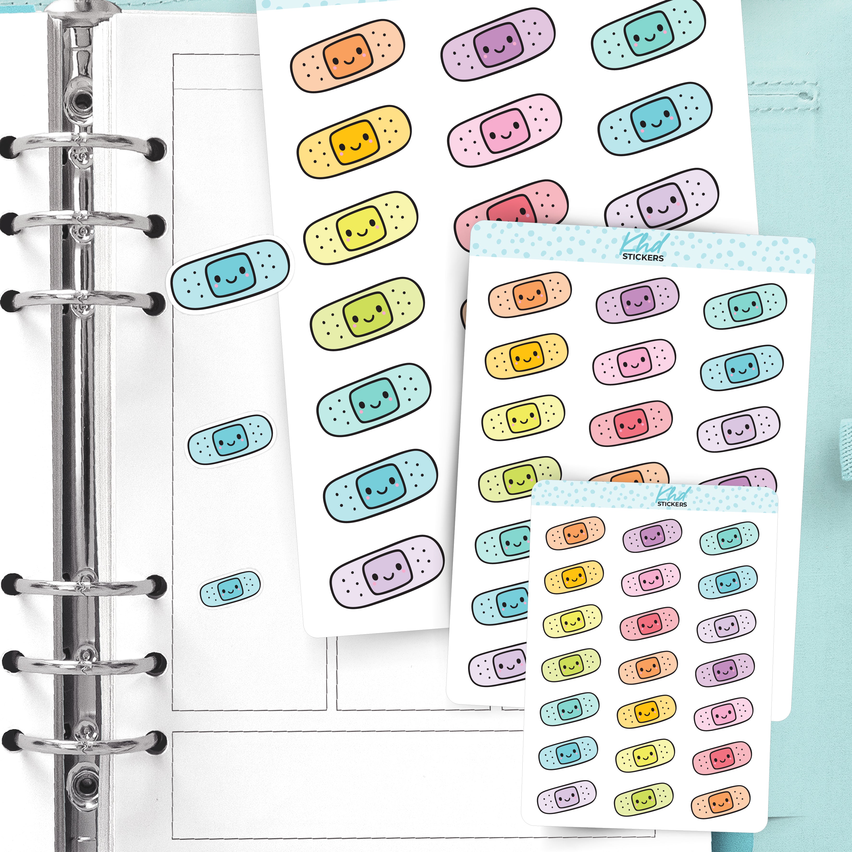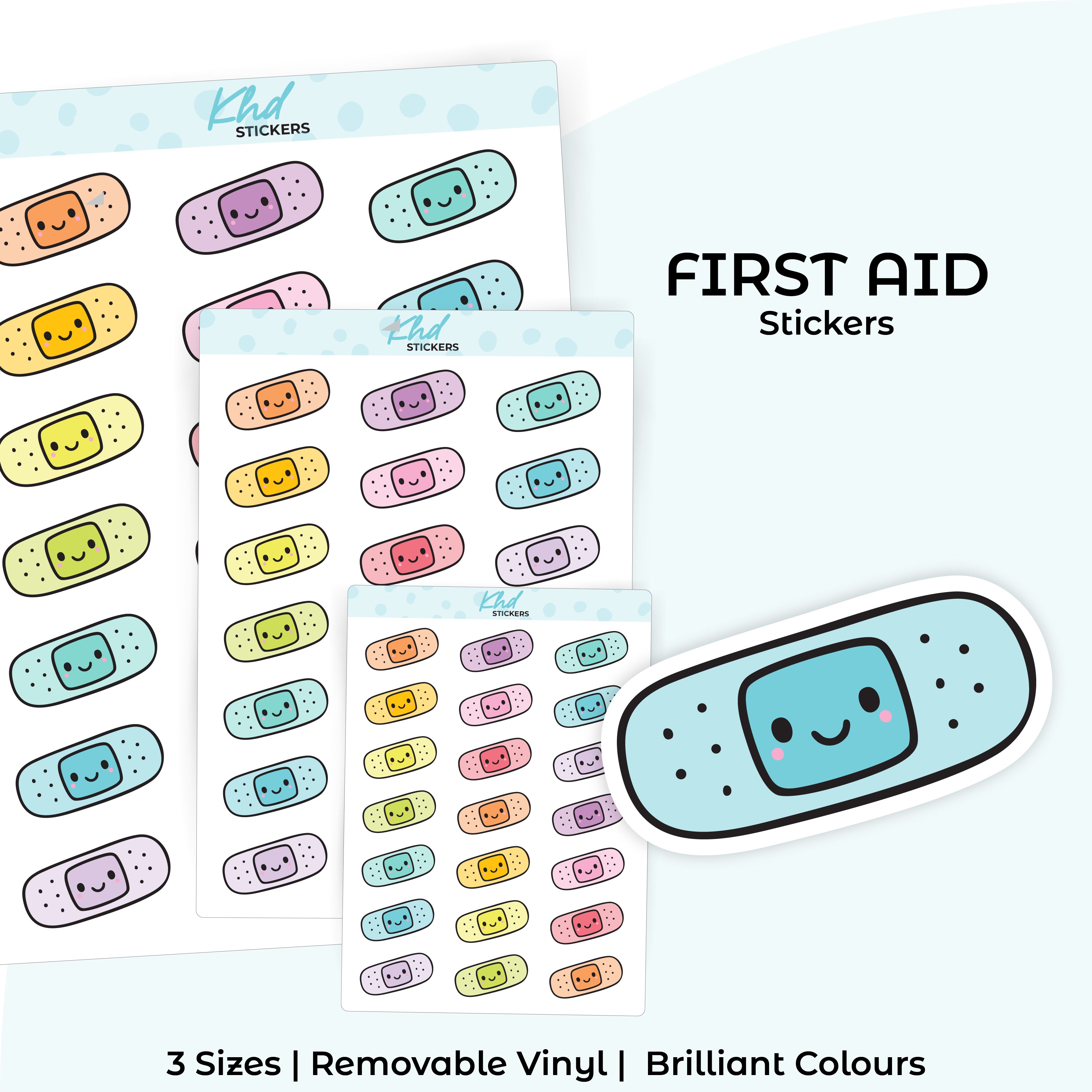 First Aid sticking plasters stickers for emergencies, kit checks, or wellness logs. Functional and cute.