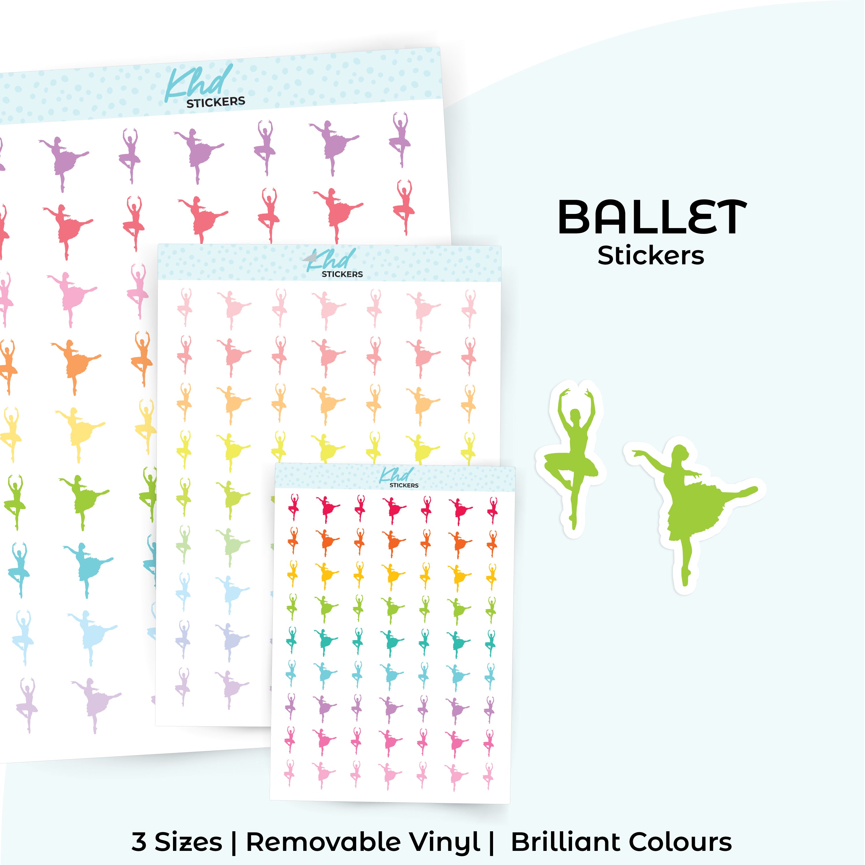 Ballet Icon Planner Stickers. Select from one of 4 colourways, or select a sheet of your favourite colour. Available in three great sizes making it easy to match your planning style.
