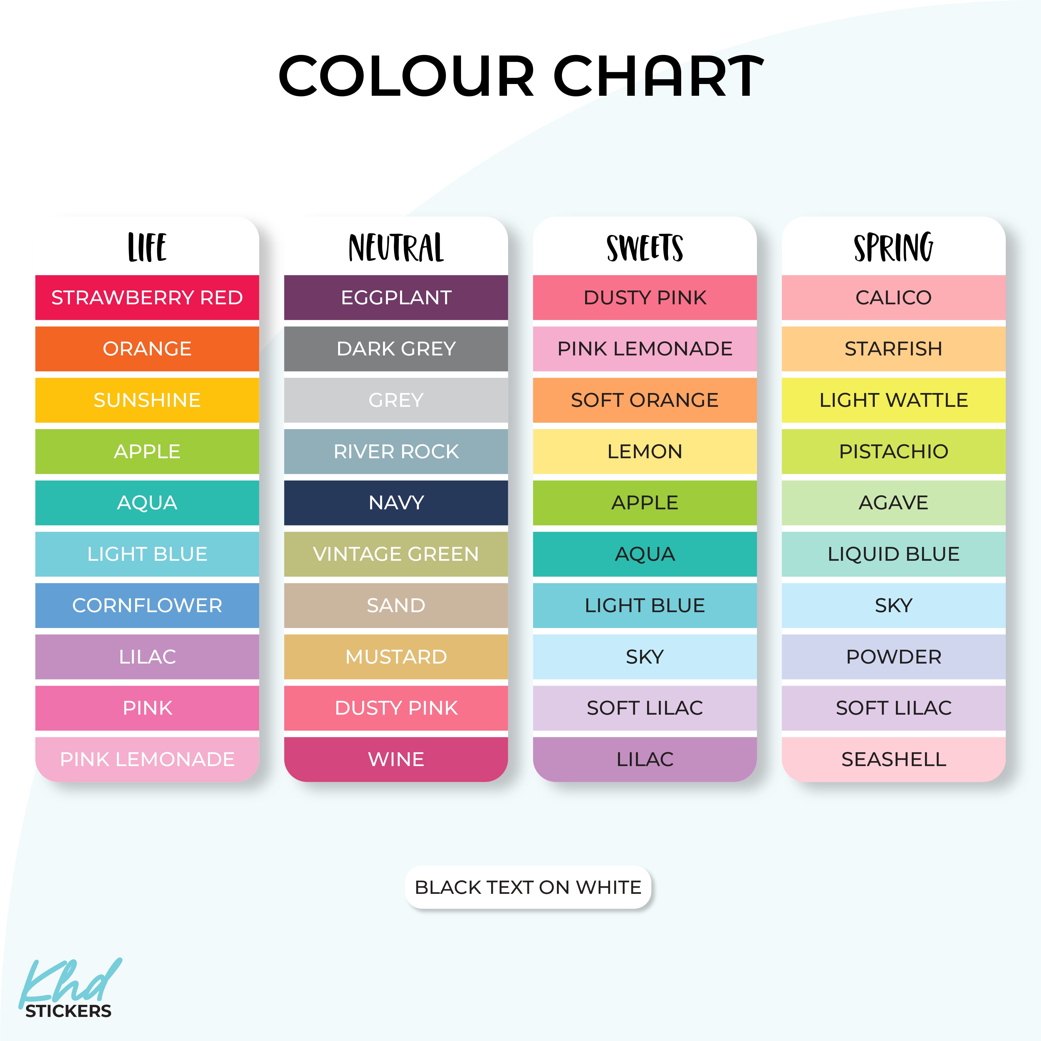 Vinyl can be removed or repositioned on most papers for up to 6 months, and comes your choice of colourways and individual colours. Permanent Markers are the preferred pen.