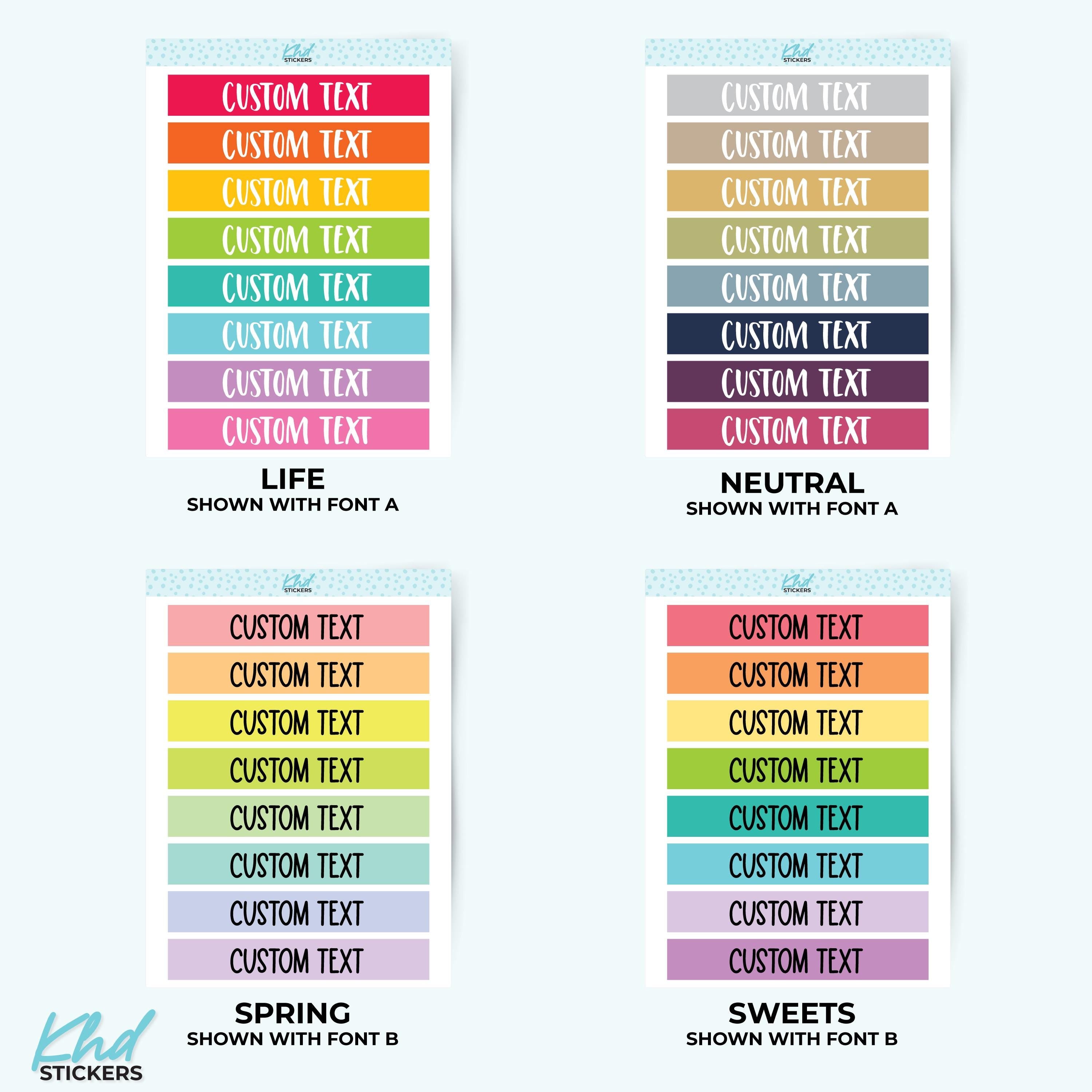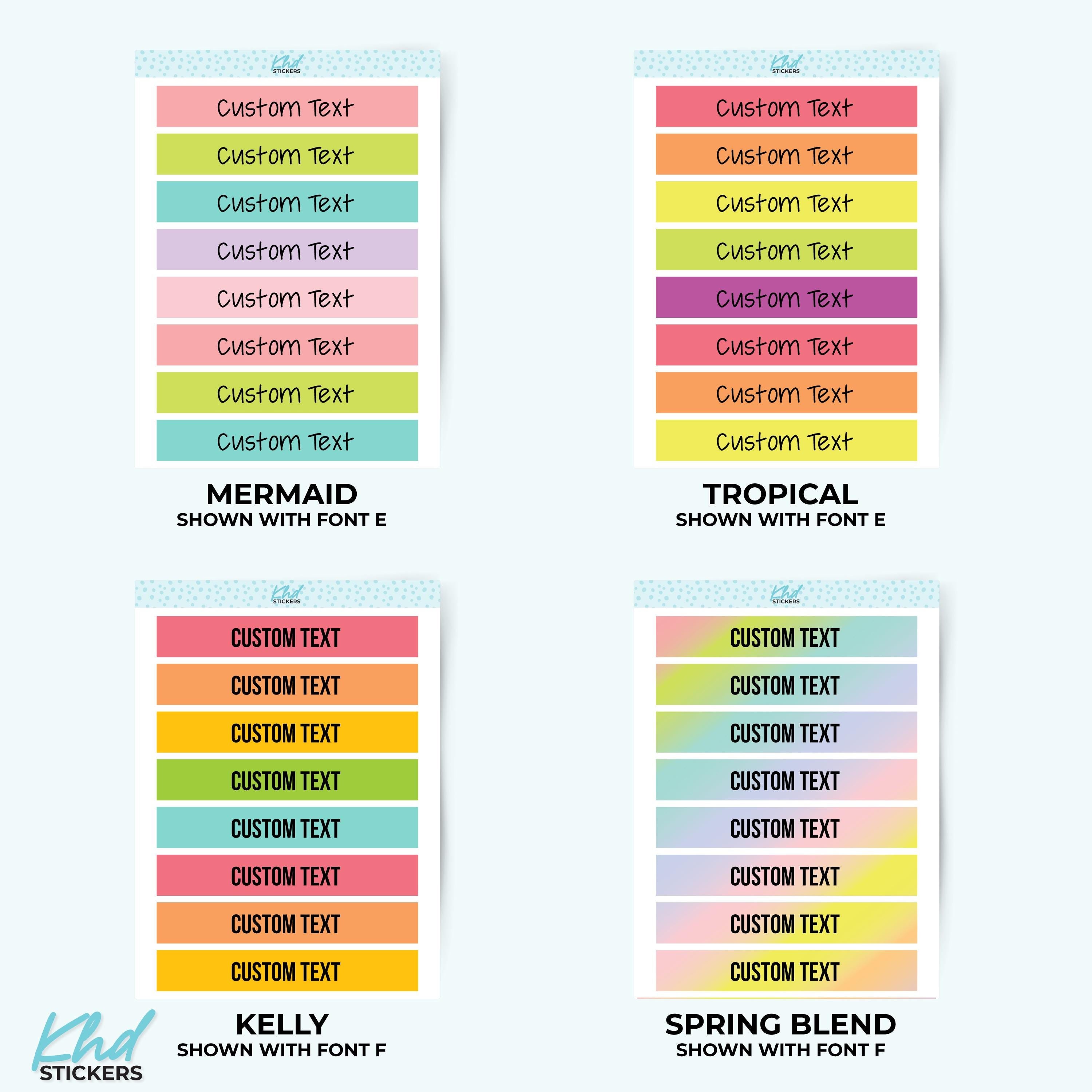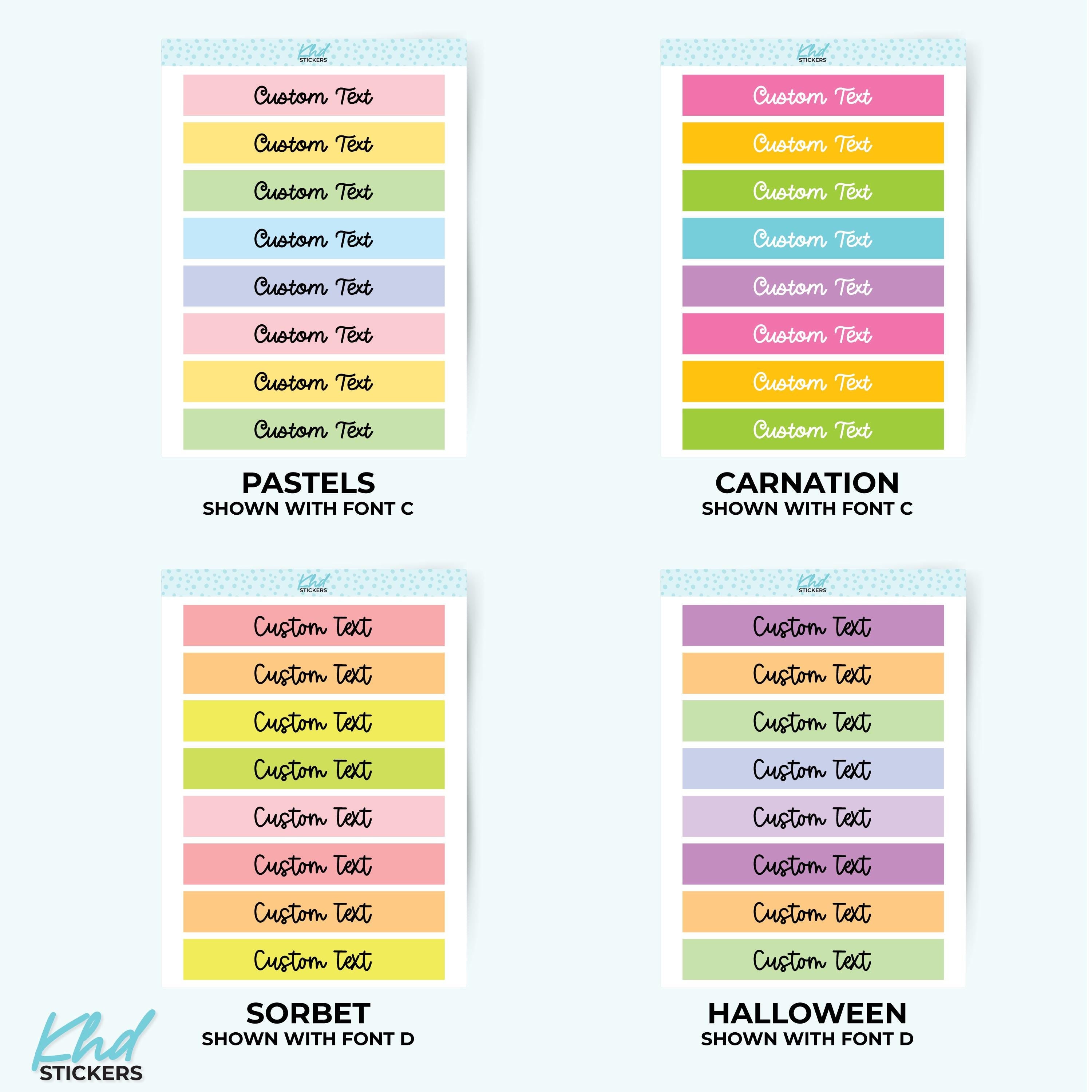 There's 6 fonts, and 16 colourways. Or select your own single colour to match your planning style.