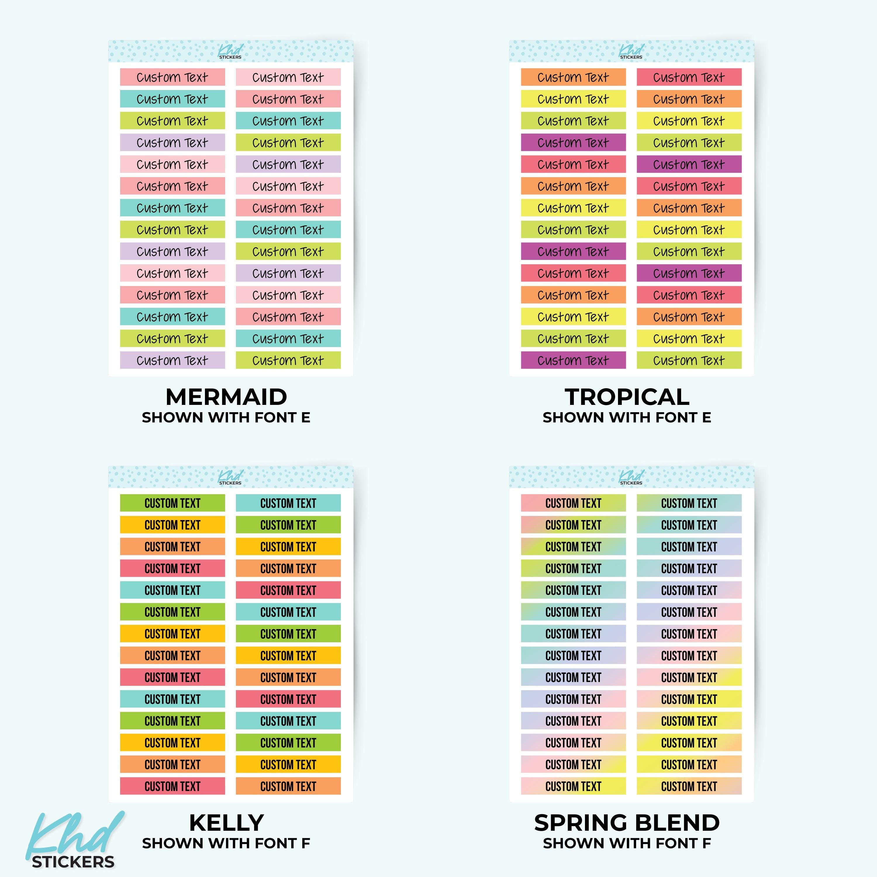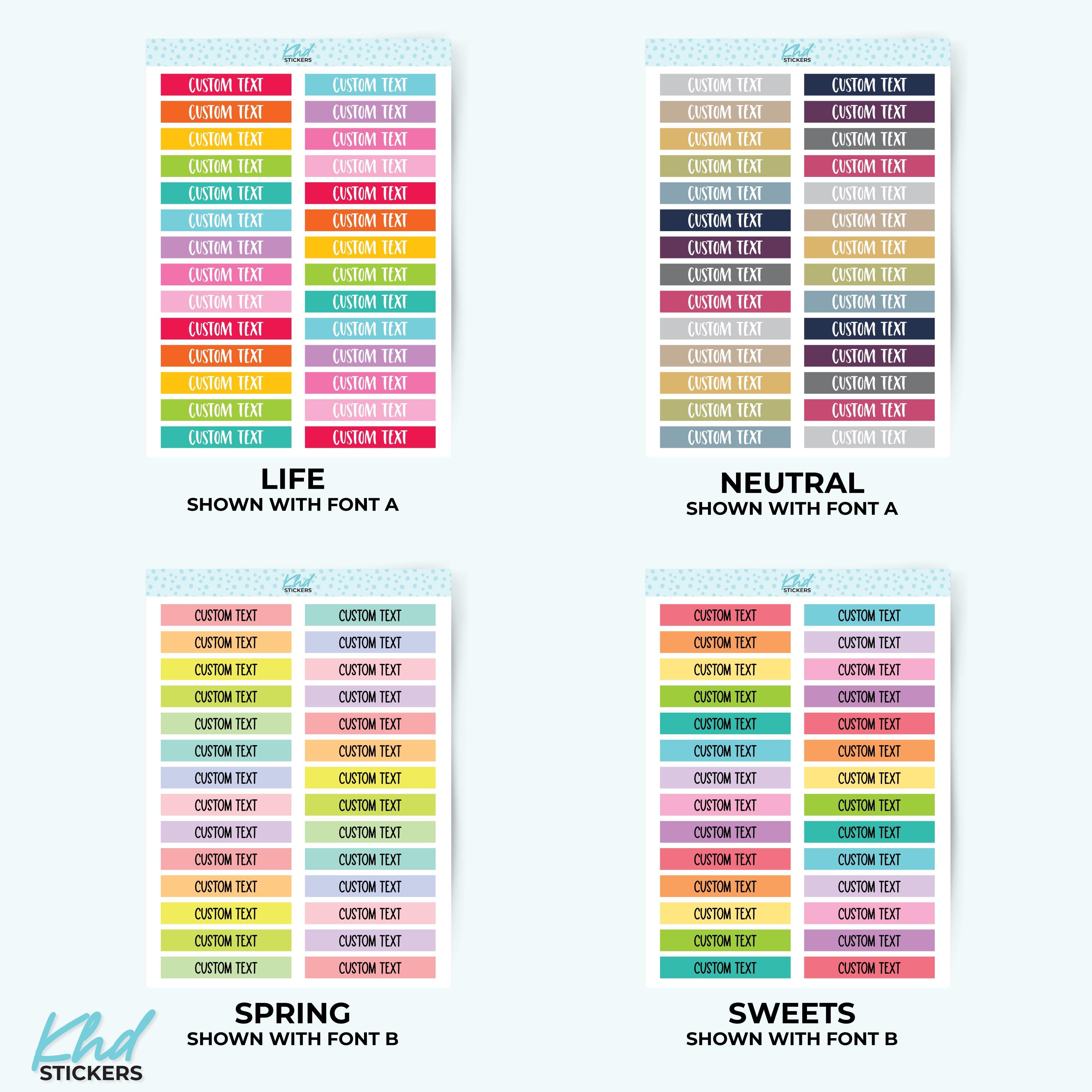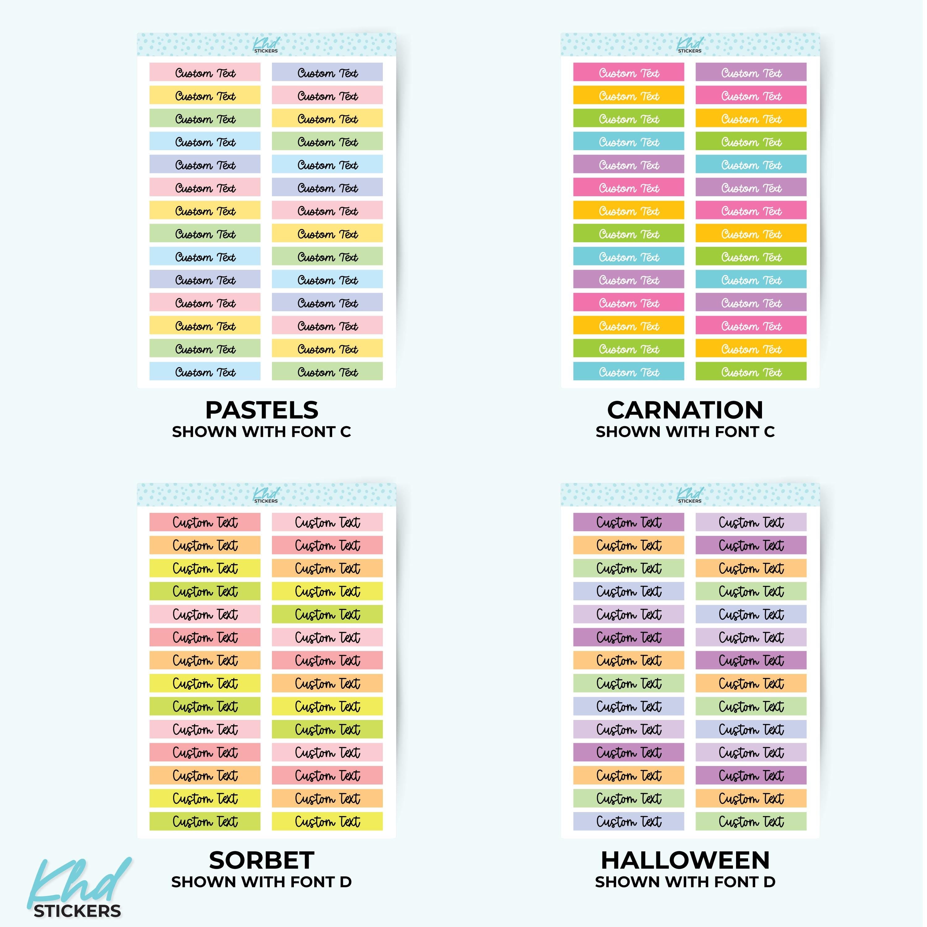 There's 6 fonts, and 16 colourways.  Or select your own single colour to match your planning style.