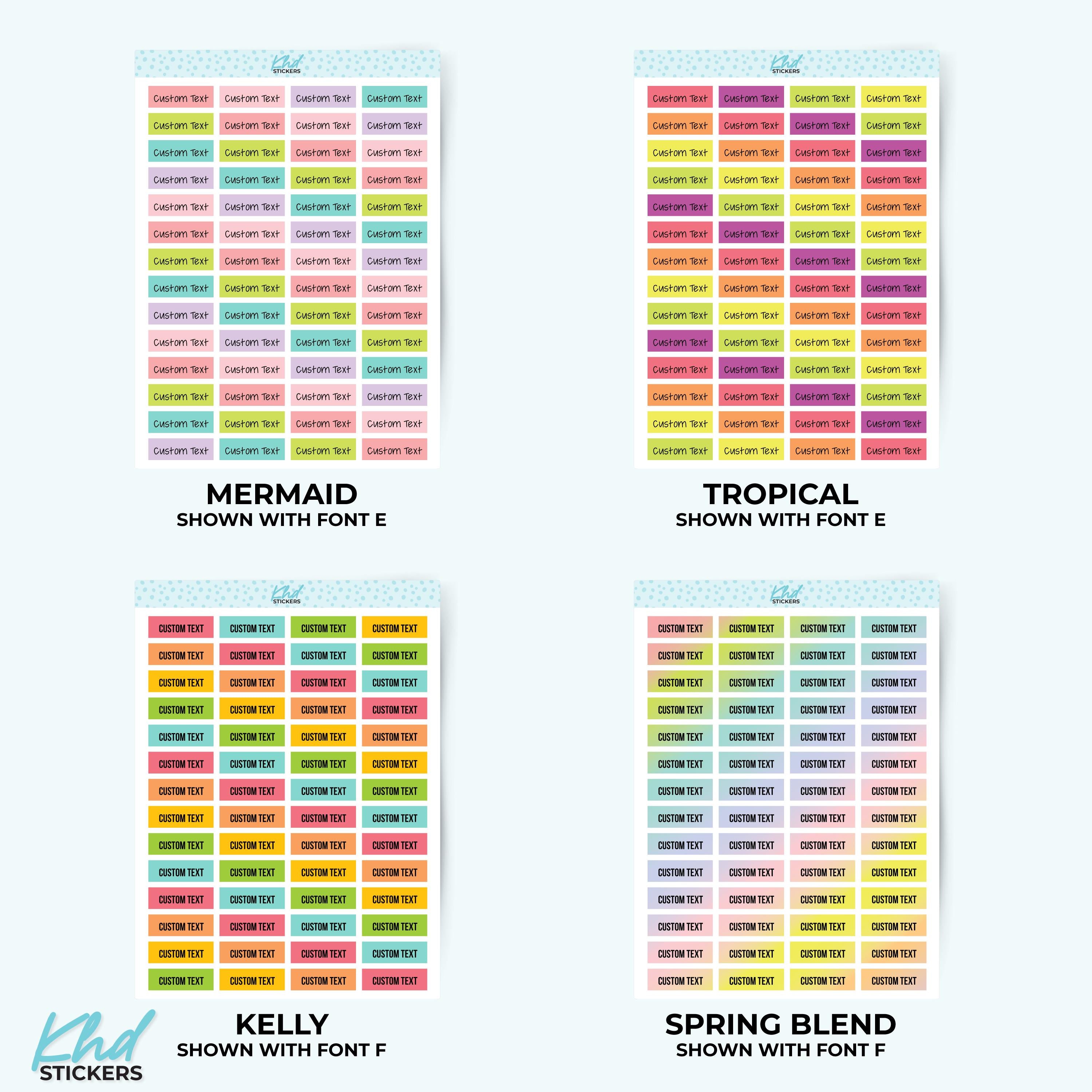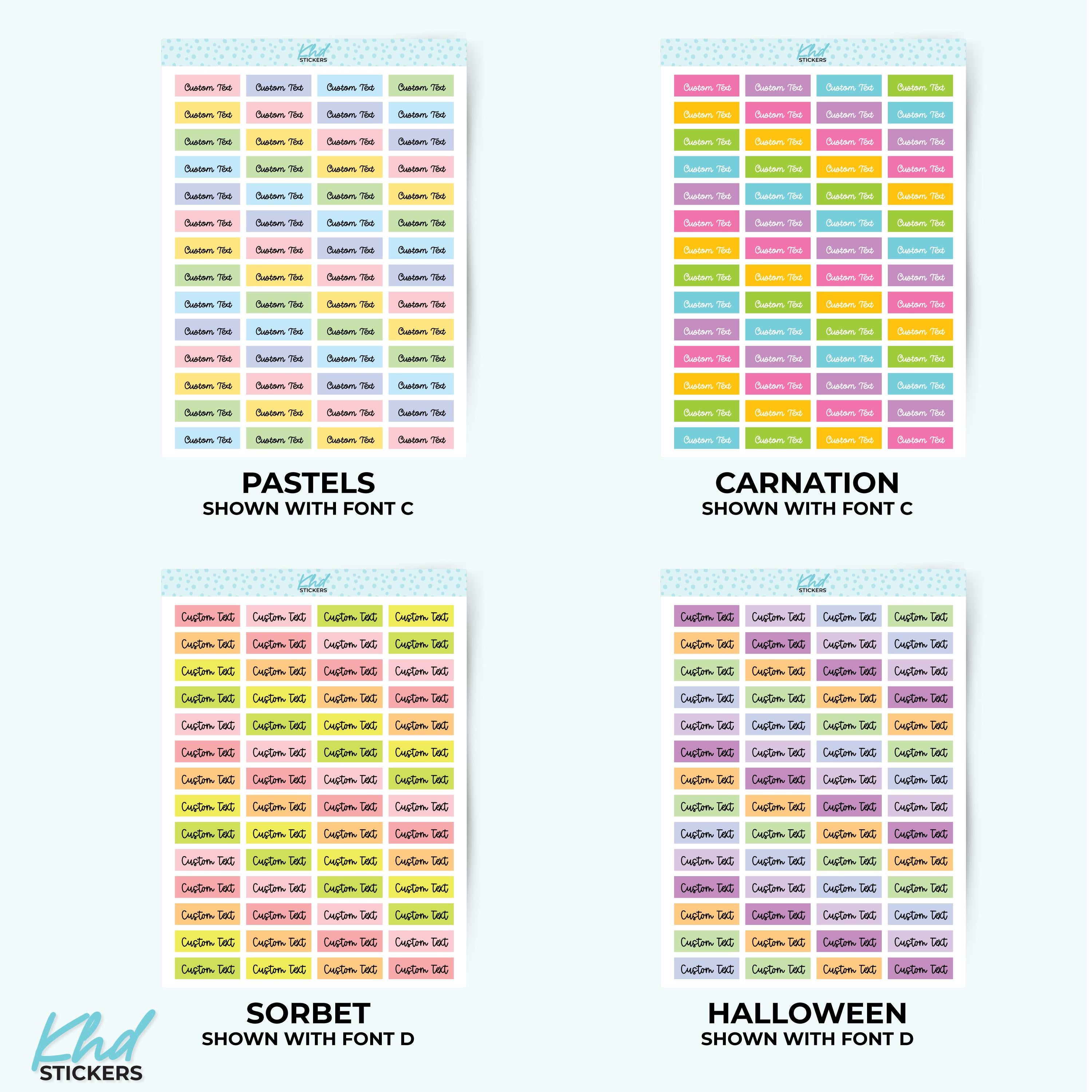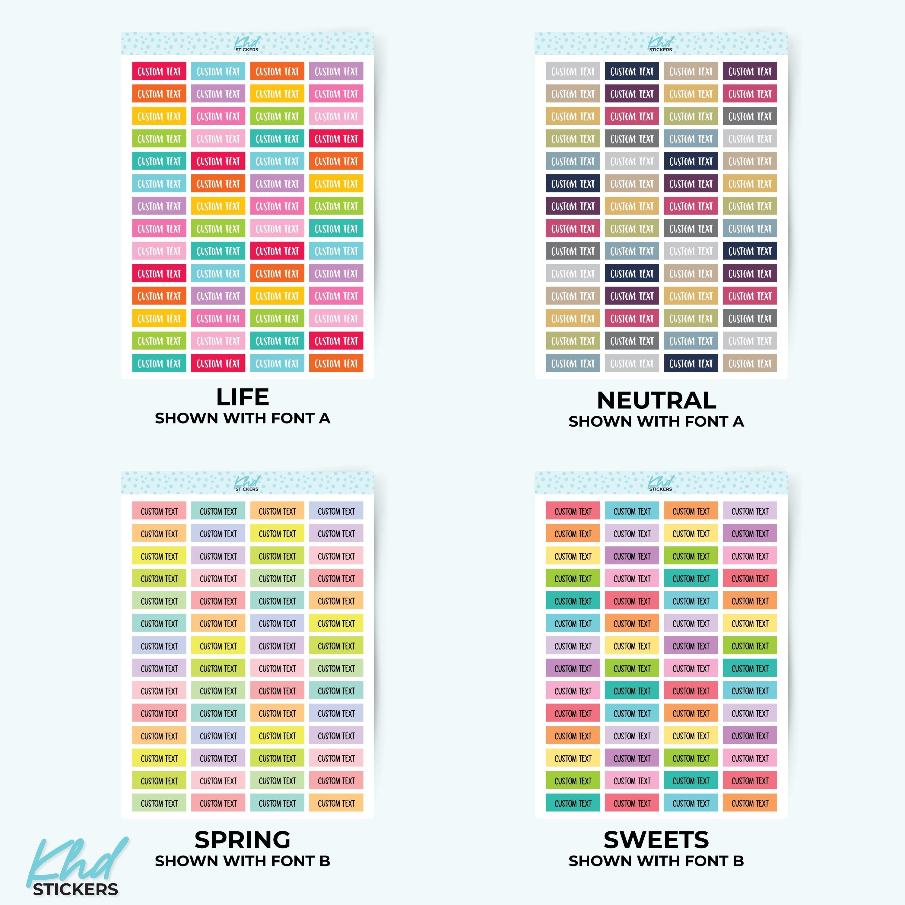 There's 6 fonts, and 16 colourways.  Or select your own single colour to match your planning style.