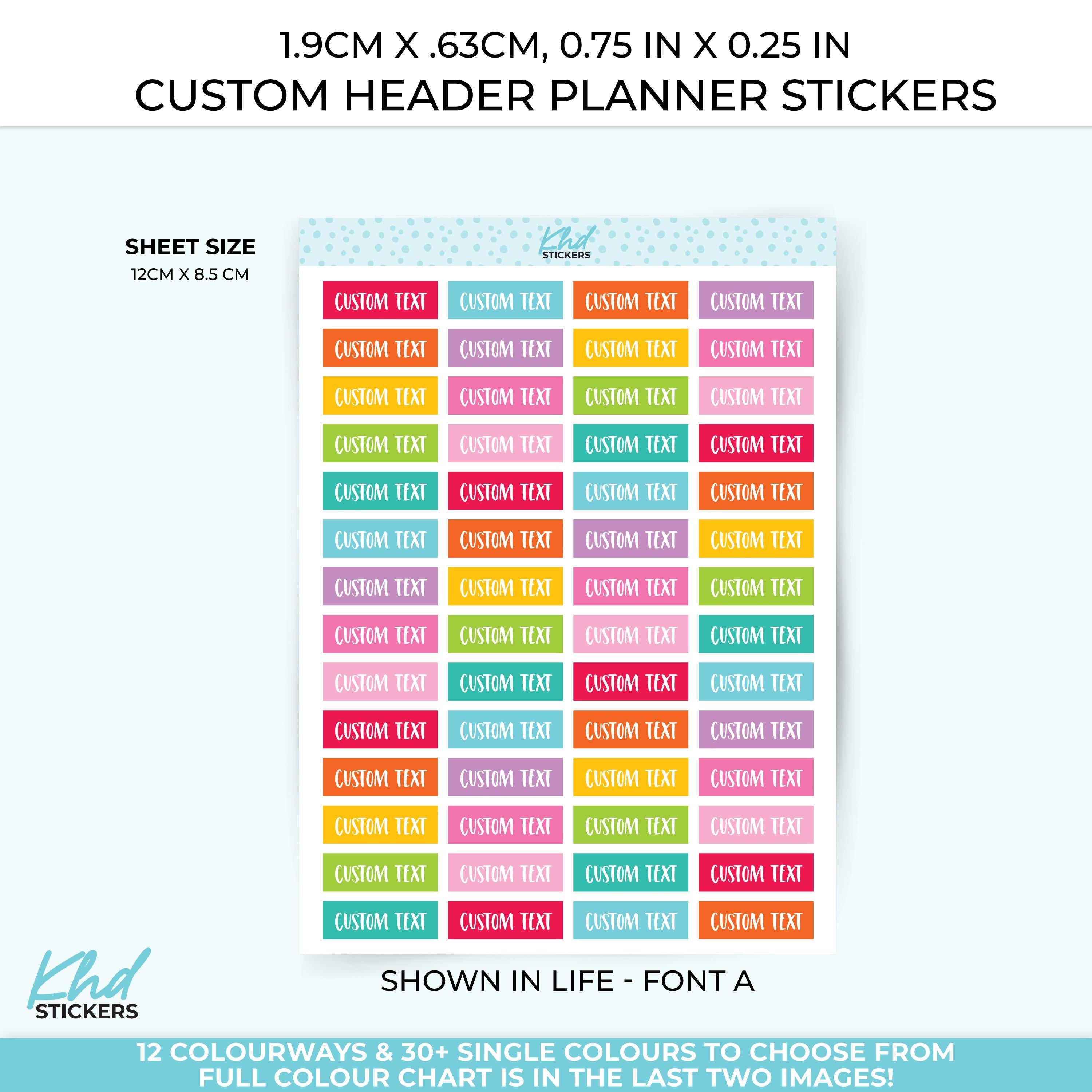 Custom Header Stickers - 1.9cm x .63cm, 0.75" x 0.25"