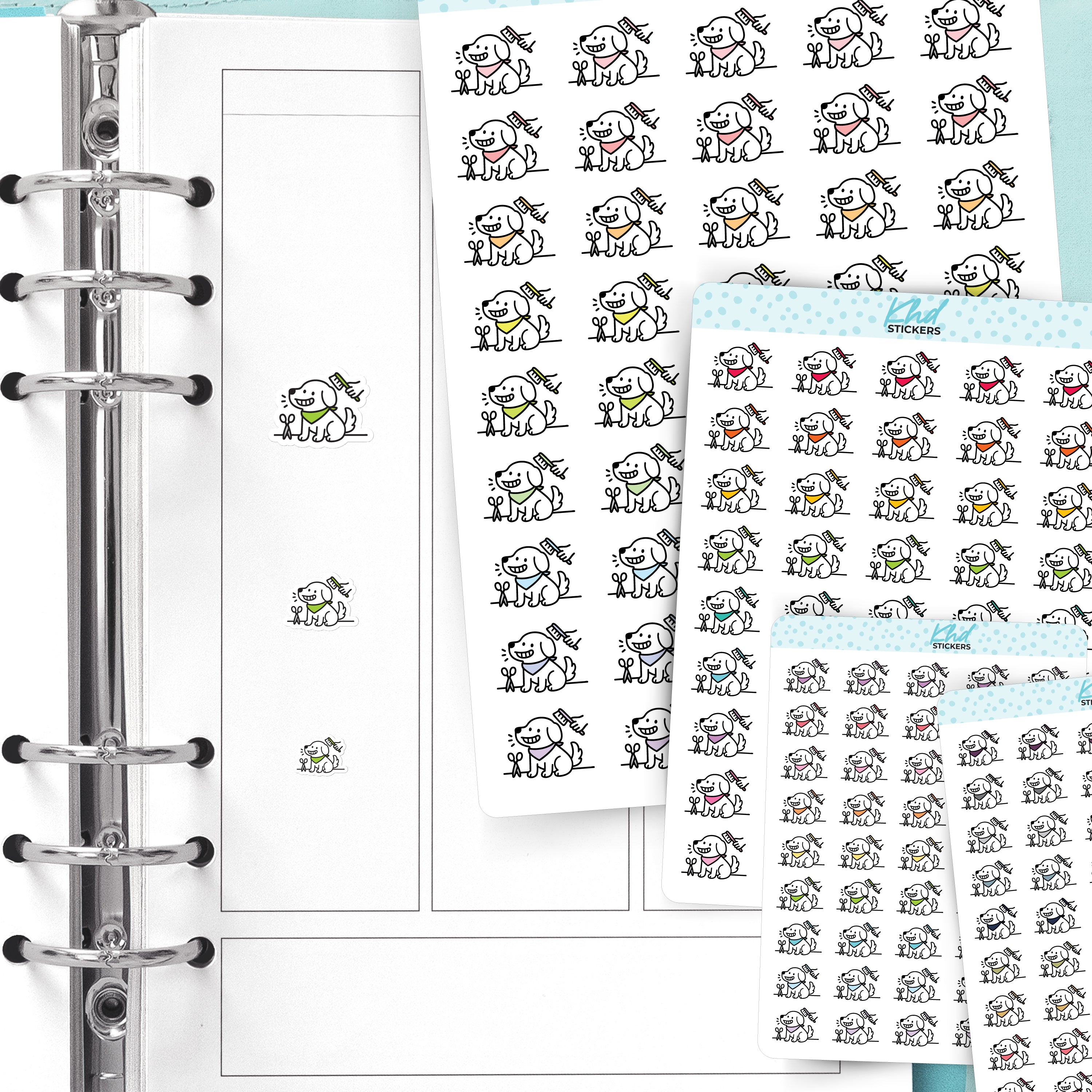✨ Mark grooming day with the cutest little helper! These adorable planner stickers feature a hand-drawn dog wearing a cute bandana. Perfect for scheduling haircuts, nail trims, or spa days for your pup.