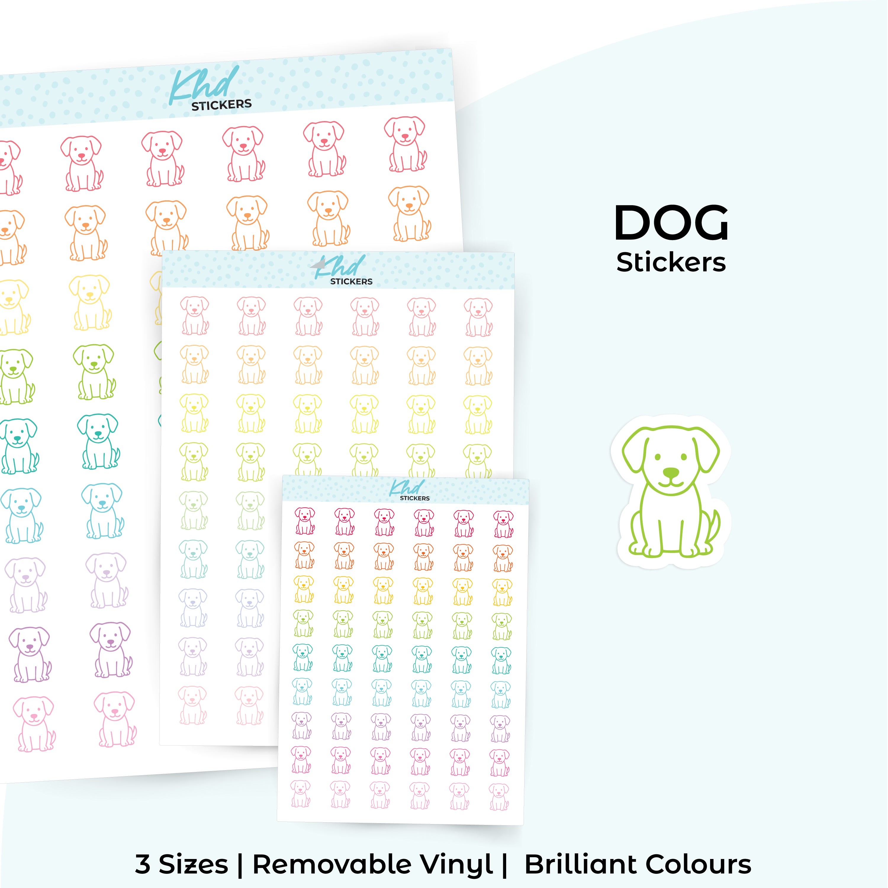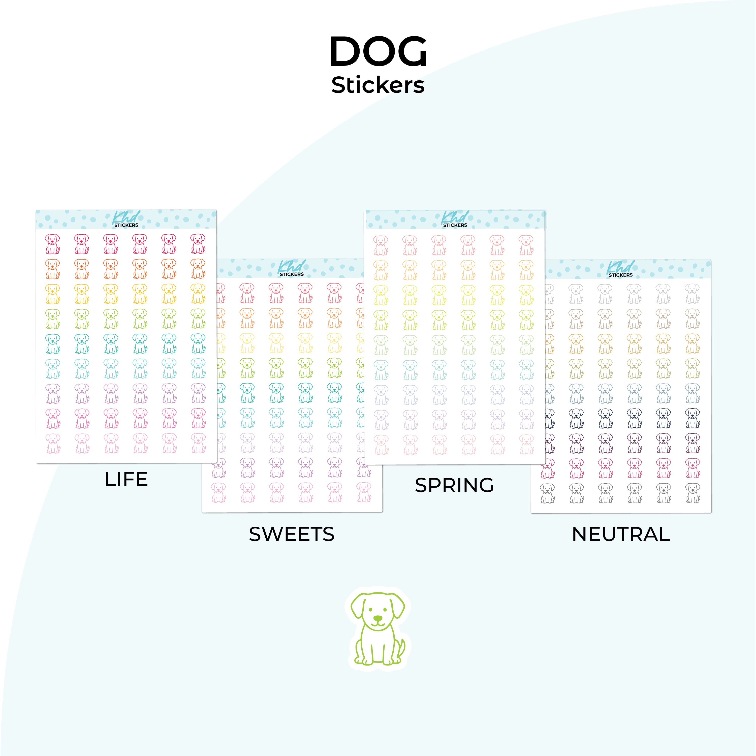 Dog icon stickers for planners and journals. Perfect for vet visits, feeding, grooming and pet care reminders.