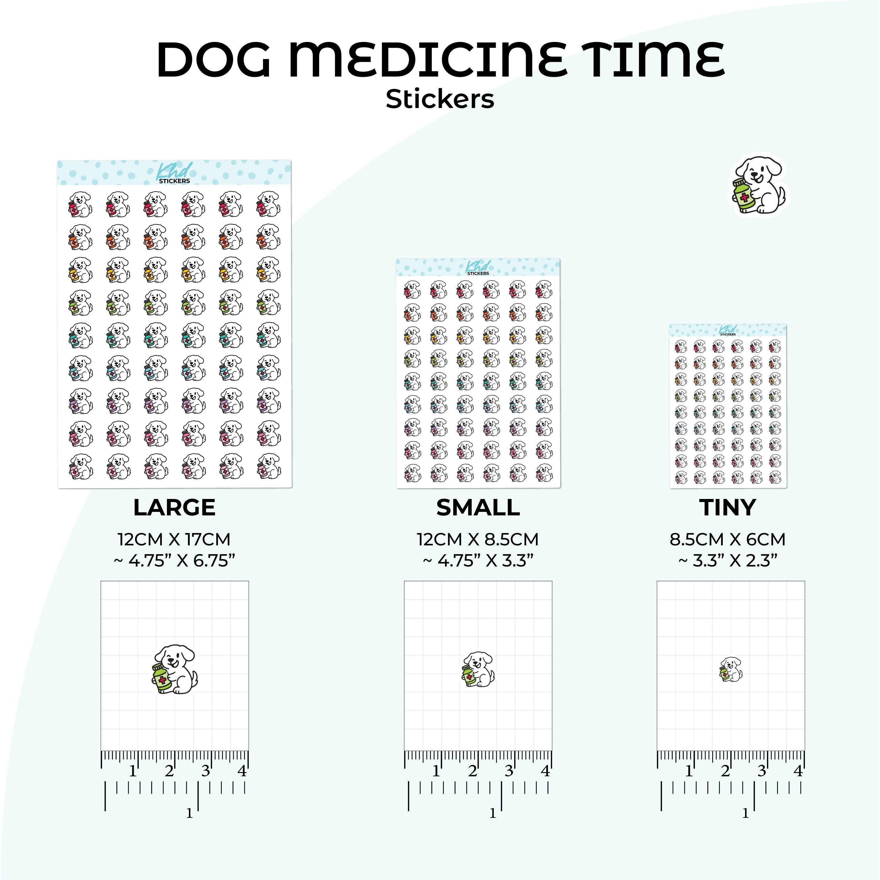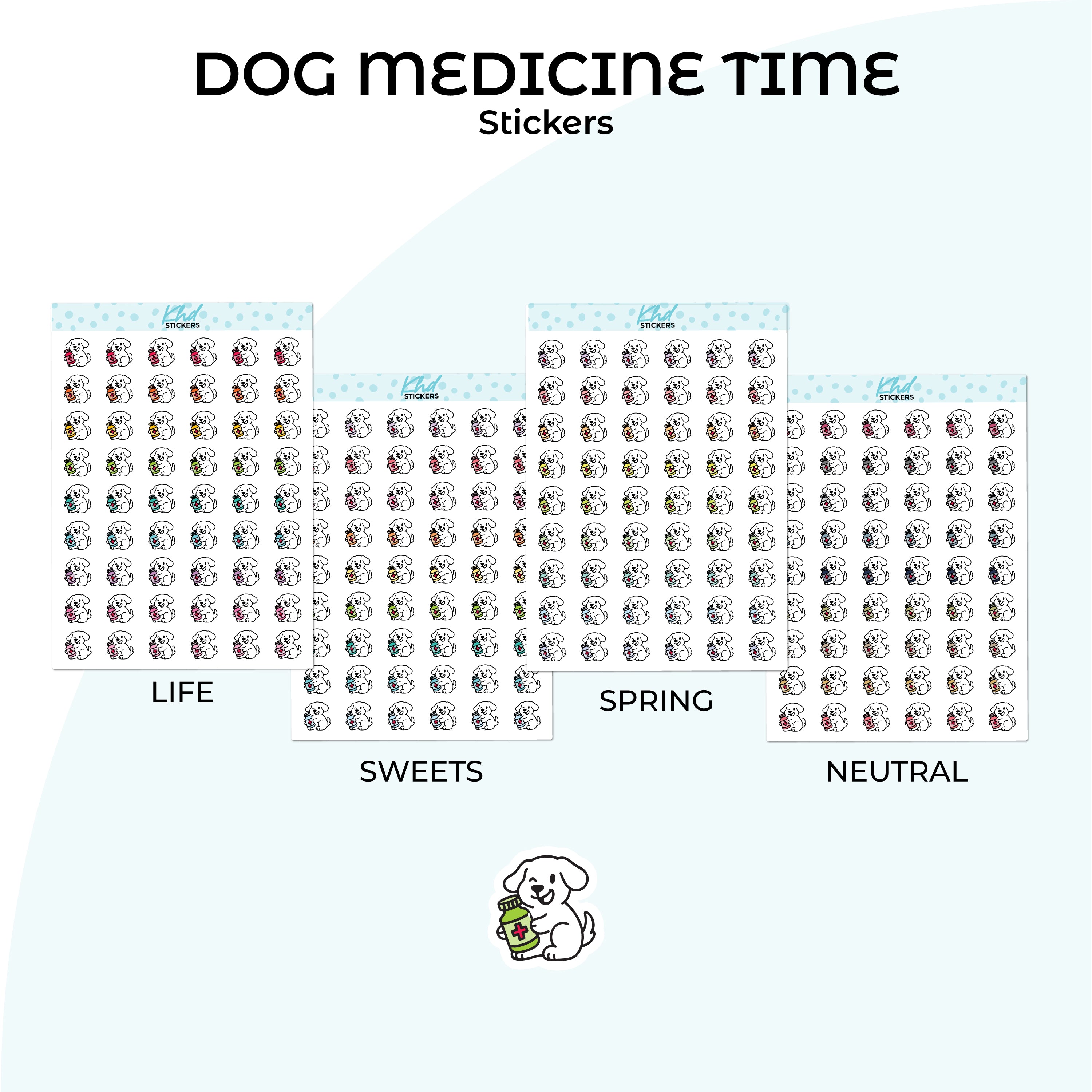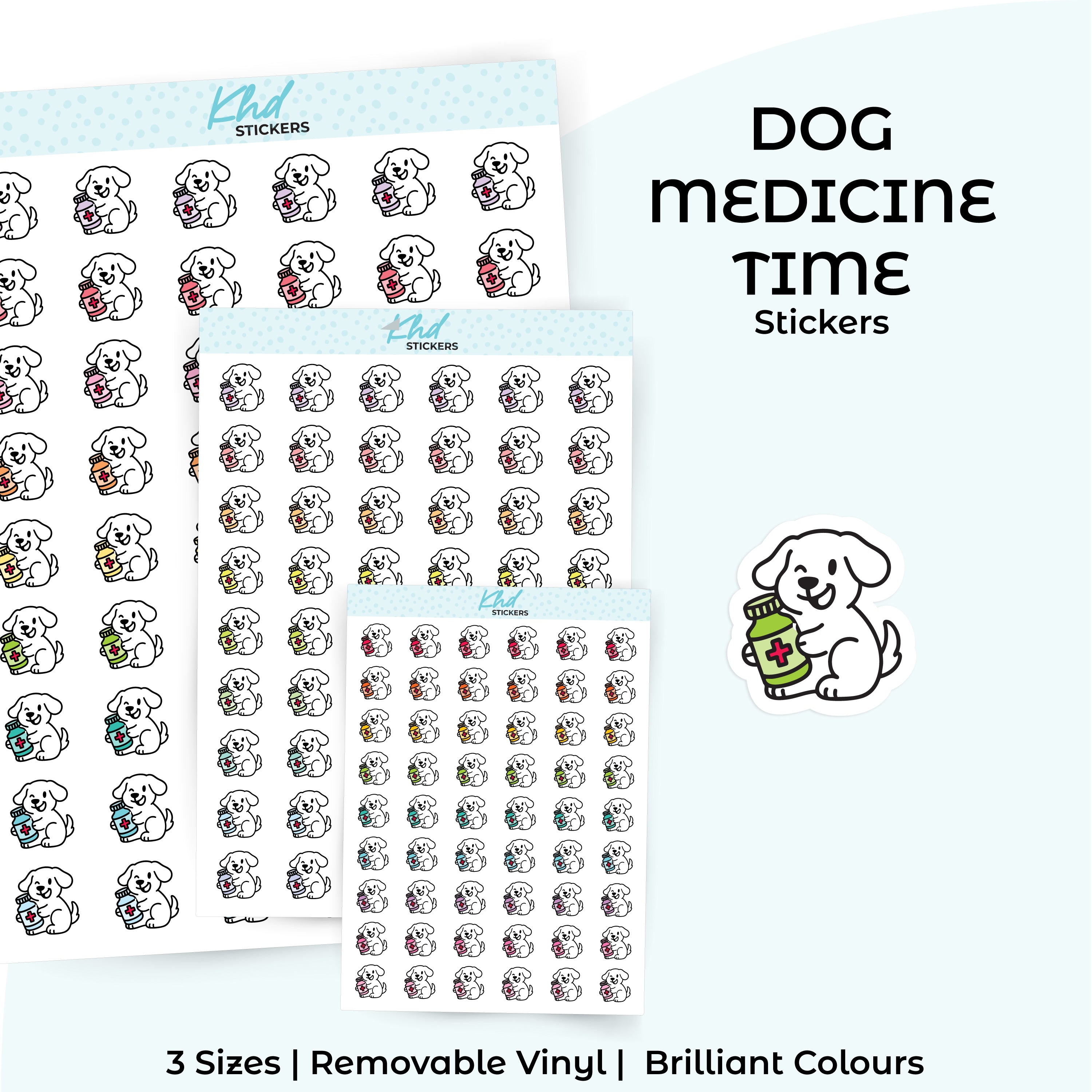 Keep track of your pup’s health with these adorable dog medicine time stickers! Each sticker features a cute hand-drawn dog holding a little medicine bottle.  Perfect for vet visits, medication reminders, or daily pet care in your planner or journal.