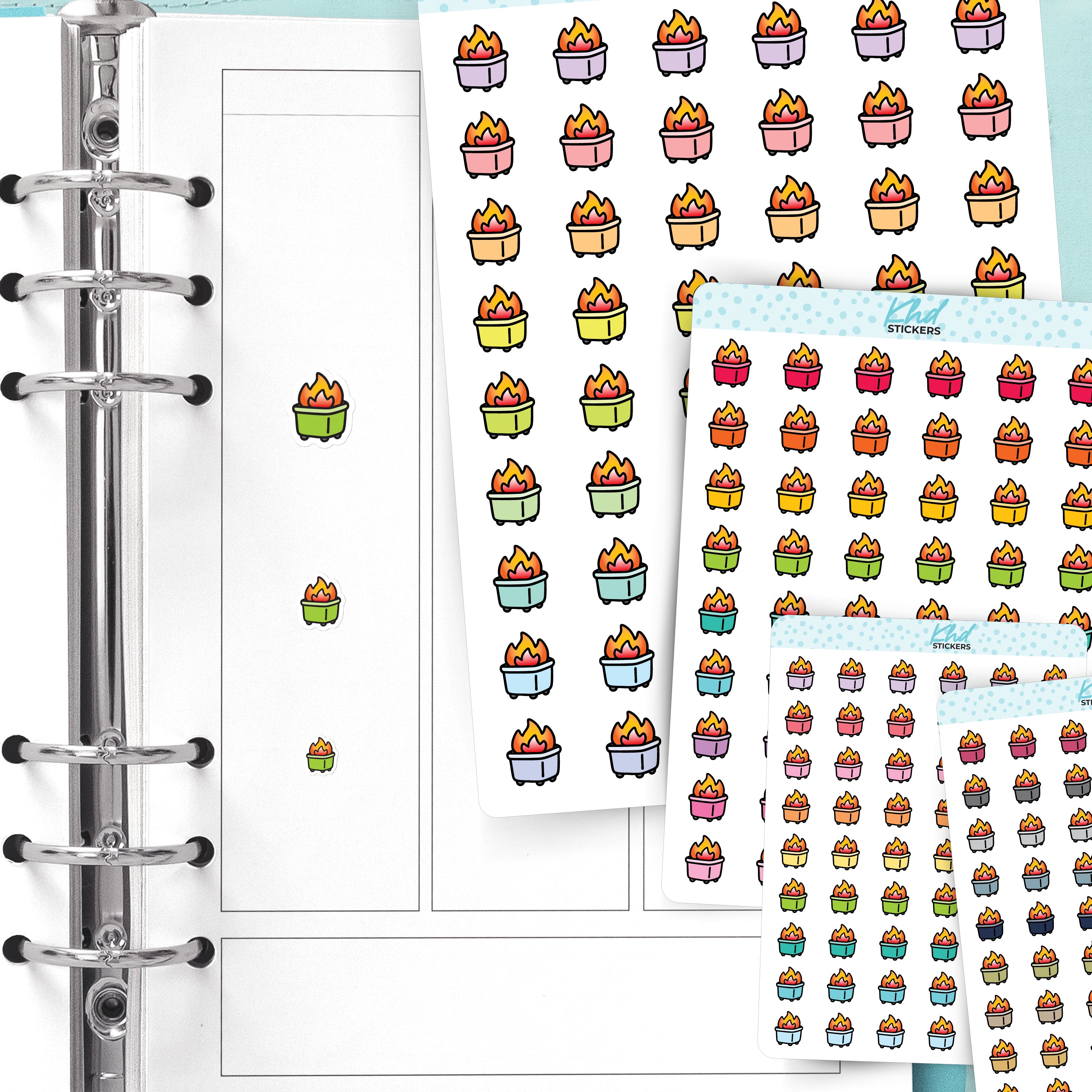 Featuring a cute hand-drawn dumpster with cheerful flames, this sticker is your go-to for planner humour, stress tracking, or a little self-aware meltdown moment.