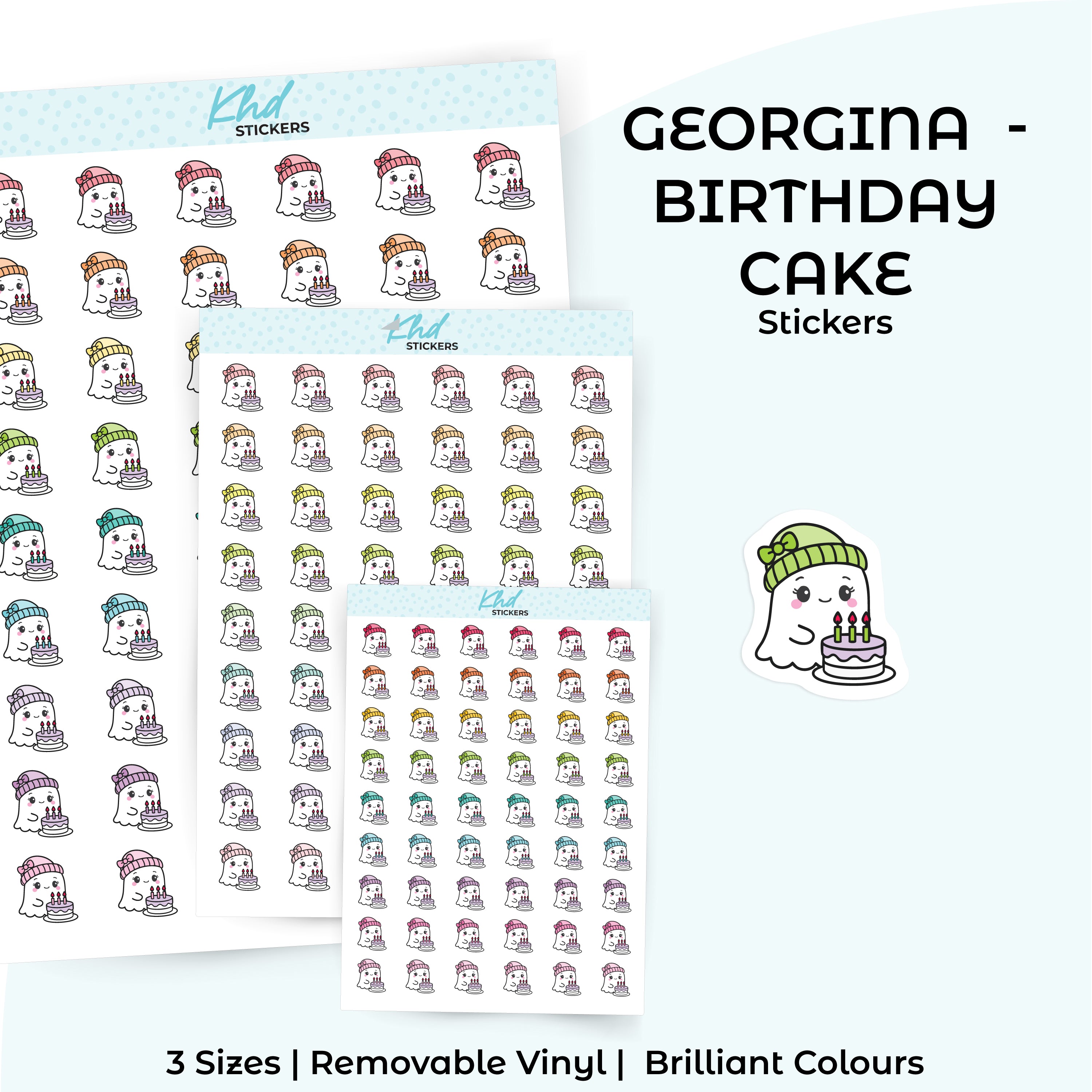 Happy Georgina ghost stickers to remind you about birthdays, parties and buying presents in your planner or diary.