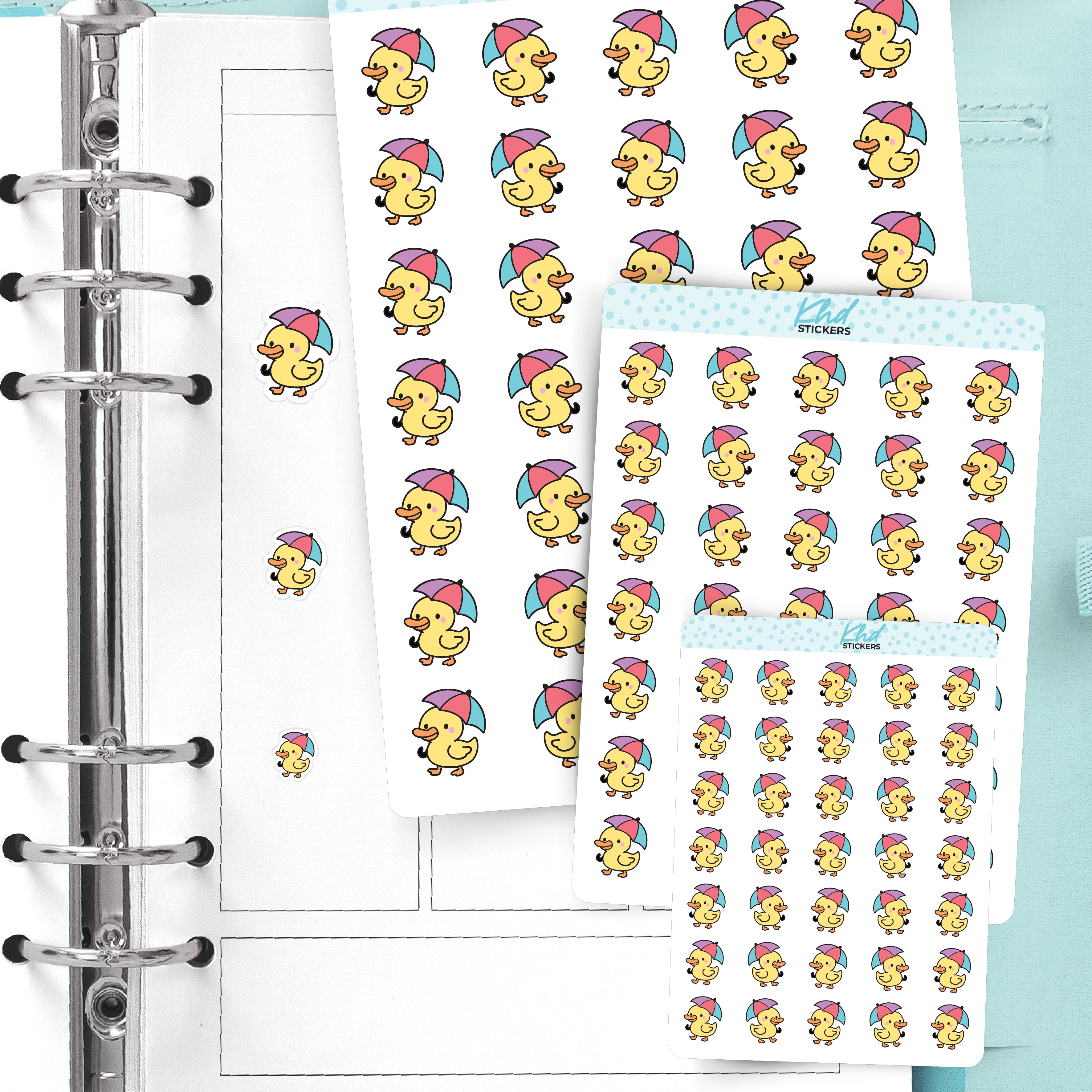Kawaii Duck In The Rain Planner Stickers