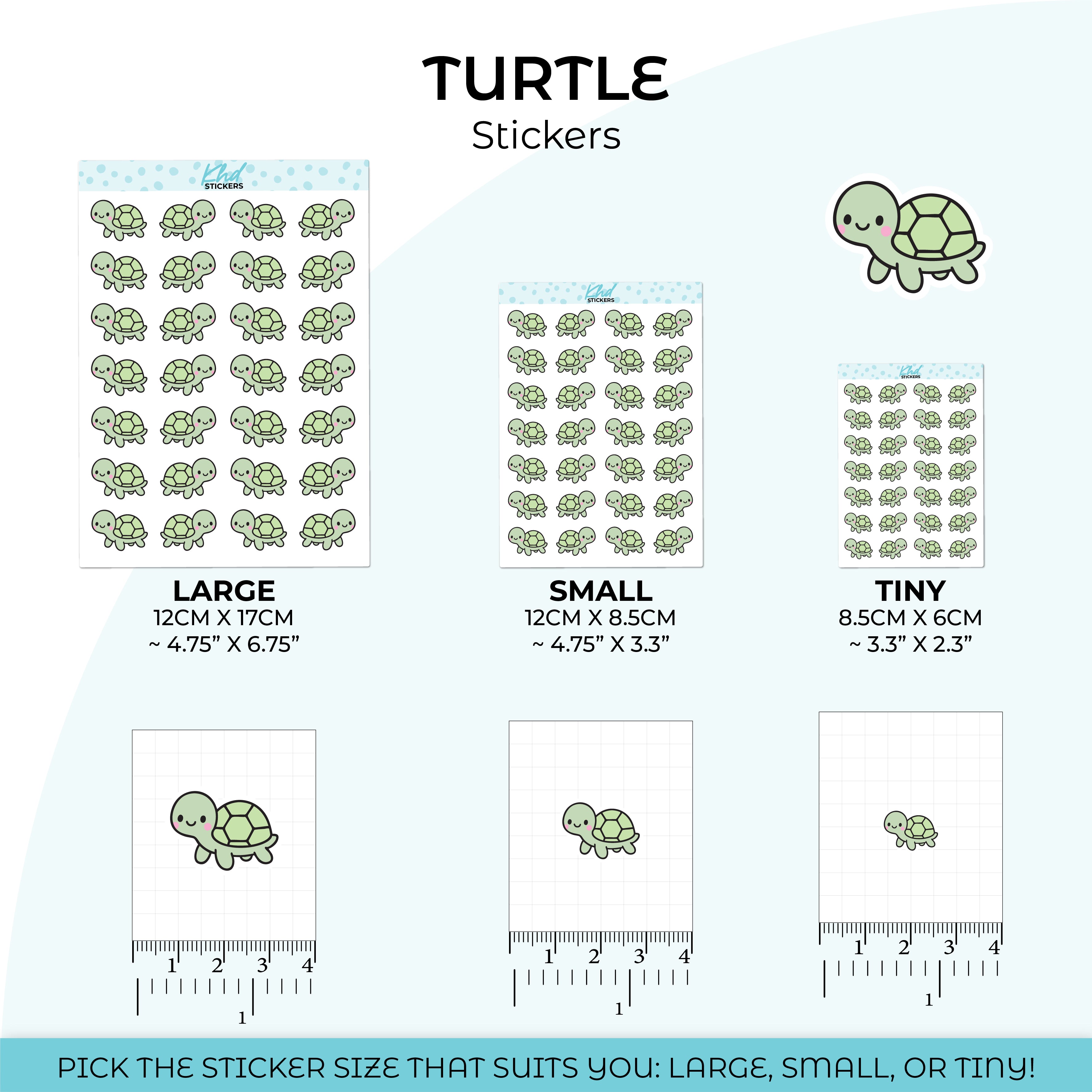 Kawaii Turtle – Cute Green Animal Planner Stickers