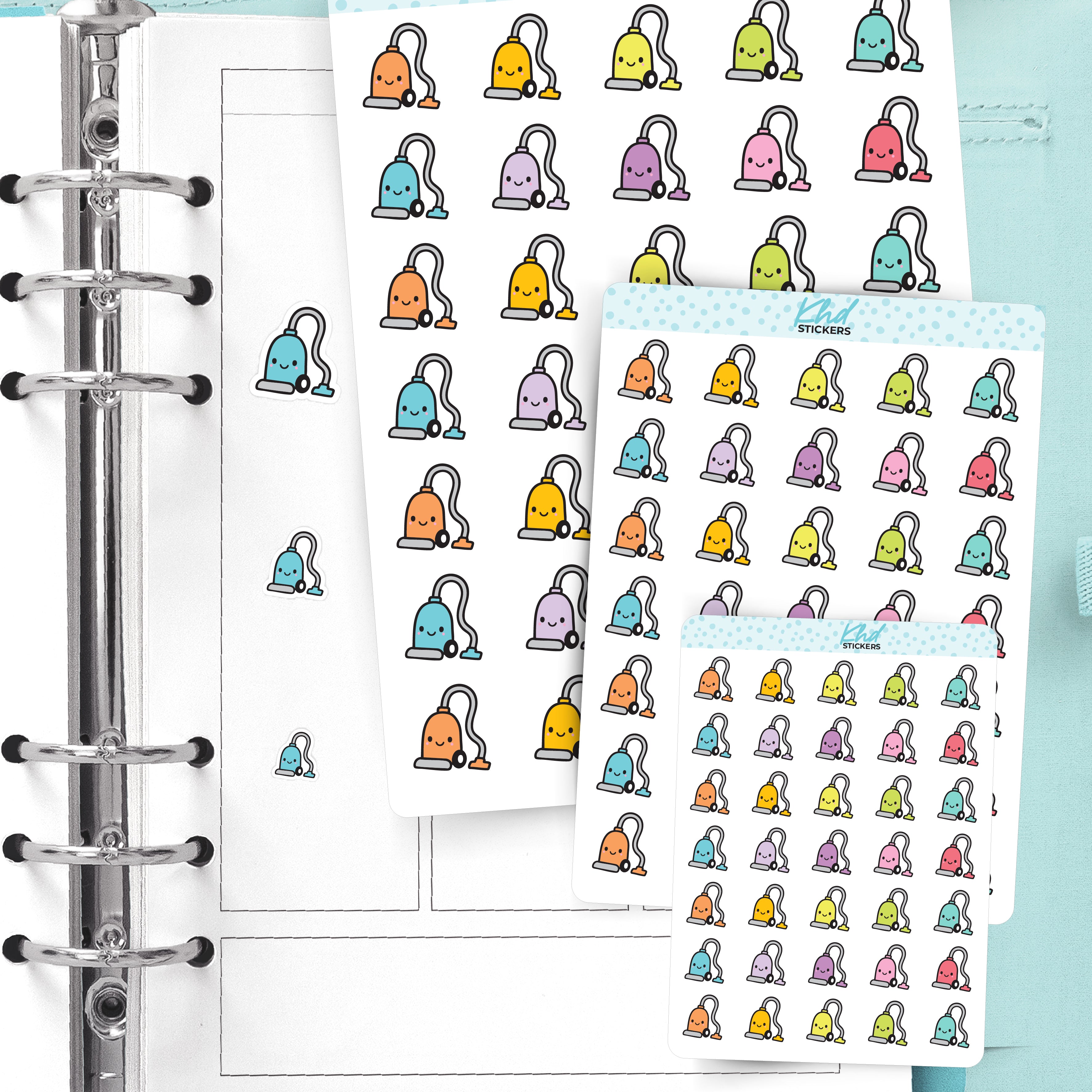 Suck up the mess, but make it adorable! These Kawaii Vacuum Cleaner stickers are here to turn your cleaning schedule into a pastel-powered planning moment. Each vacuum comes with a sweet little face and is perfect for planners, diaries, and journals.