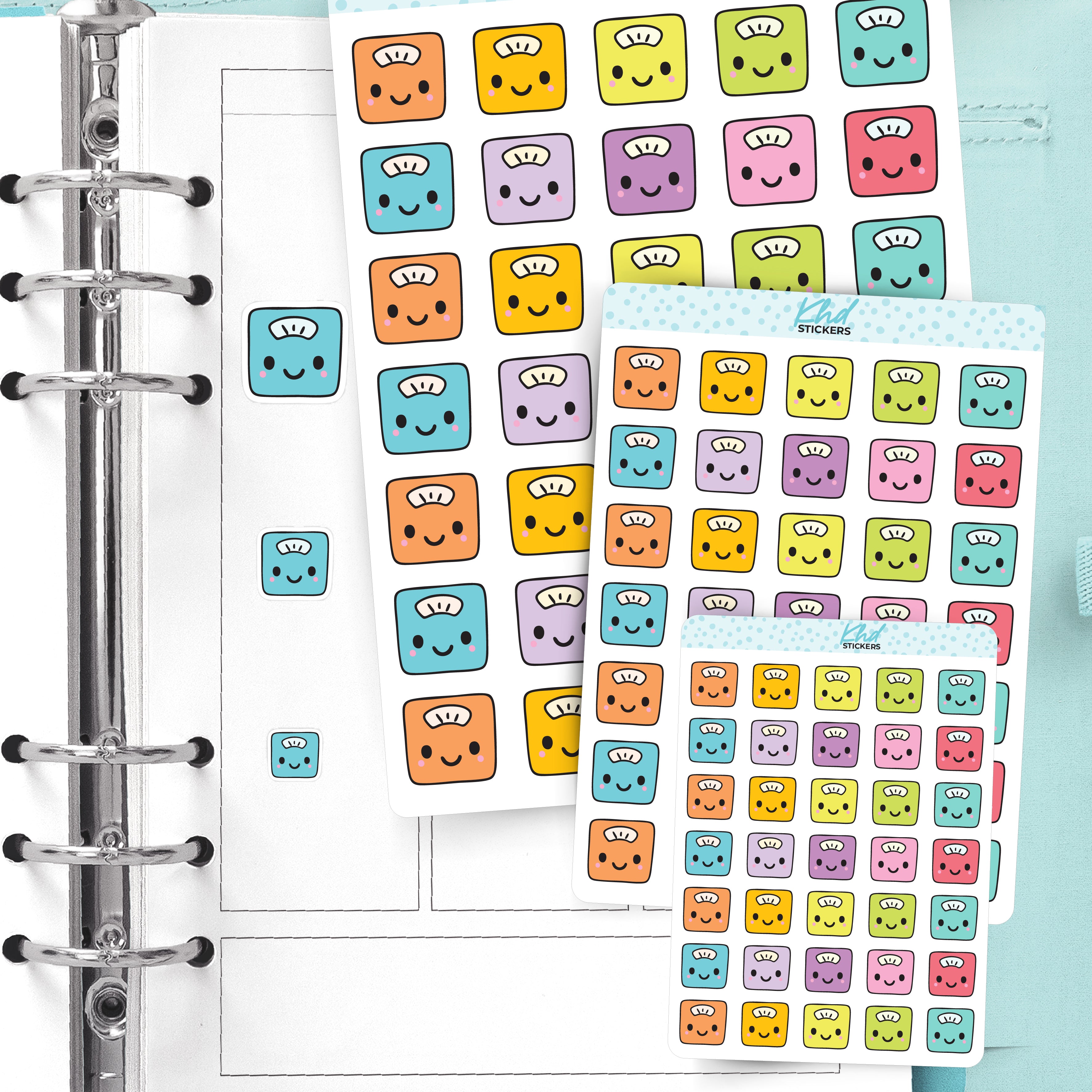 Track your wellness goals with a smile! These Kawaii Bathroom Scale stickers are the cutest way to stay mindful of weigh-ins, routines, or fitness days. With pastel colours and happy little faces, they’re perfect for planners, diaries, and journals.