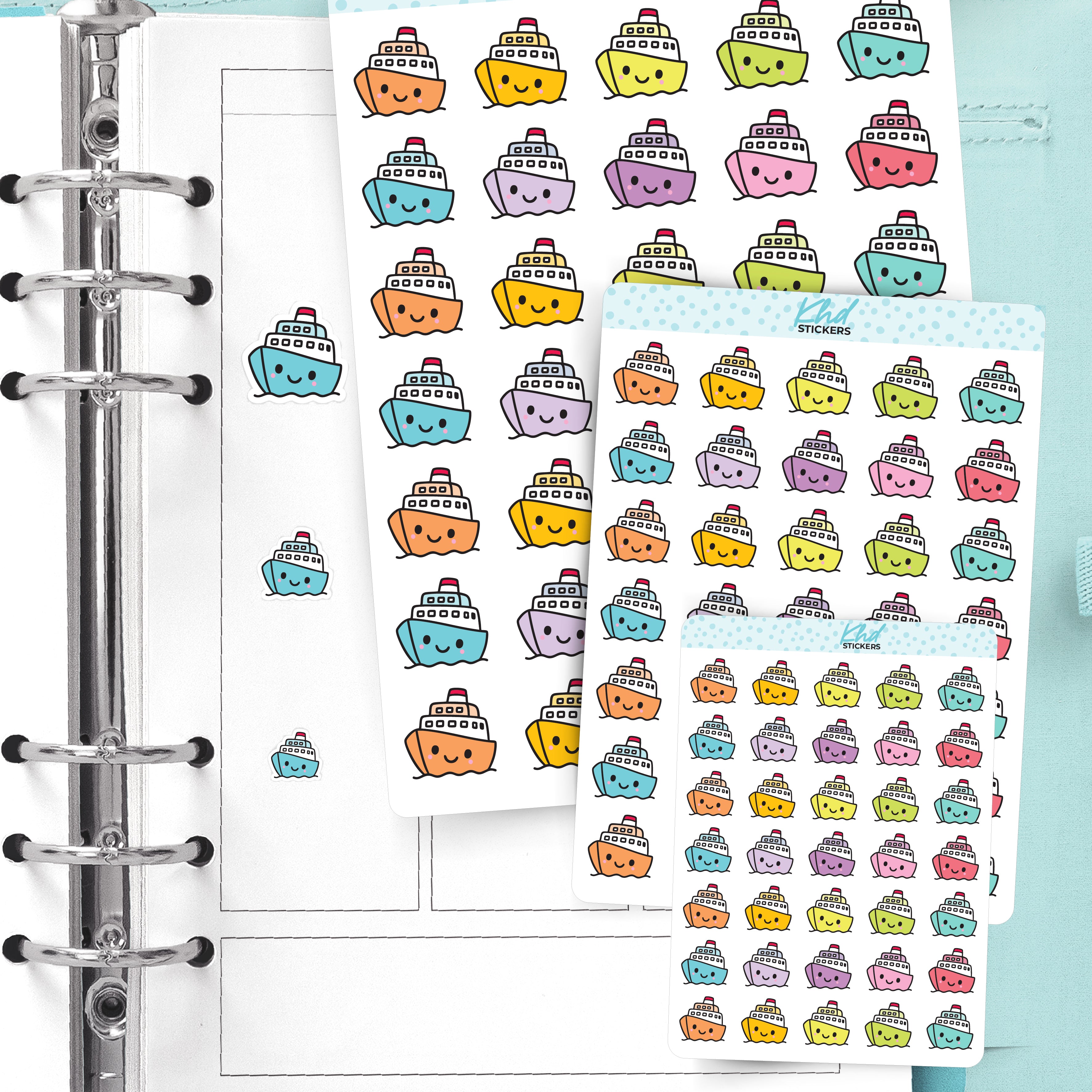 Set sail in style with these Kawaii Cruise Ship stickers! Whether you're planning a tropical escape or dreaming of your next ocean holiday, these smiling ships will help track cruise dates, packing, and port days in your planner, diary, or journal .