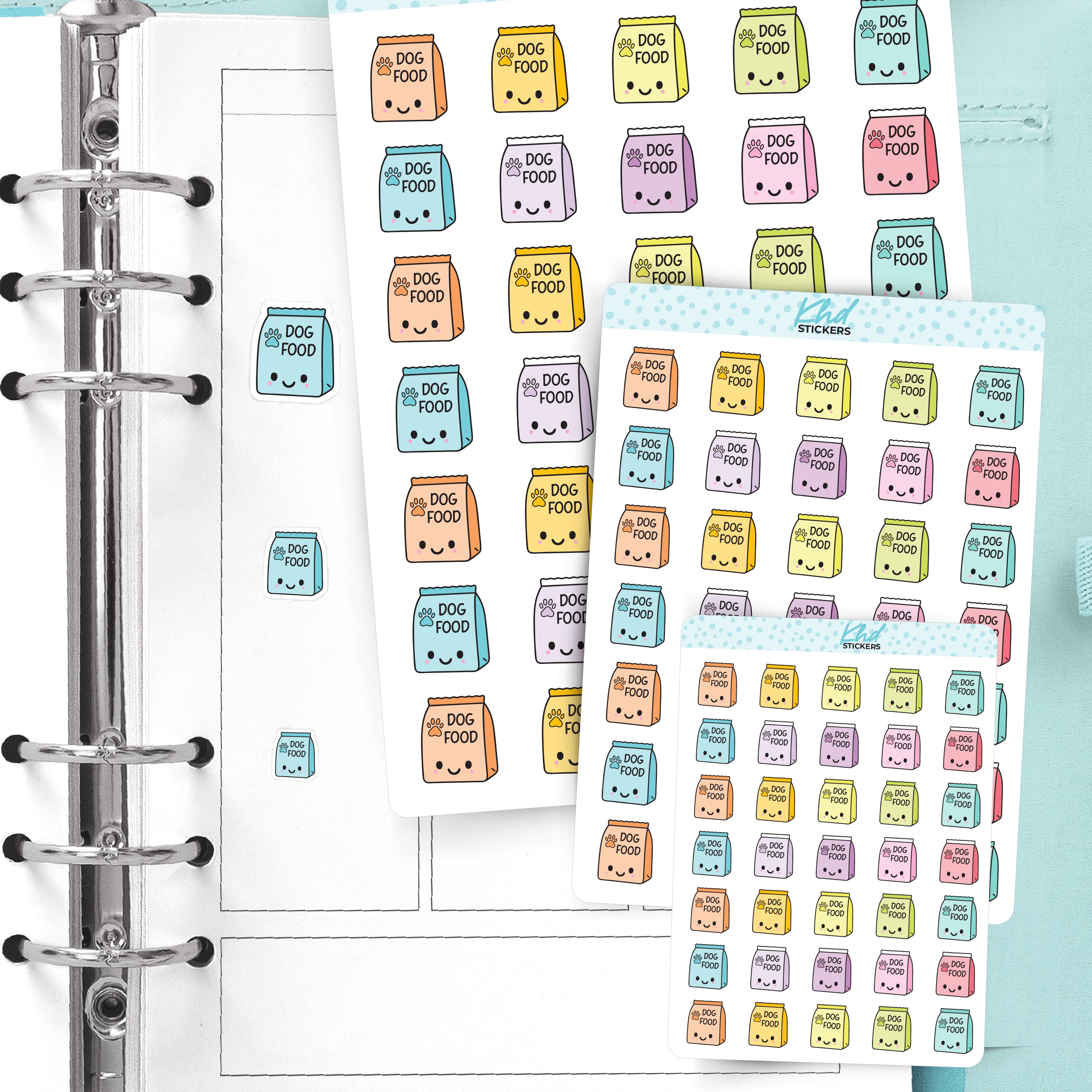 These cute, kawaii-style dog food stickers are perfect for tracking pet feeding schedules or shopping reminders. The cheerful illustration adds a lighthearted touch to your planner pages. Ideal for planners, diaries, and journals used for everyday home organisation.