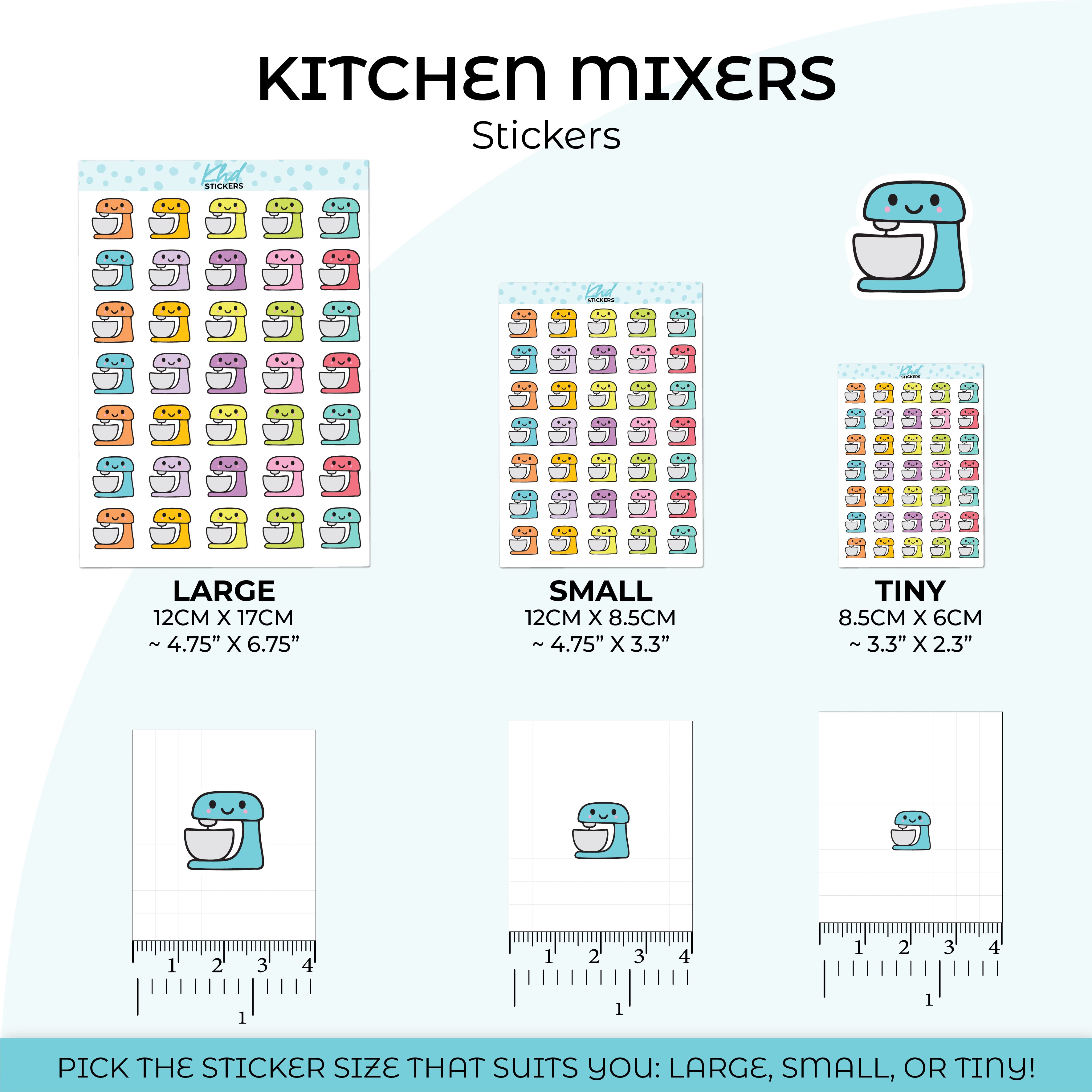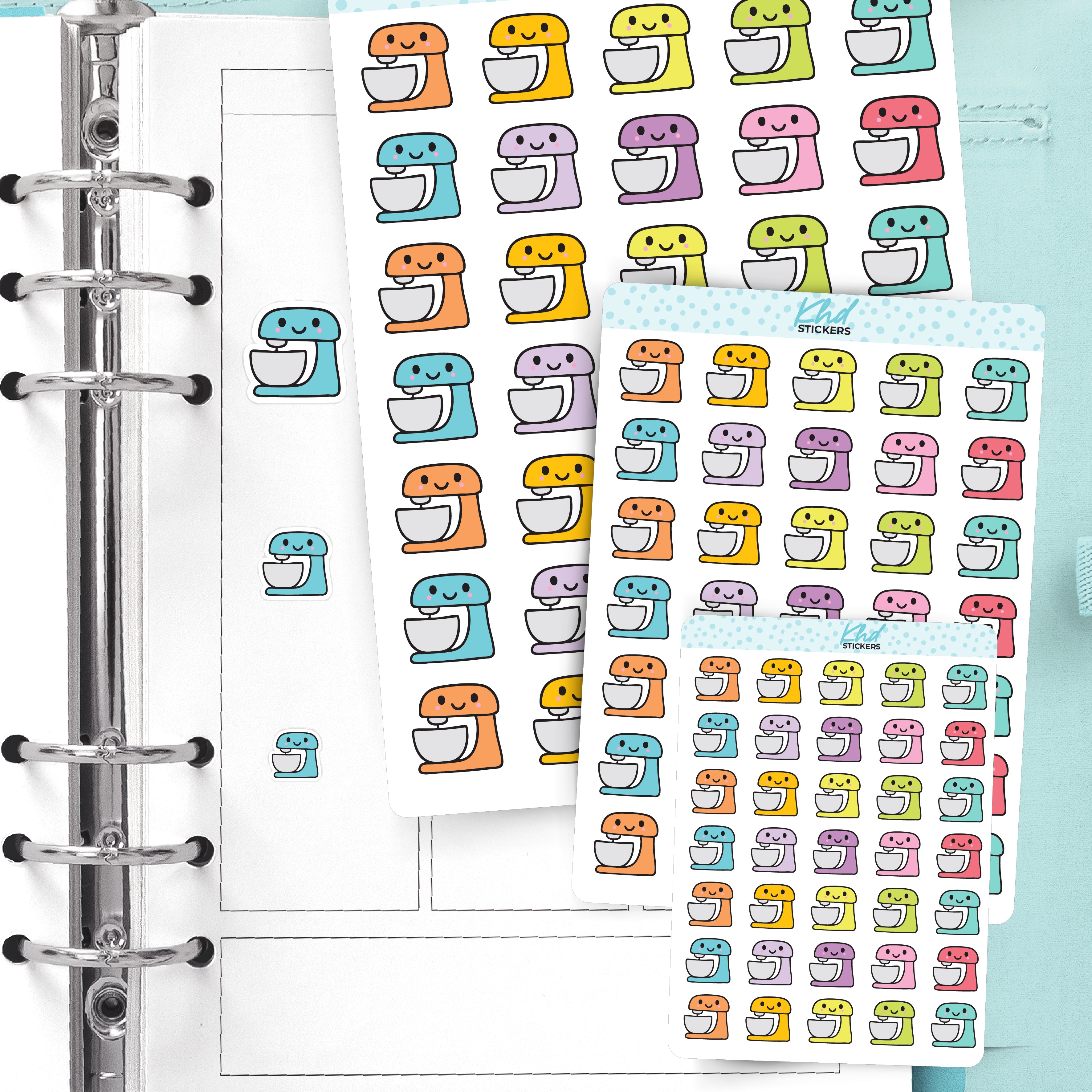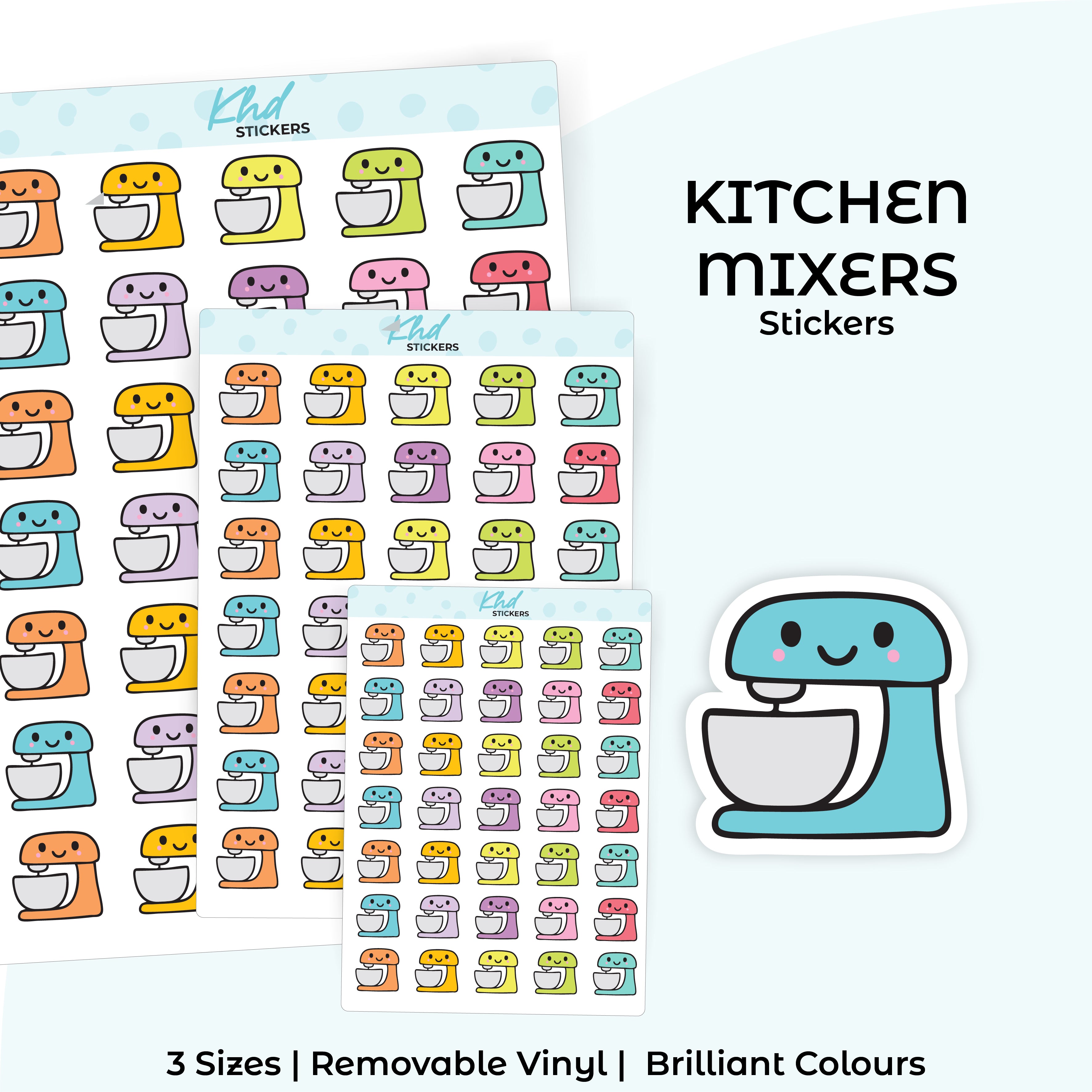 These cute, kawaii-style kitchen mixer stickers are perfect for baking days, food prep, or kitchen plans. The friendly design adds charm while keeping your planner organised. A lovely addition to planners, diaries, and journals for home and cooking routines.