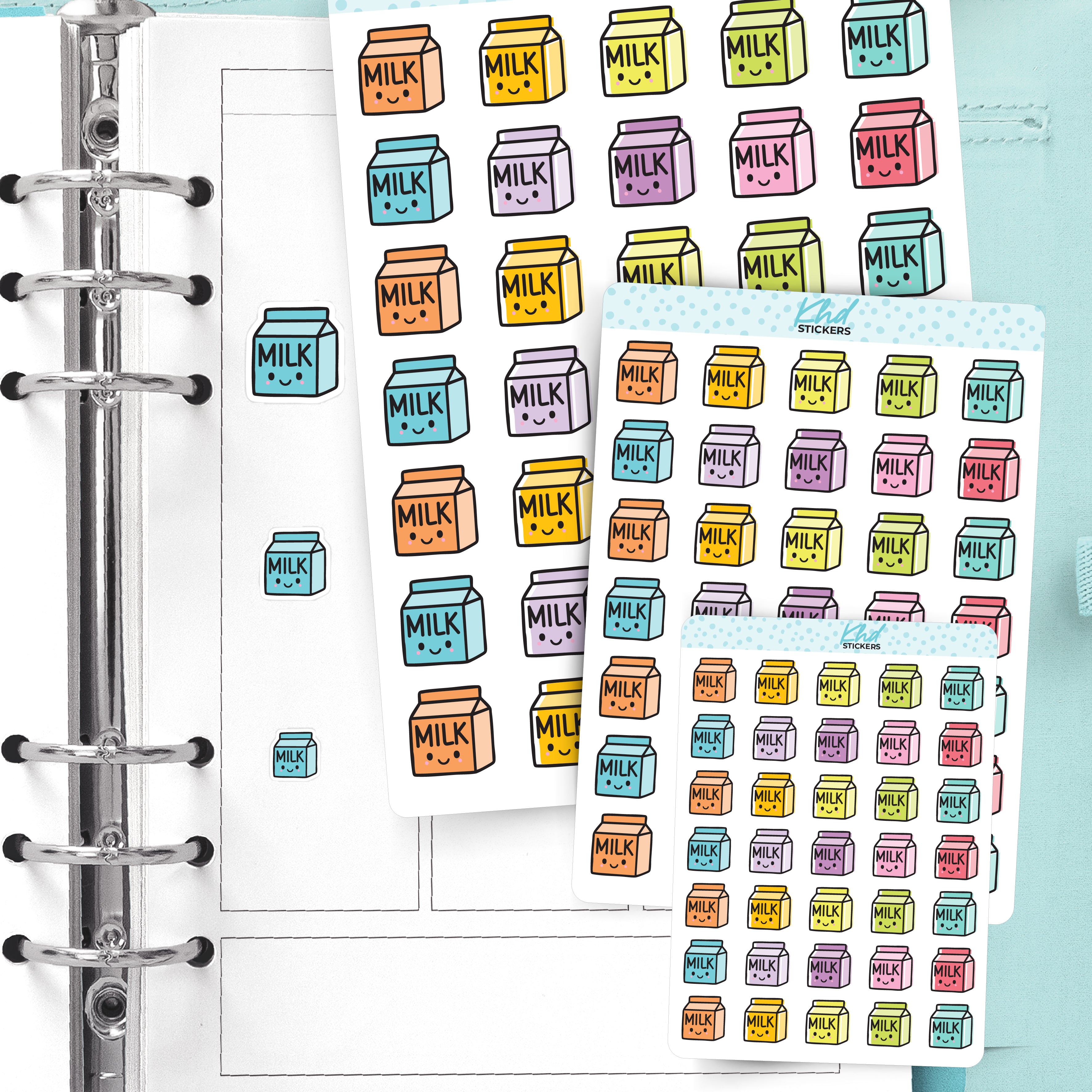 These cute, kawaii-style milk carton stickers are perfect for grocery reminders or daily routines. The simple illustration adds charm while keeping your planner organised. A practical choice for planners, diaries, and journals used for everyday planning.