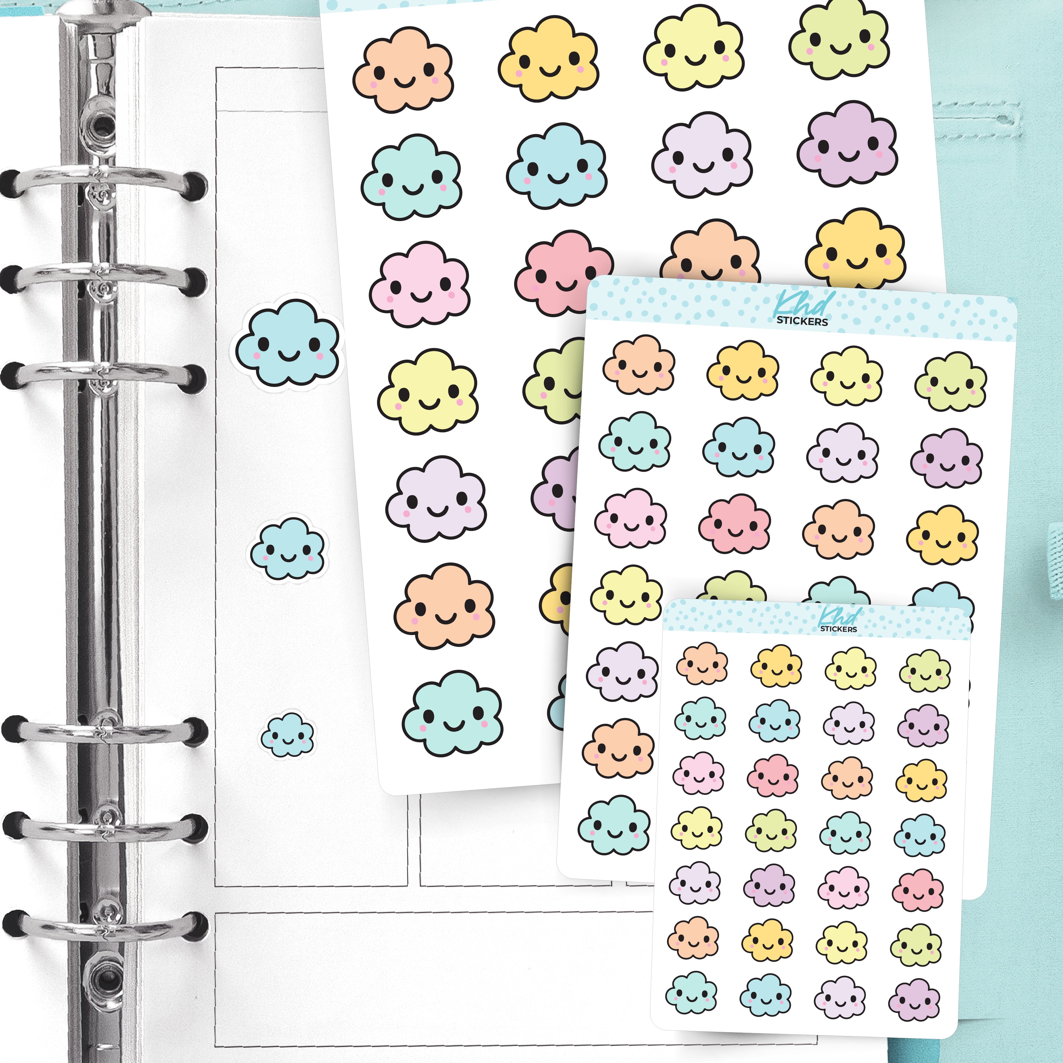 These cute, kawaii-style smiling cloud stickers add a happy touch to your planner pages. Ideal for marking positive days, reminders, or mood tracking. Suitable for planners, diaries, and journals when you want a little extra cheer.