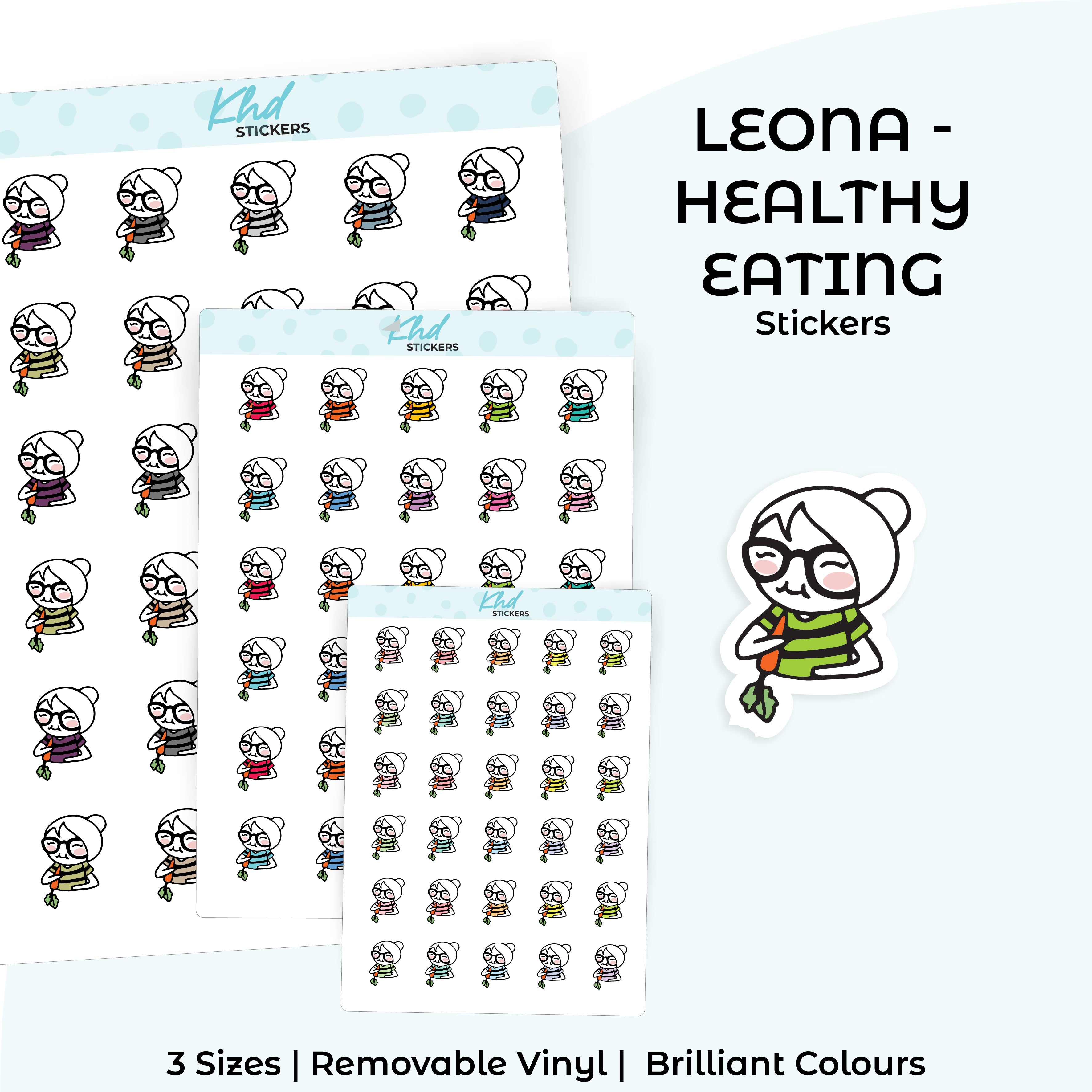 Planner Girl Leona - Healthy Eating Planner Stickers. Select from one of 4 colourways, or select a sheet of your favourite colour. Available in three great sizes making it easy to match your planning style.