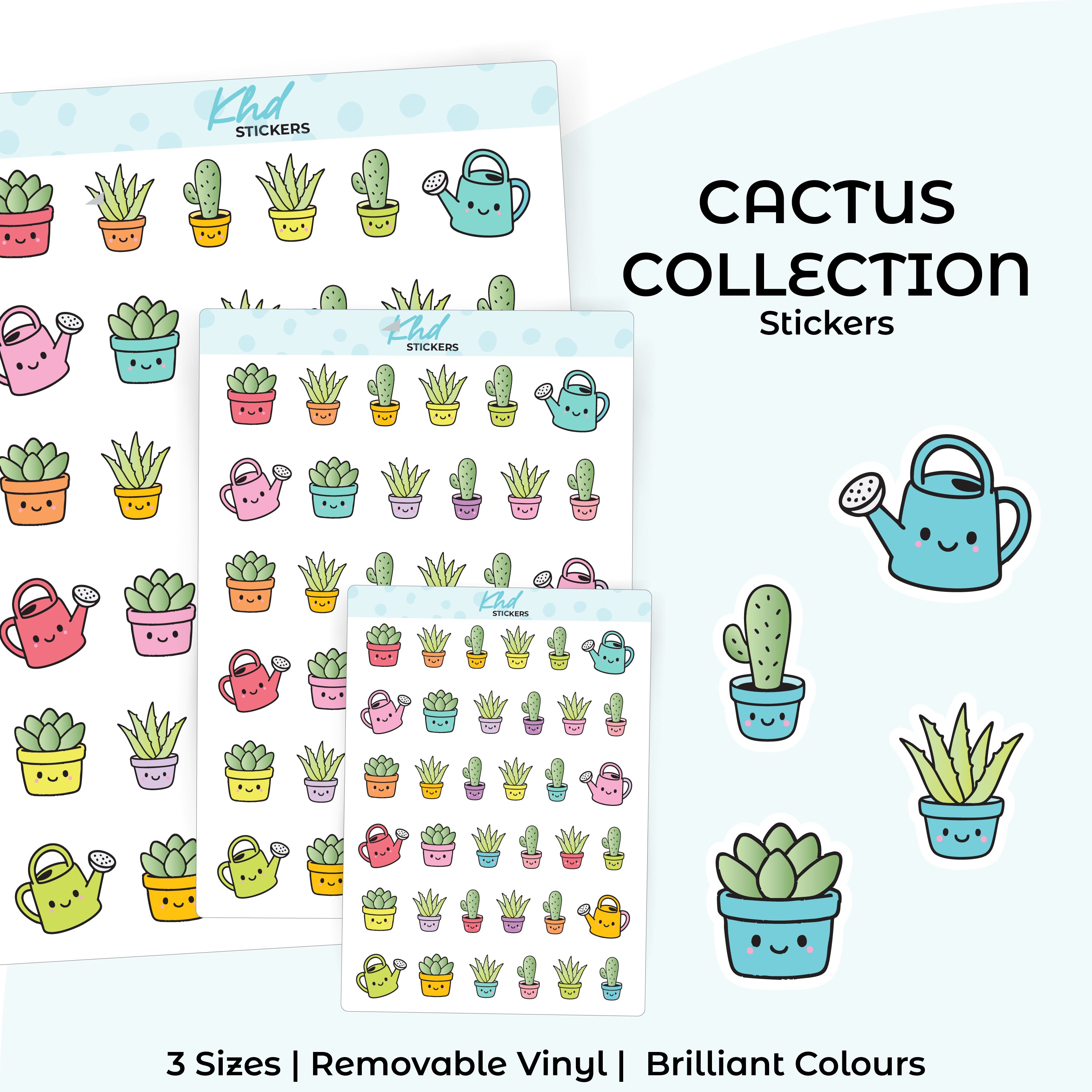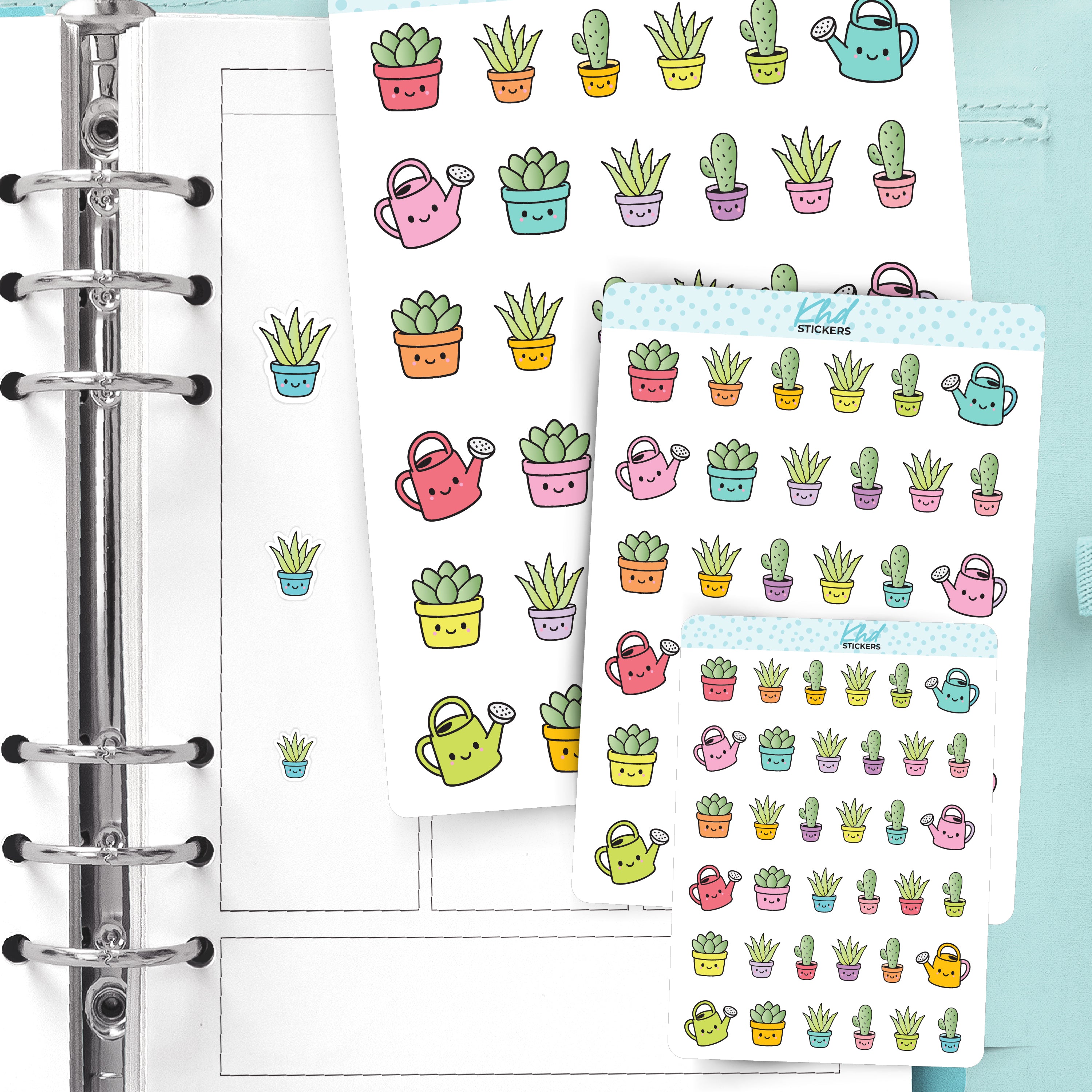 Succulent & Watering Can Kawaii Stickers