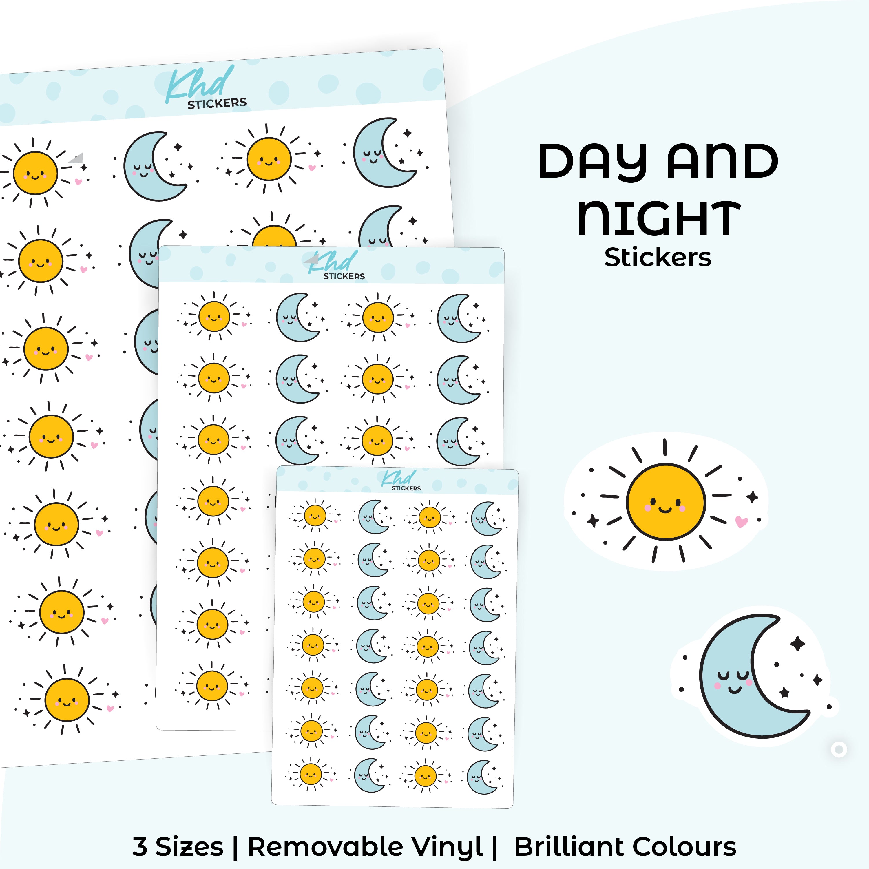 Sun & Moon - Day and Night - Kawaii Stickers