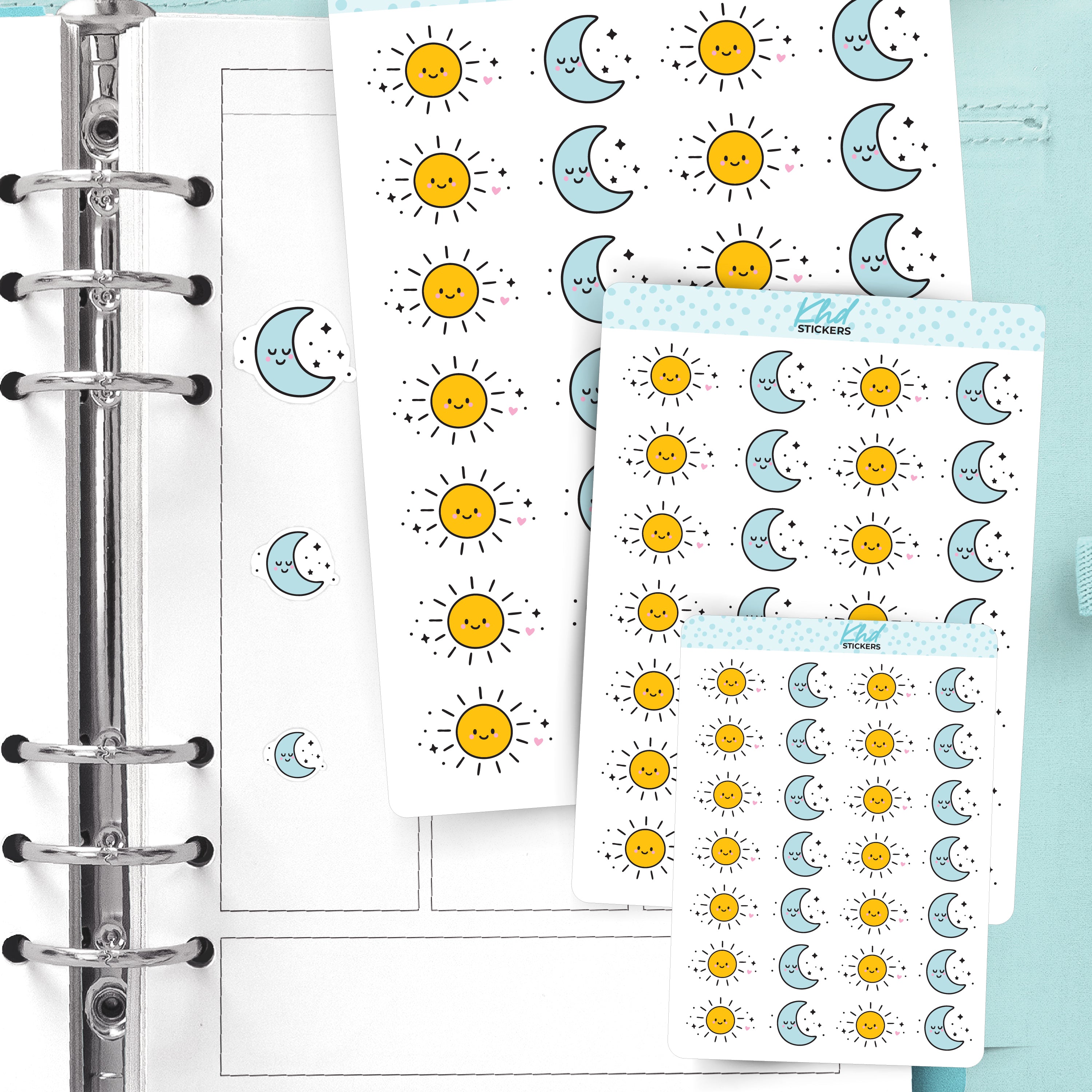 Choose a mixed sheet or select individual sheets of suns or moons to suit your planning style!