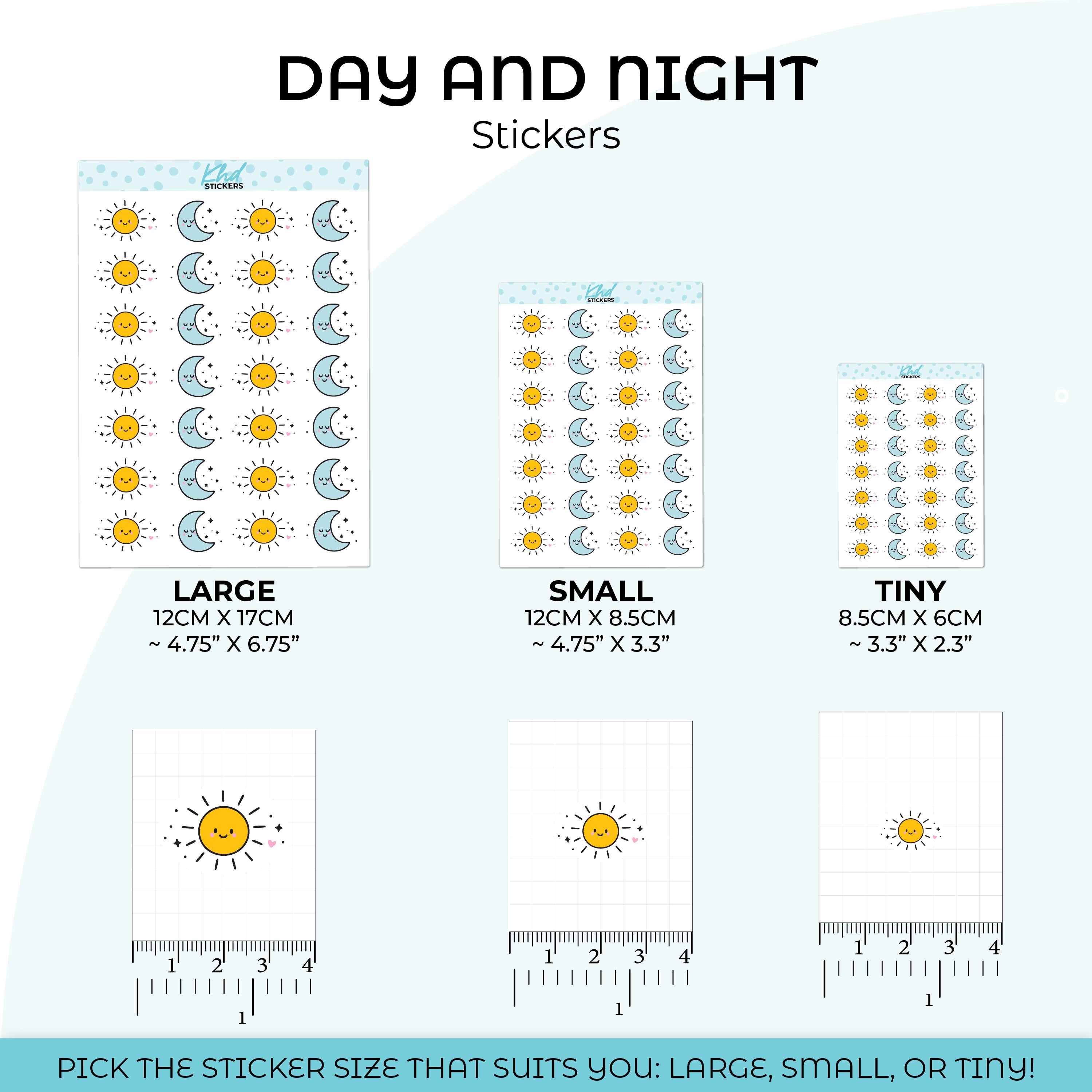 Whether you're a morning ray of sunshine or a dreamy night owl, this sweet set of smiling sun and moon stickers has you covered! Each one is packed with soft pastel charm and a cheerful face.  Great for marking day/night events, moods, or weather in your planner, diary, or journal.