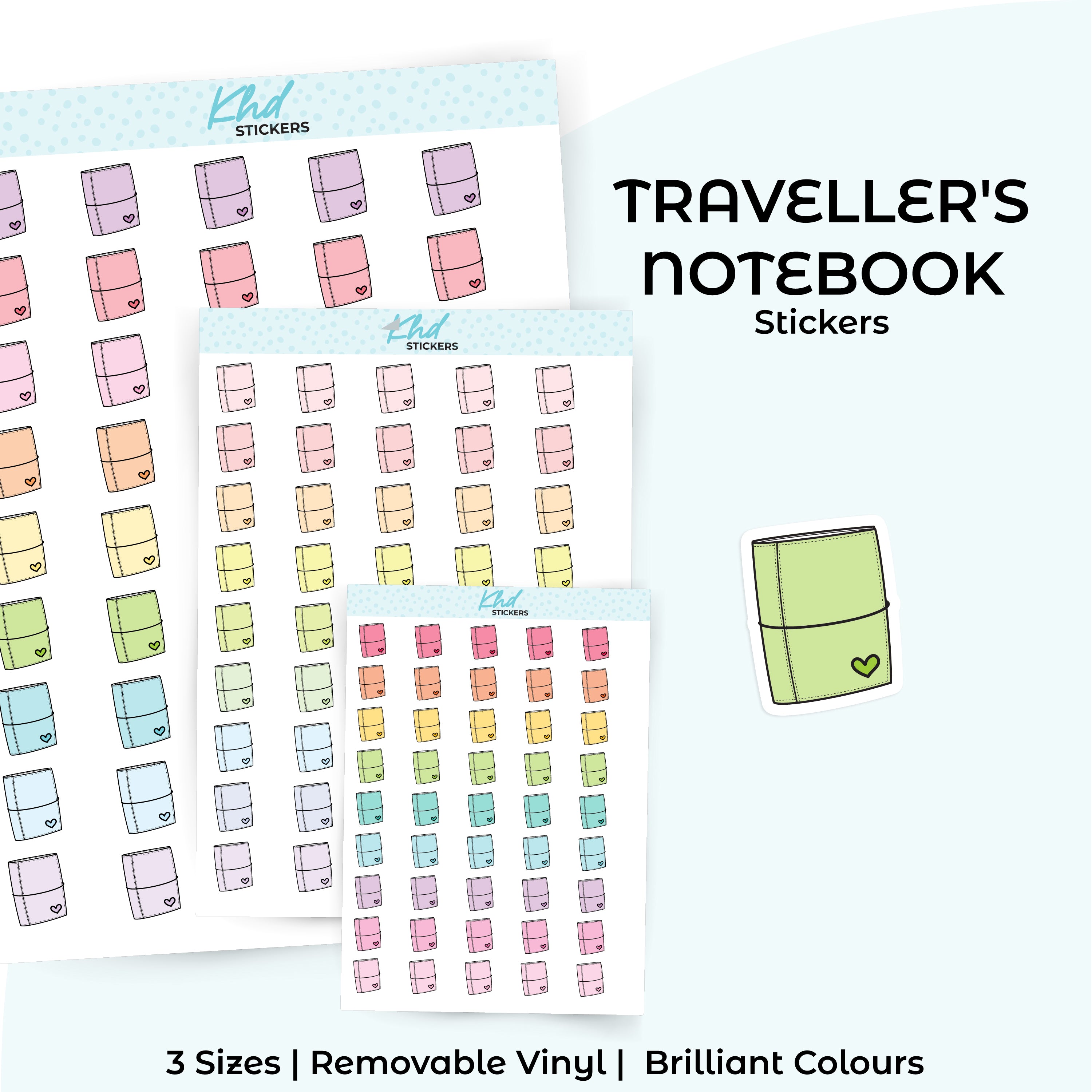 Traveller's Notebook Planner Stickers. Select from one of 4 colourways, or select a sheet of your favourite colour. Available in three great sizes making it easy to match your planning style.
