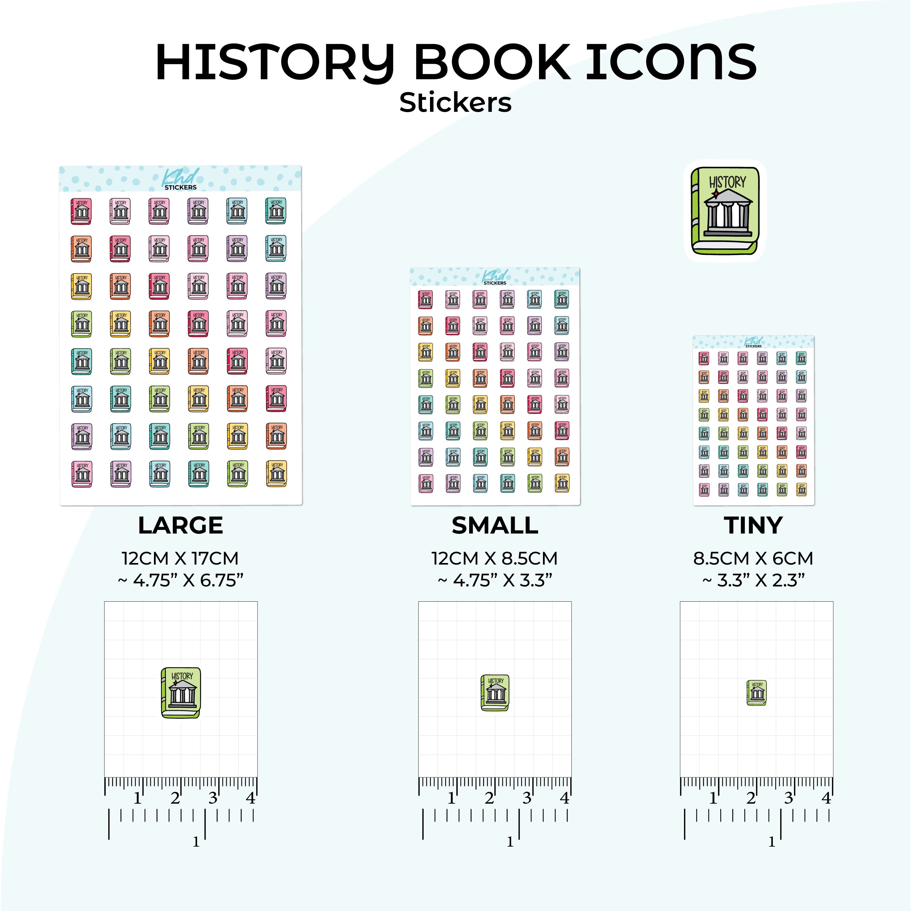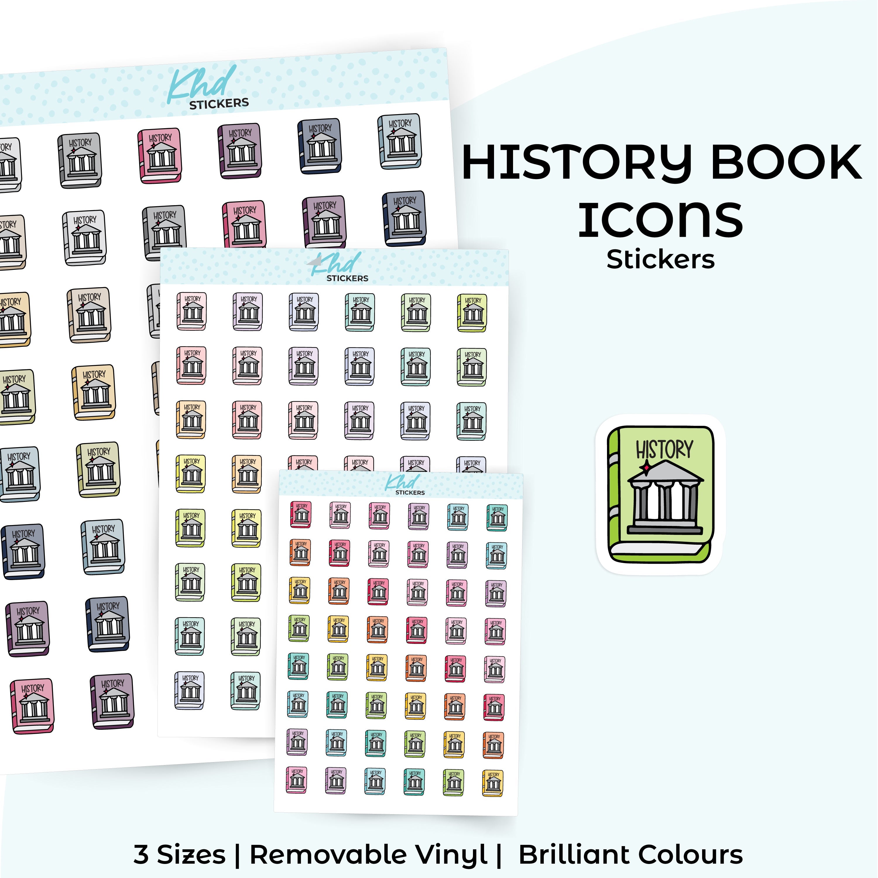Cute functional history book icons for planners, diaries, and journals.