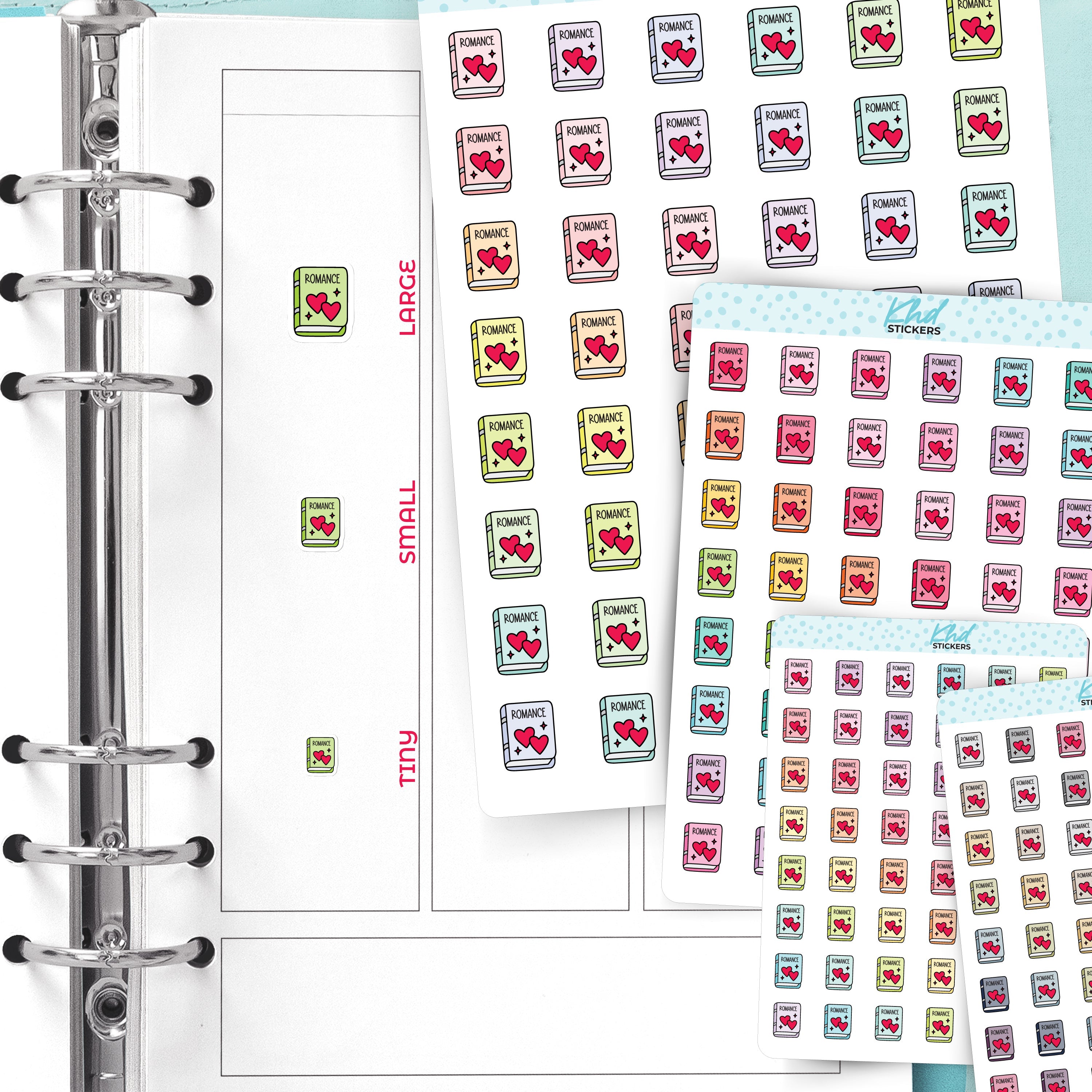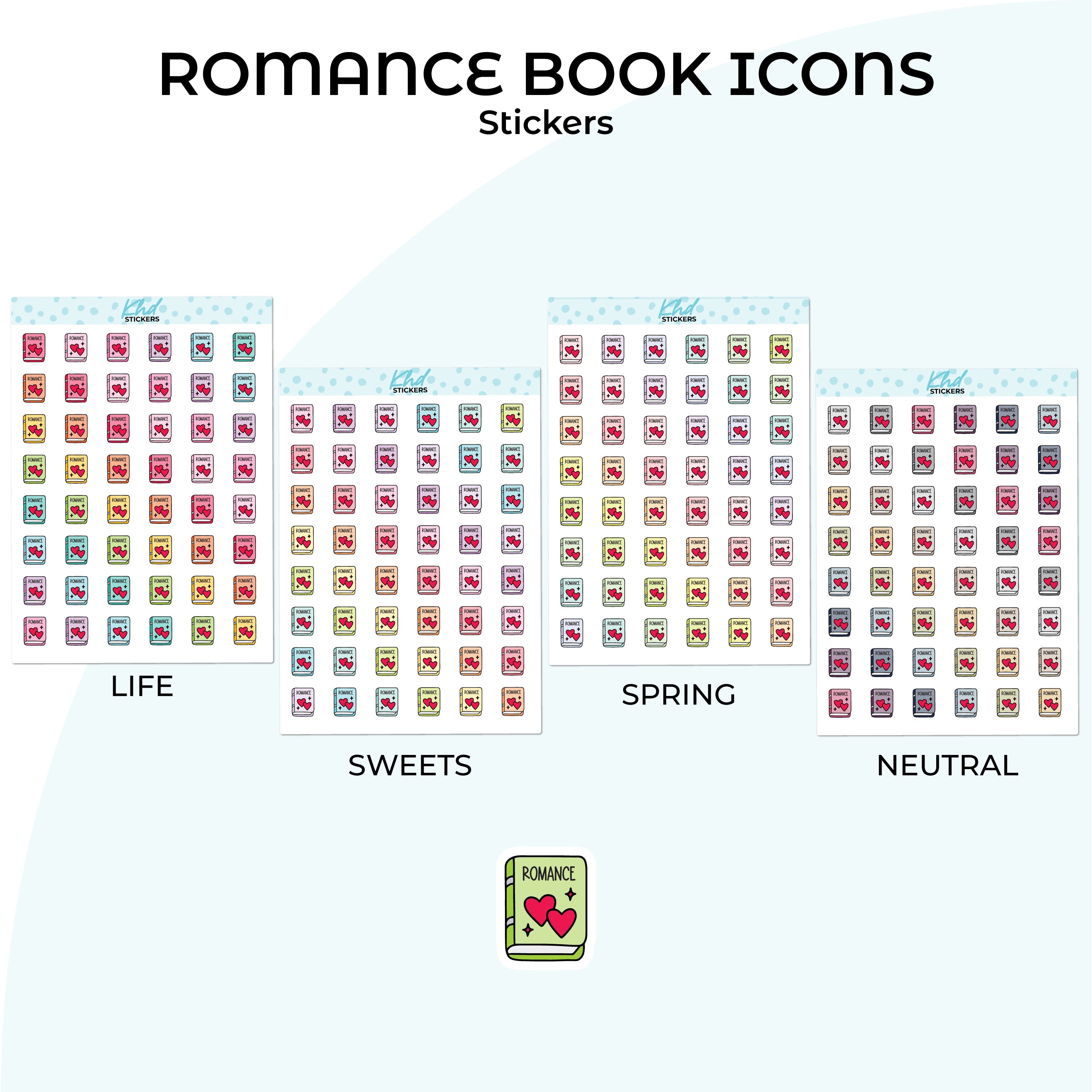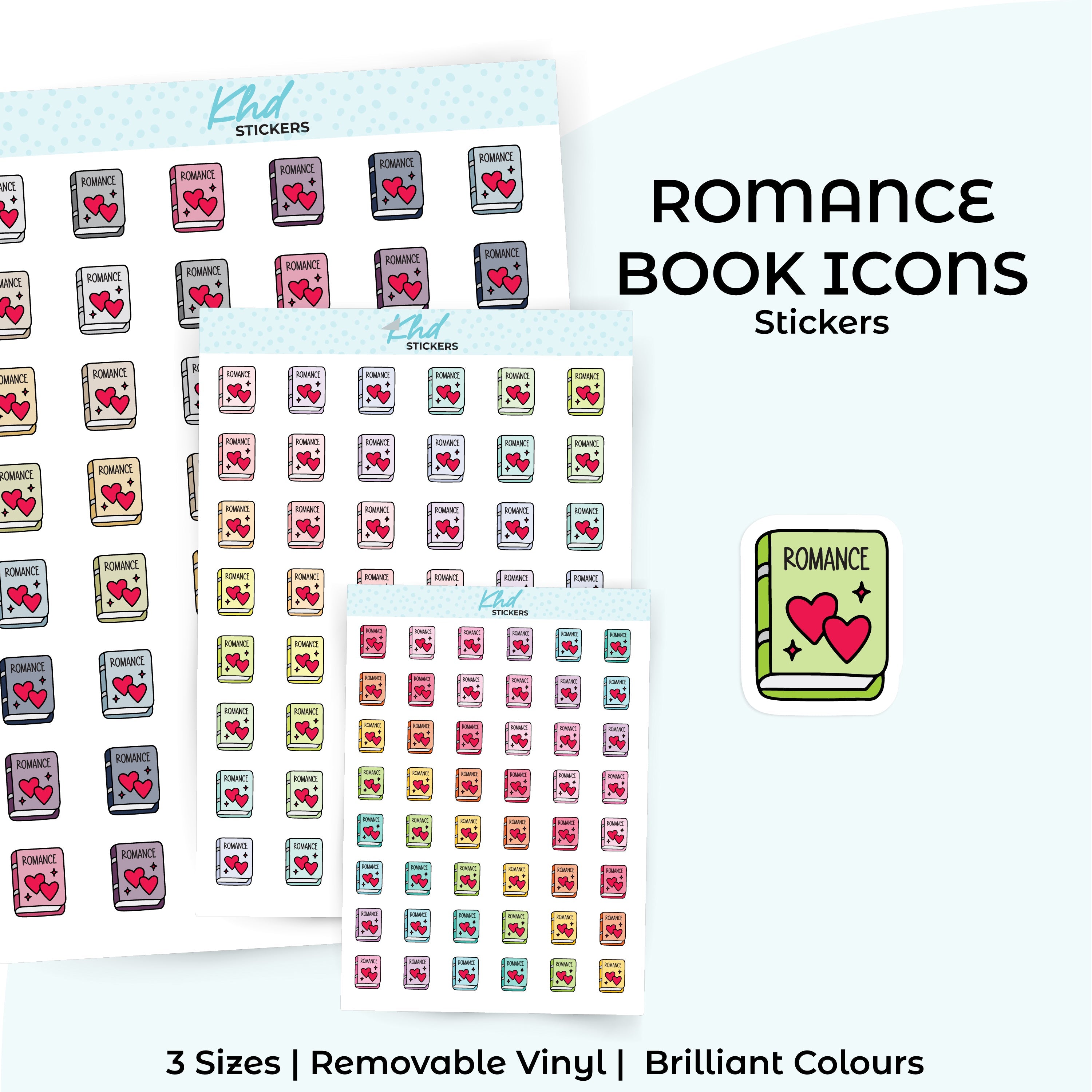 Cute functional romance book icons for planners, diaries, and journals.