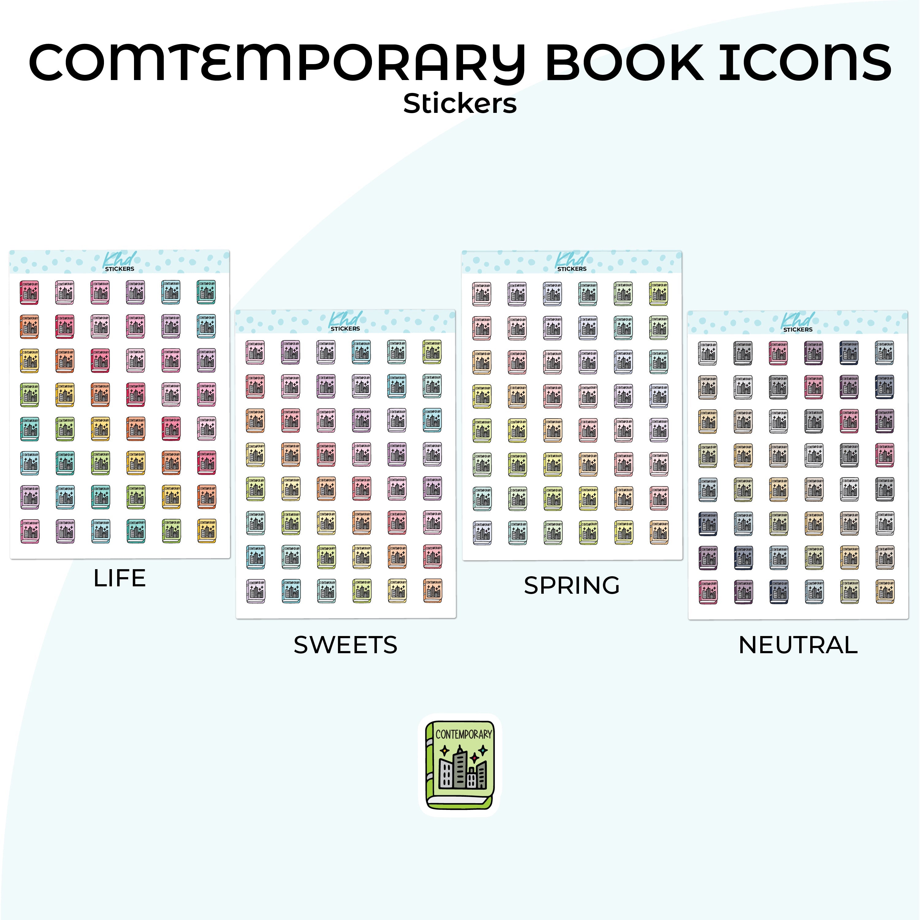 Cute functional comtemporary book icons for planners, diaries, and journals.
