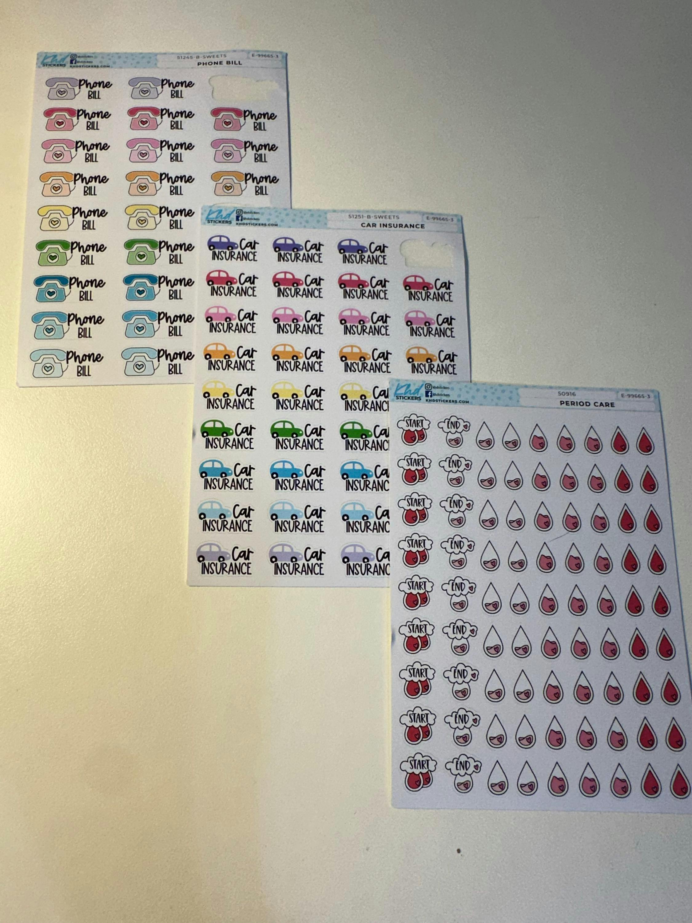 Car Insurance Planner Stickers. Select from one of 4 colourways, or select a sheet of your favourite colour. Available in three great sizes making it easy to match your planning style.