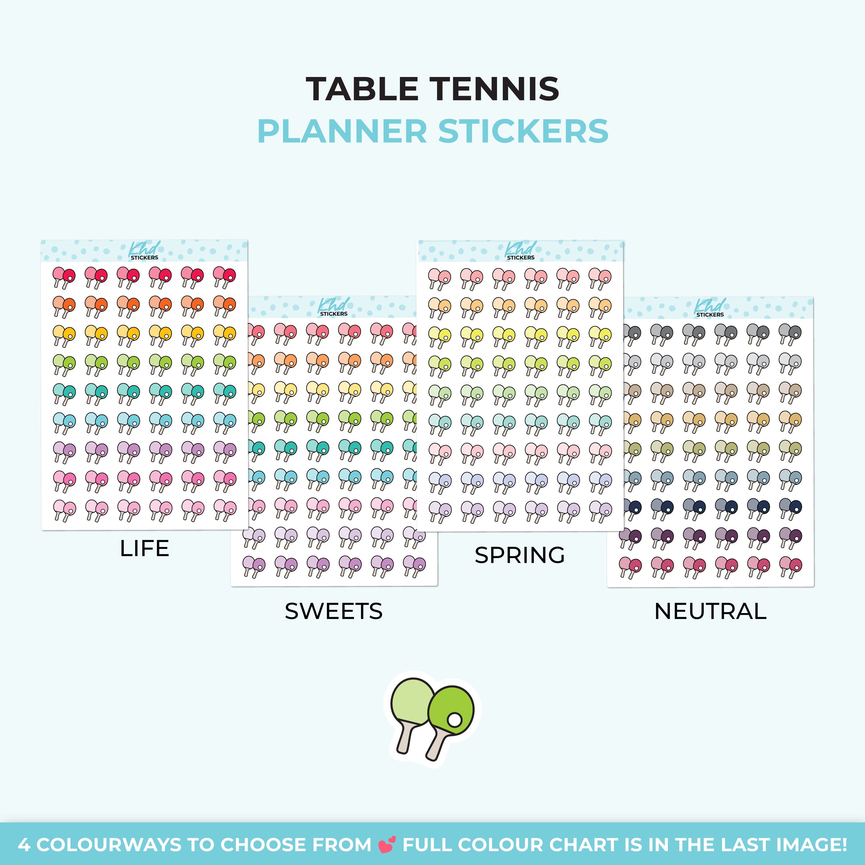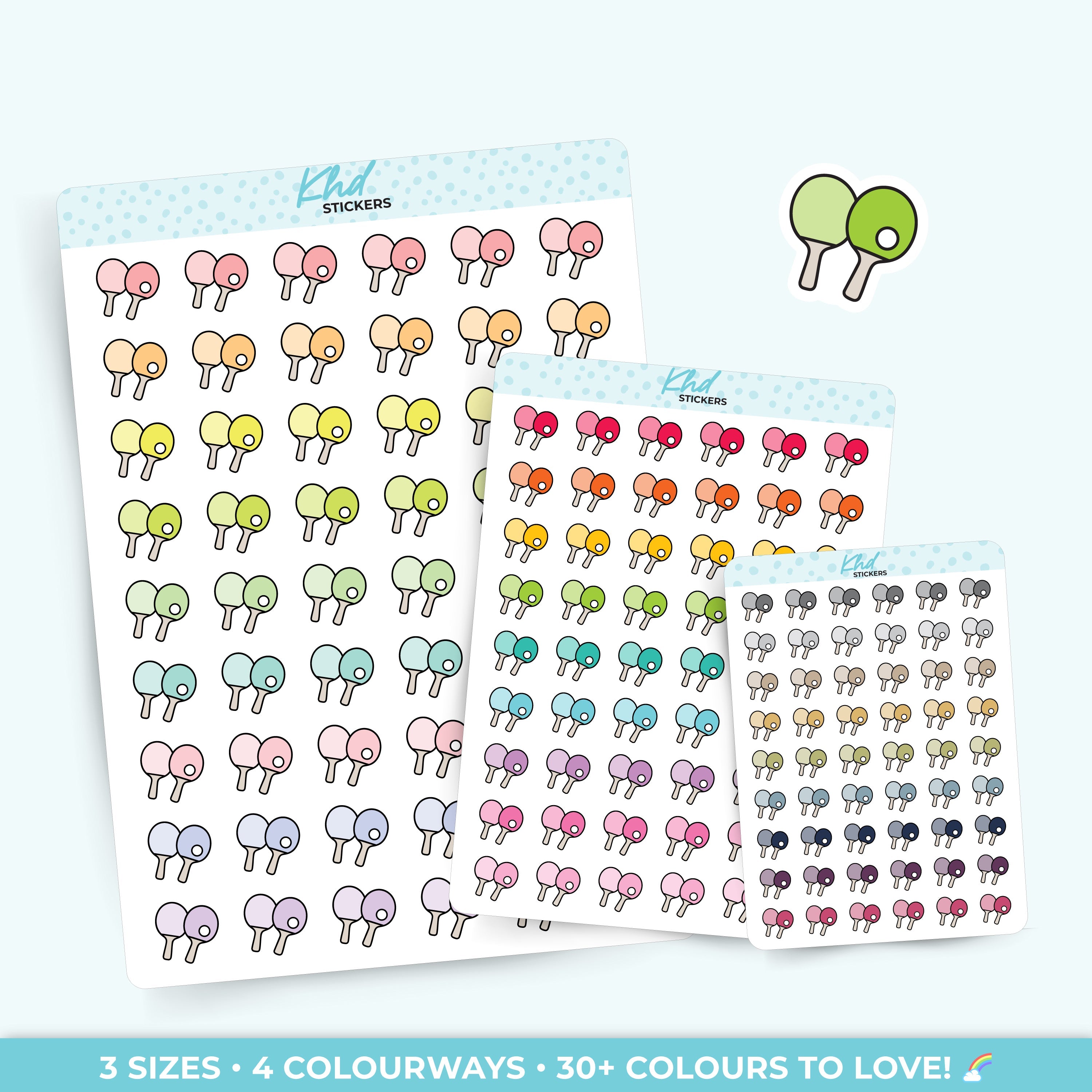 Table Tennis Planner Stickers in three sizes and 35 colourways. Removable, smooth-matte finish.