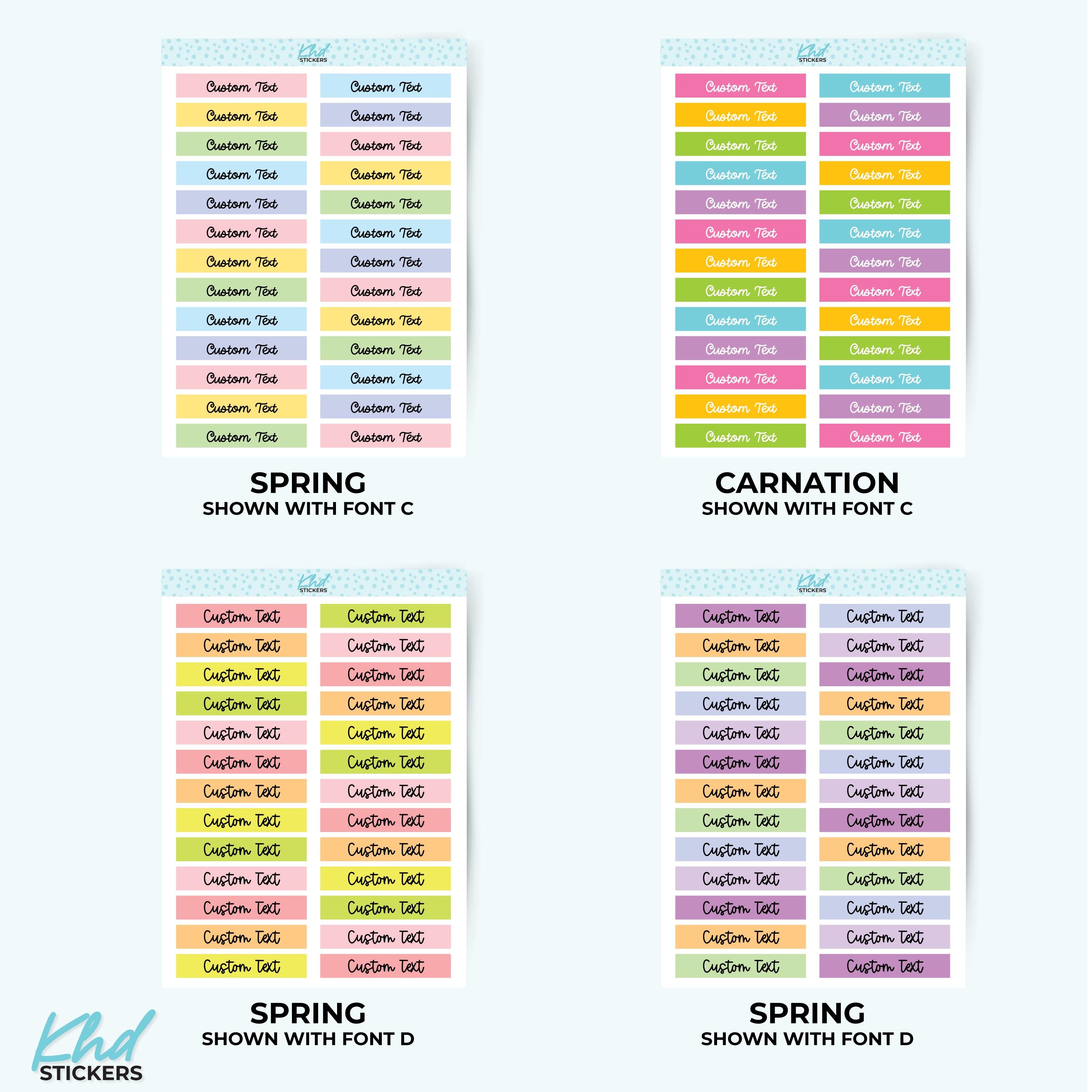 There's 6 fonts, and 16 colourways.  Or select your own single colour to match your planning style.