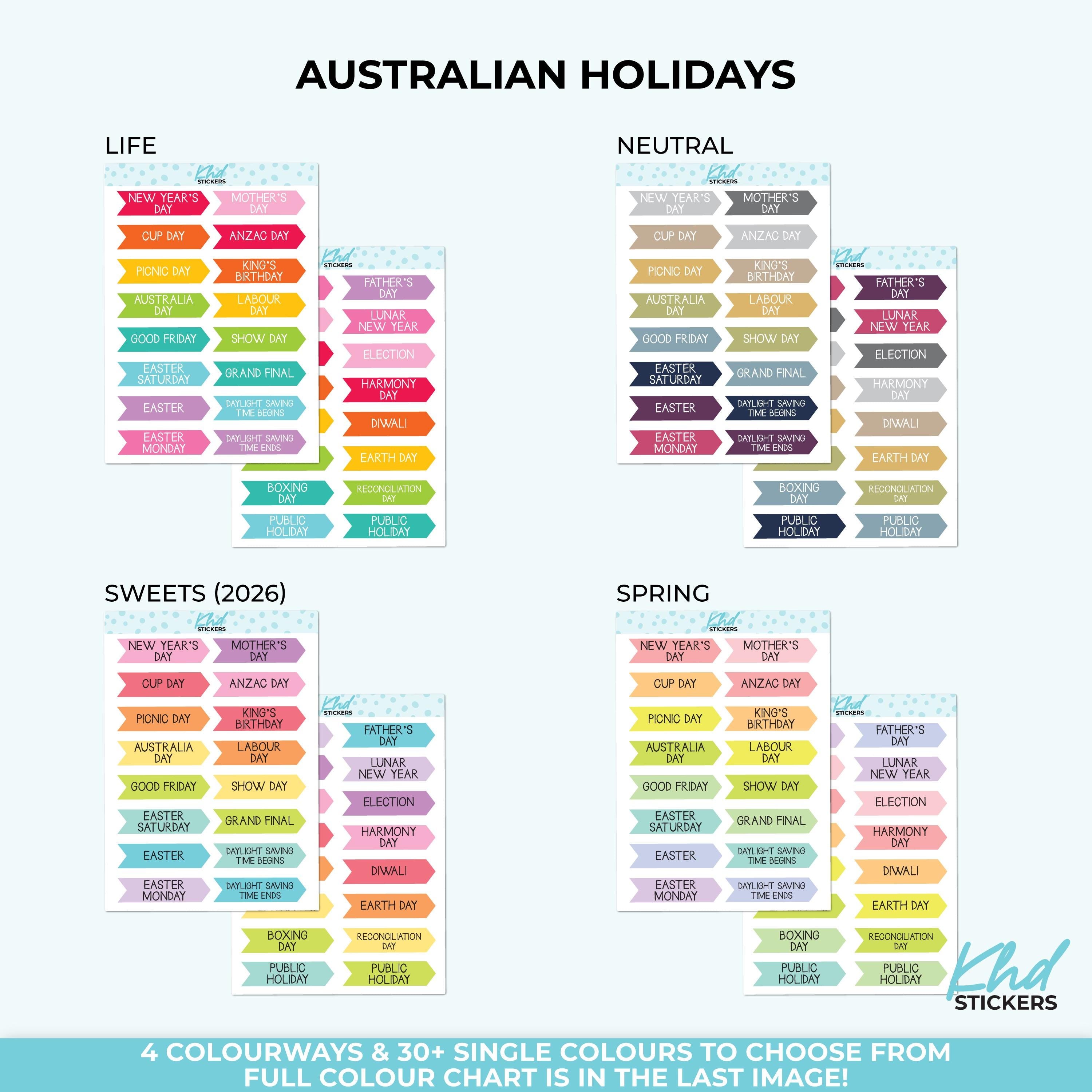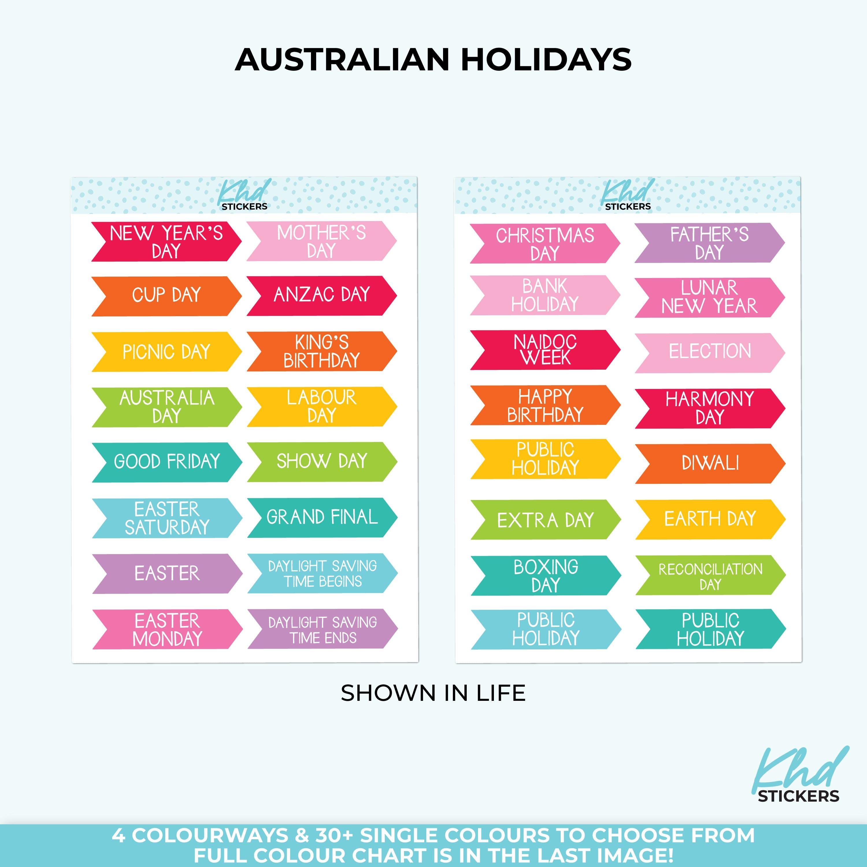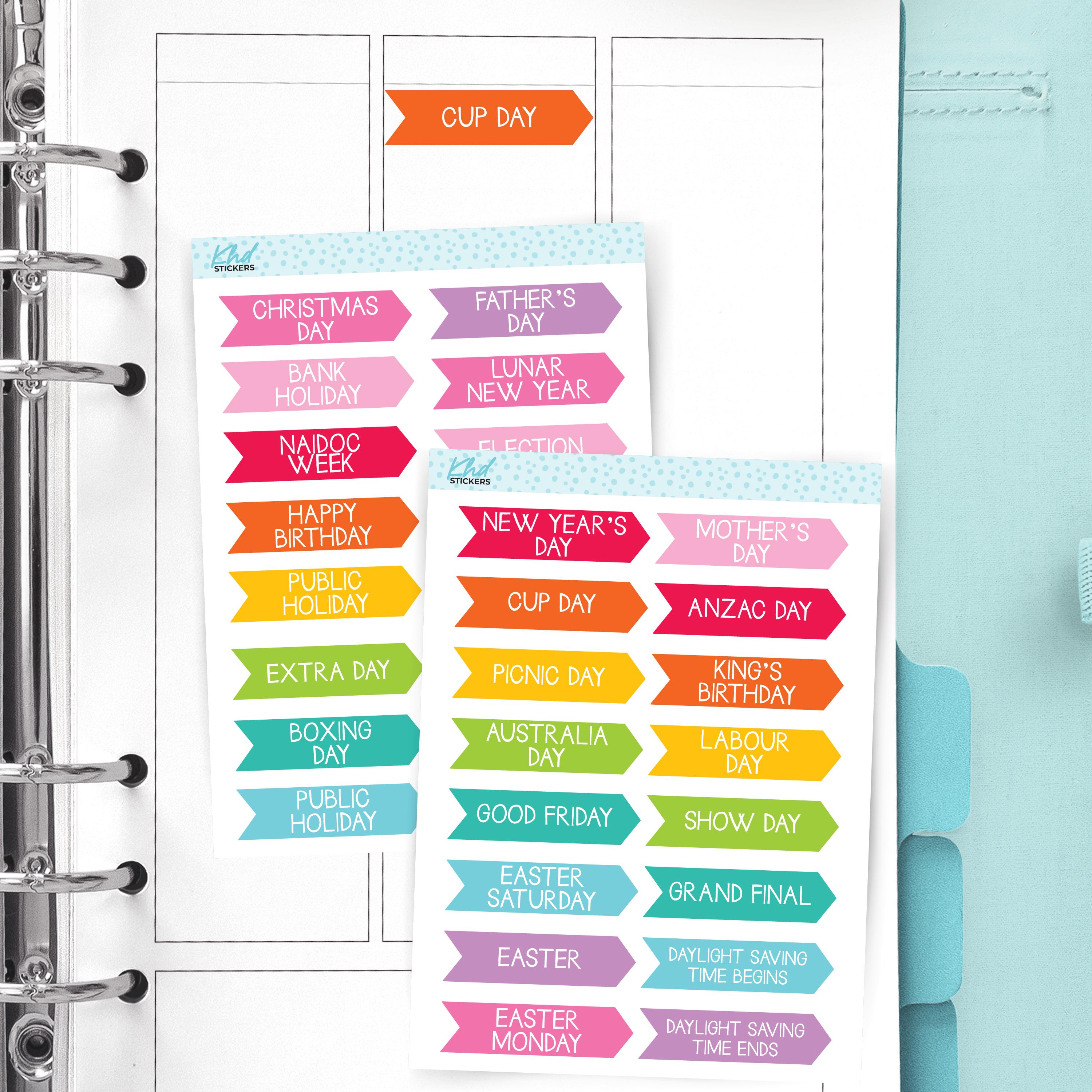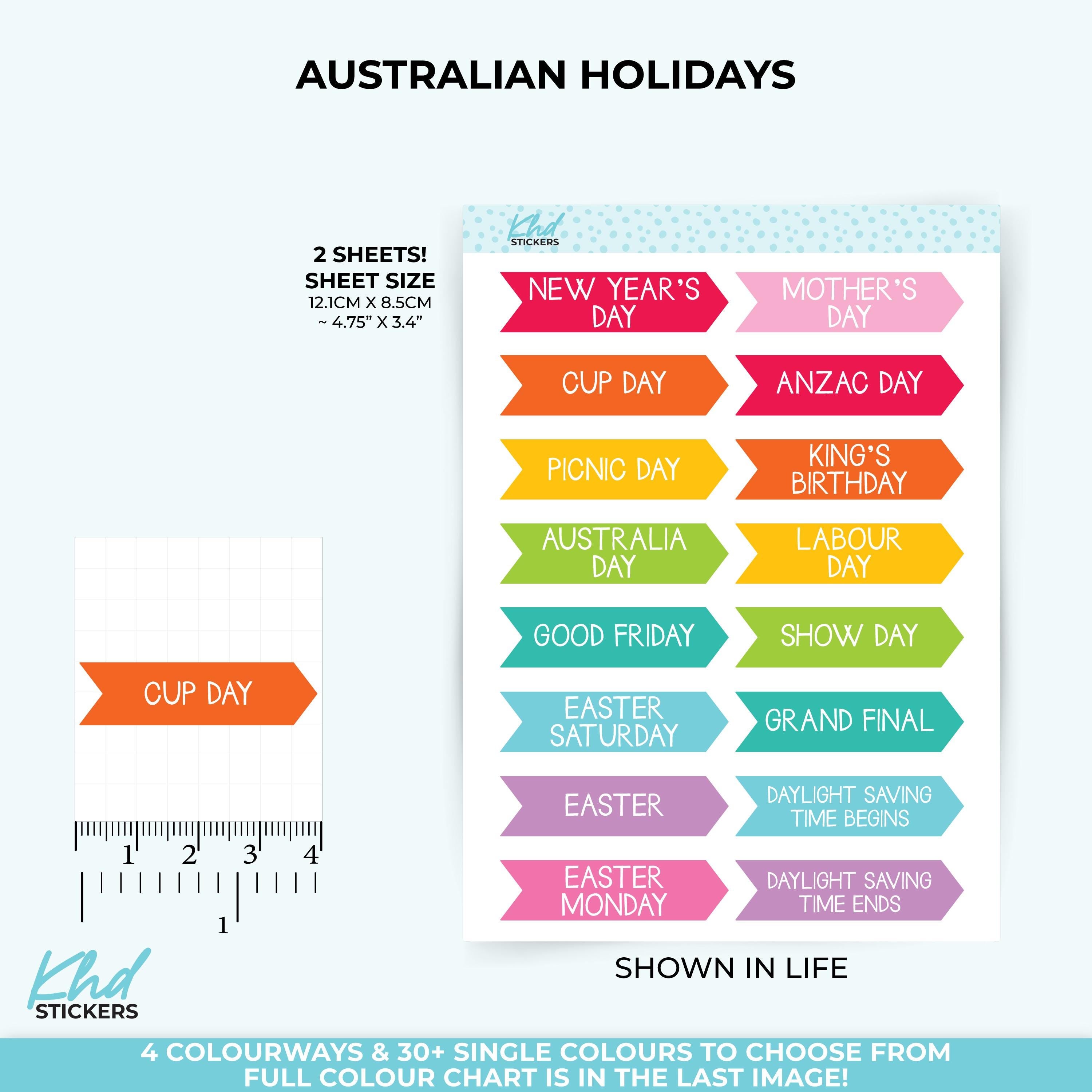 Mark Australian events and public holidays in your planner.