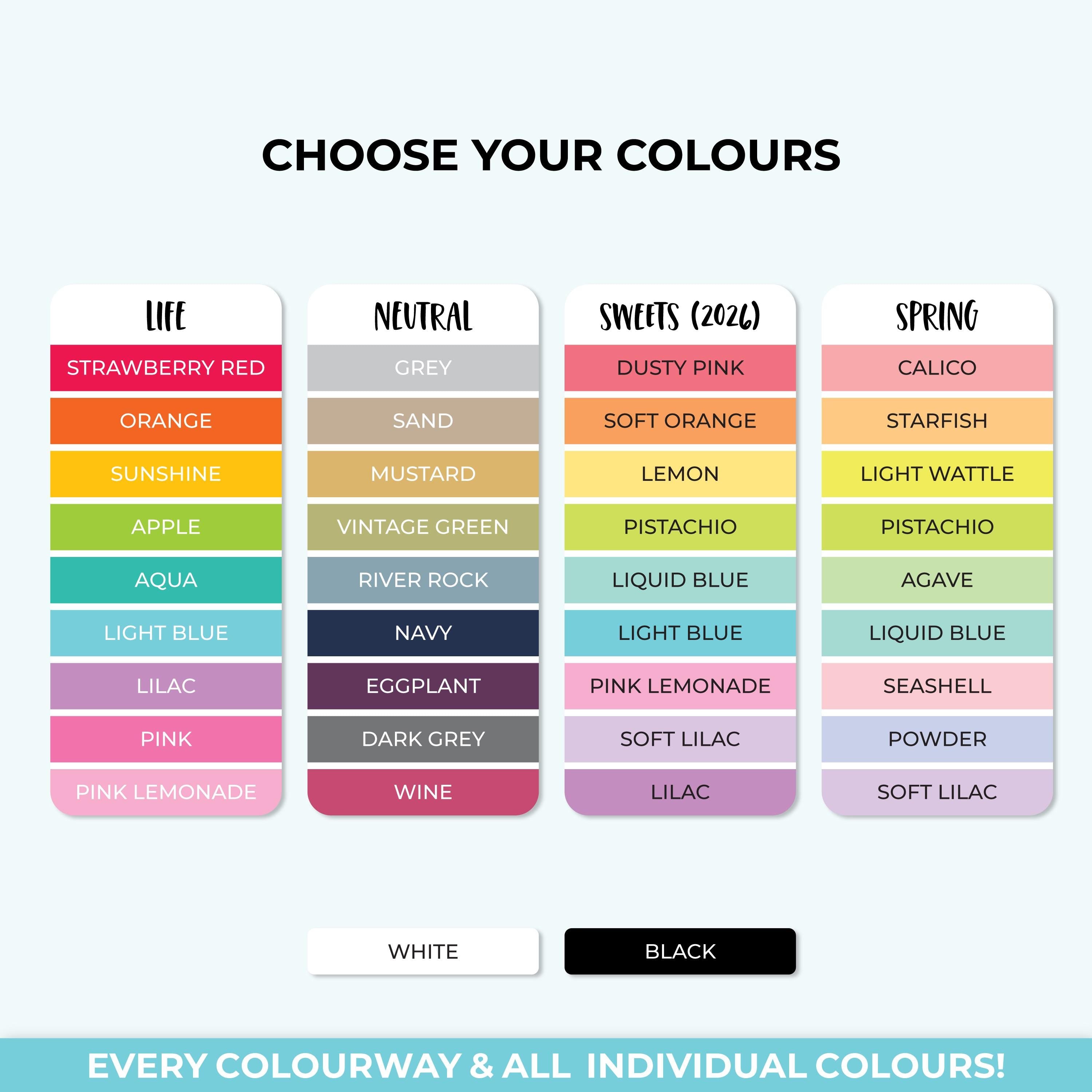 Vinyl can be removed or repositioned on most papers for up to 6 months, and comes your choice of colourways and individual colours. Permanent Markers are the preferred pen.