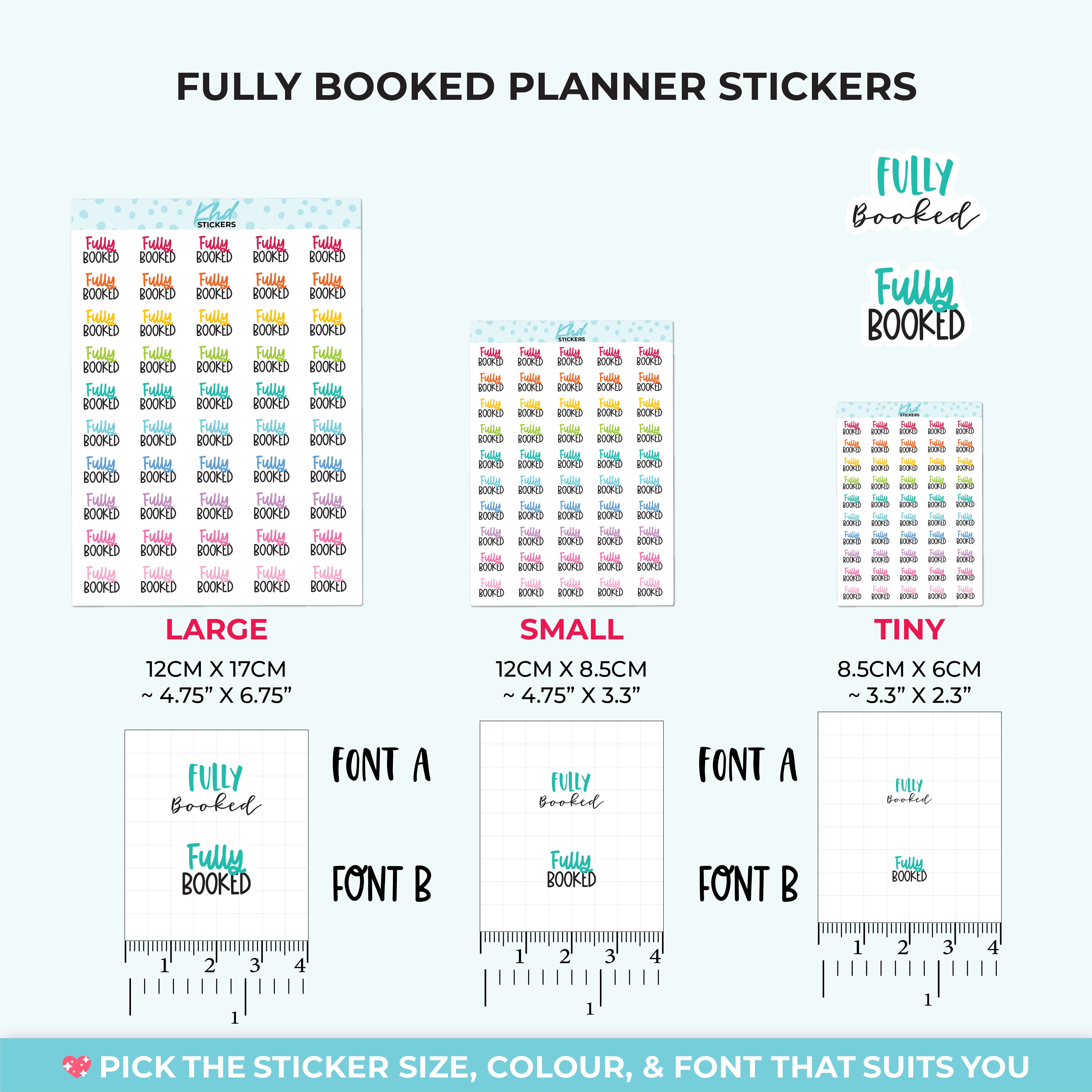 Fully Booked Planner Stickers. Select from one of 4 colourways, or select a sheet of your favourite colour. Available in three great sizes making it easy to match your planning style.