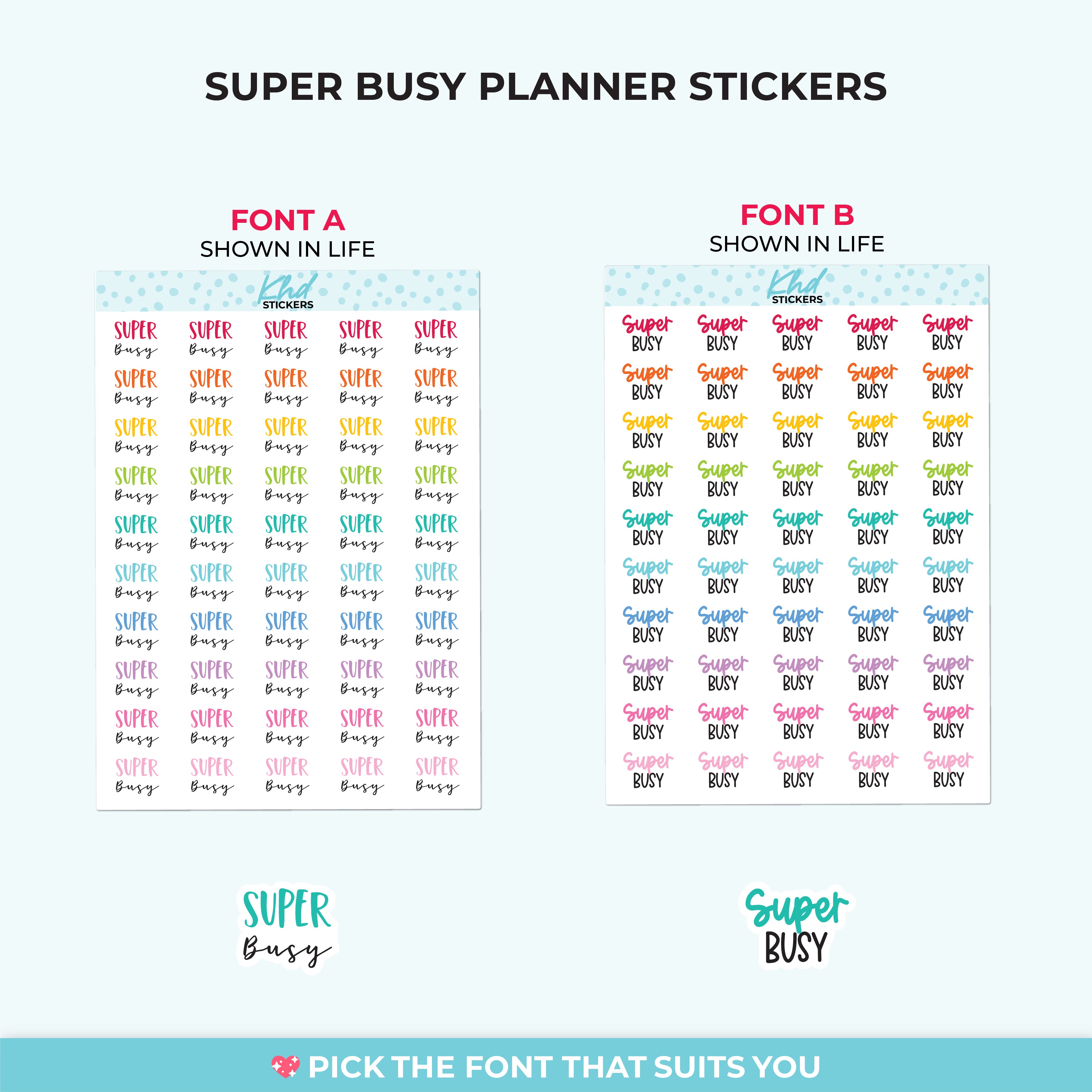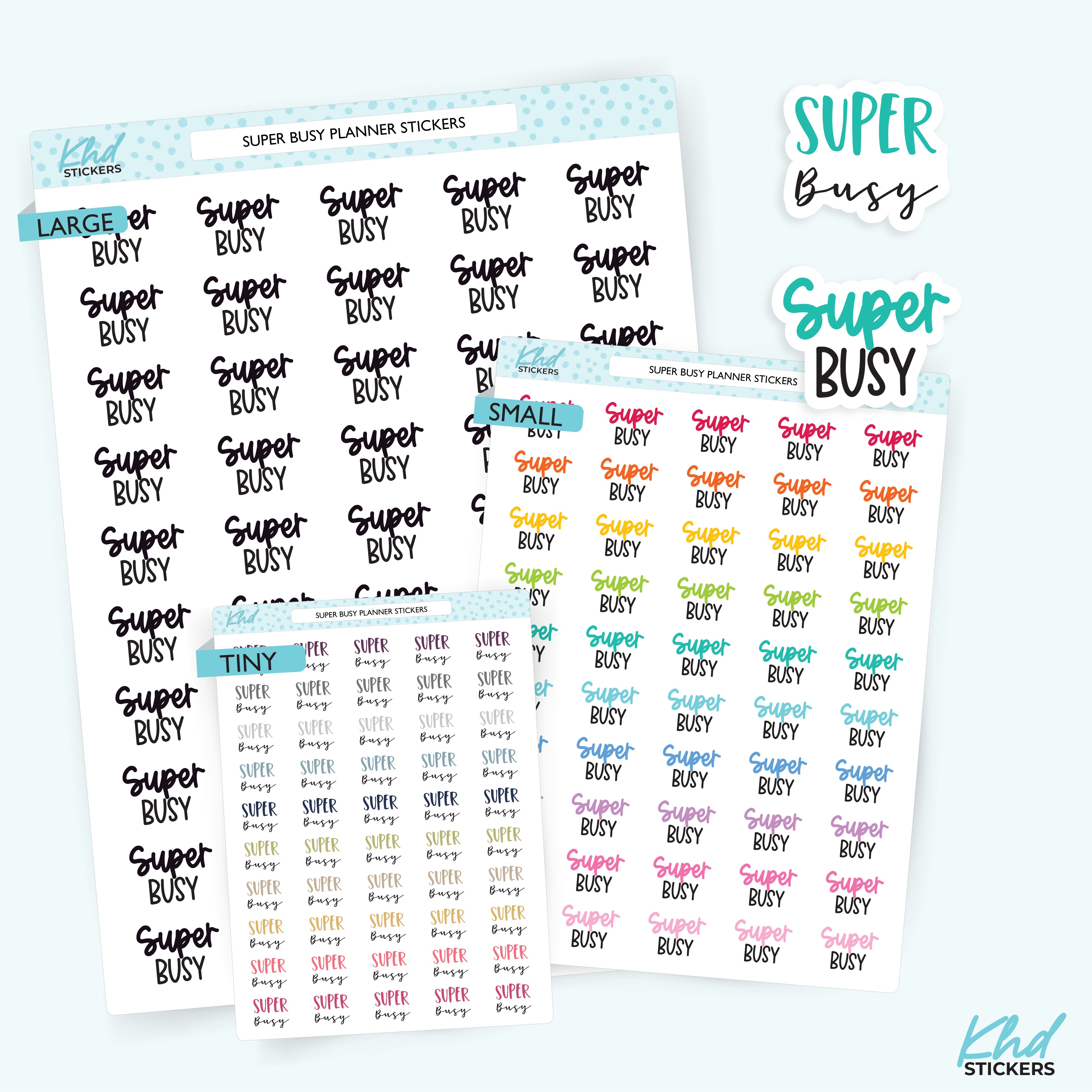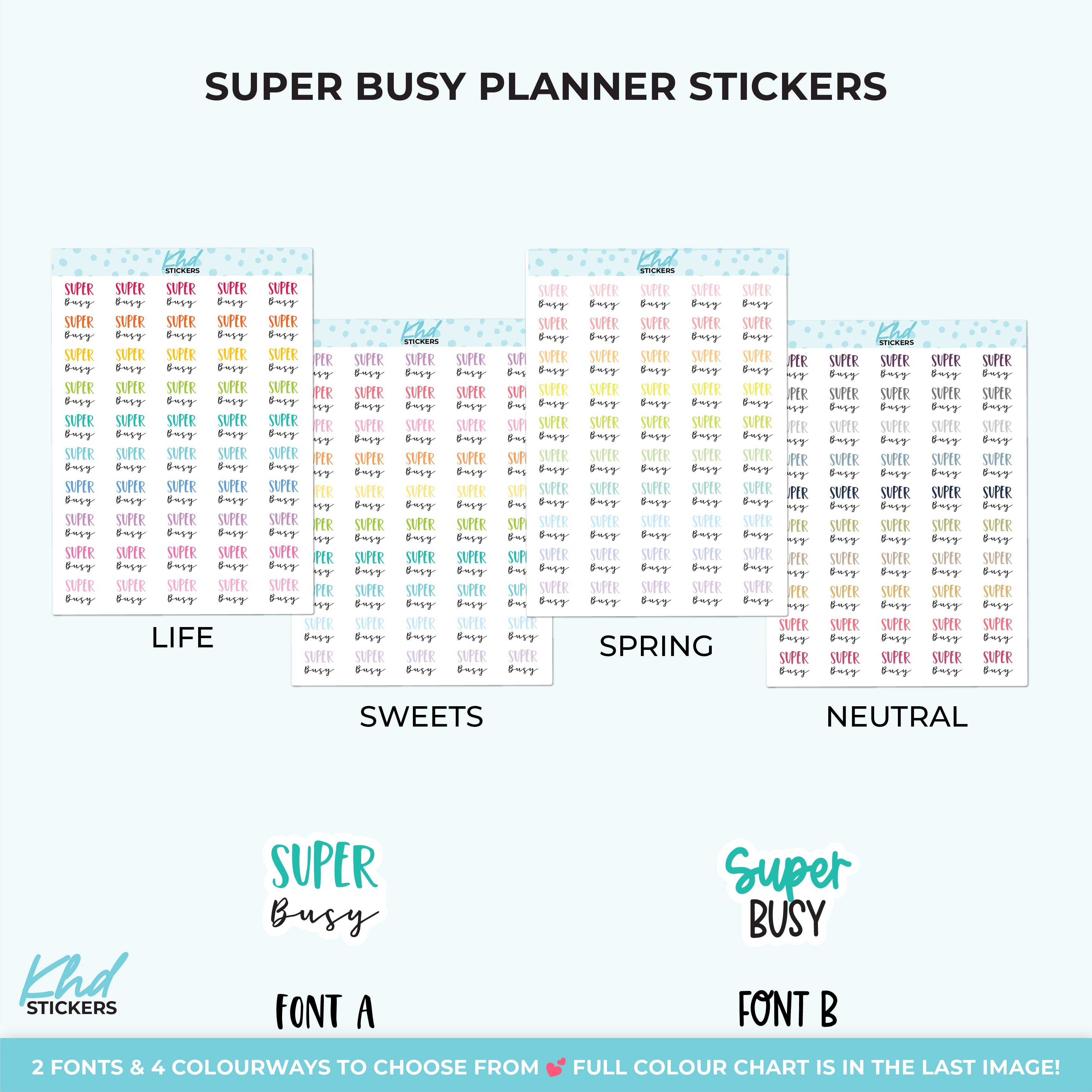 Super Busy Planner Stickers. Select from one of 4 colourways, or select a sheet of your favourite colour. Available in three great sizes making it easy to match your planning style.