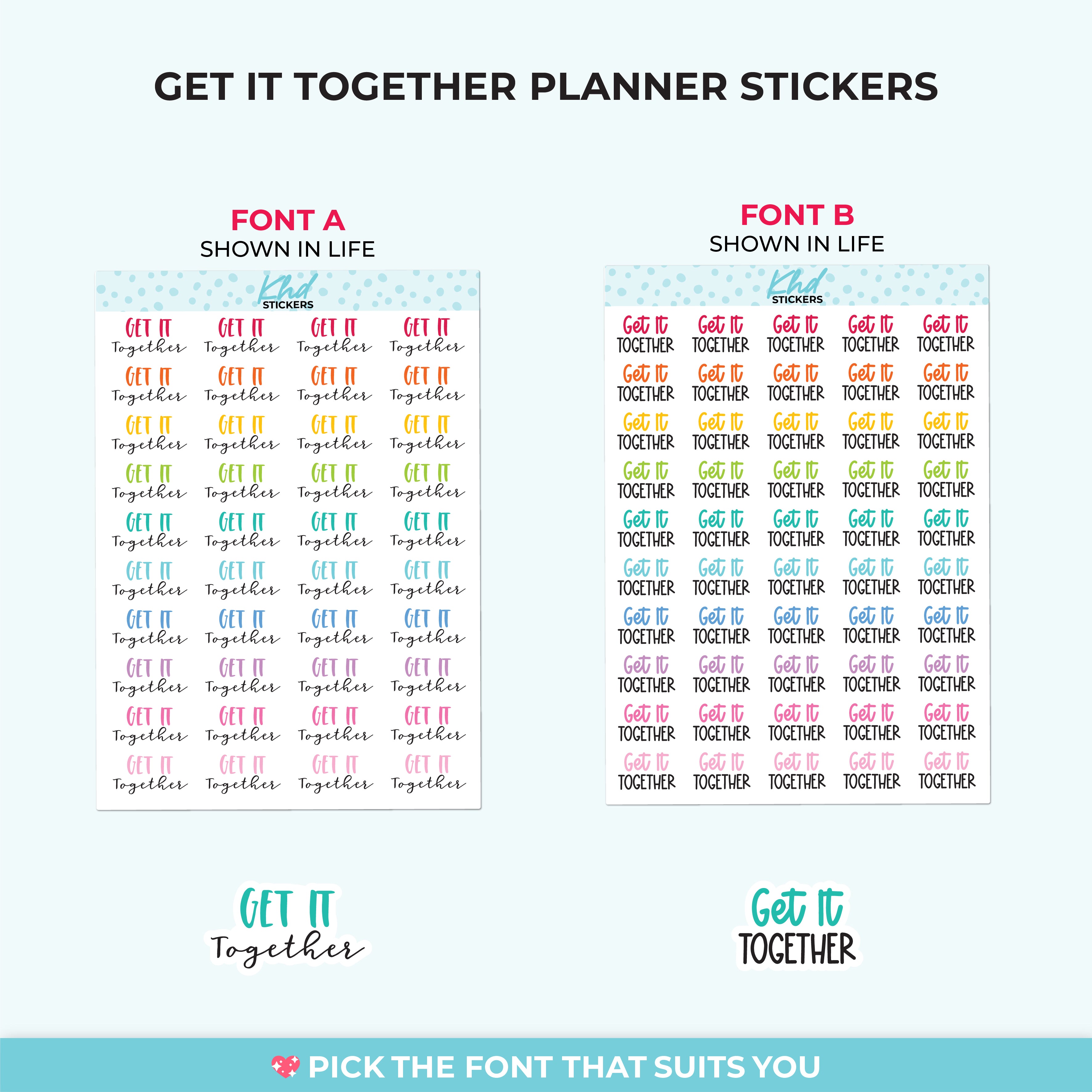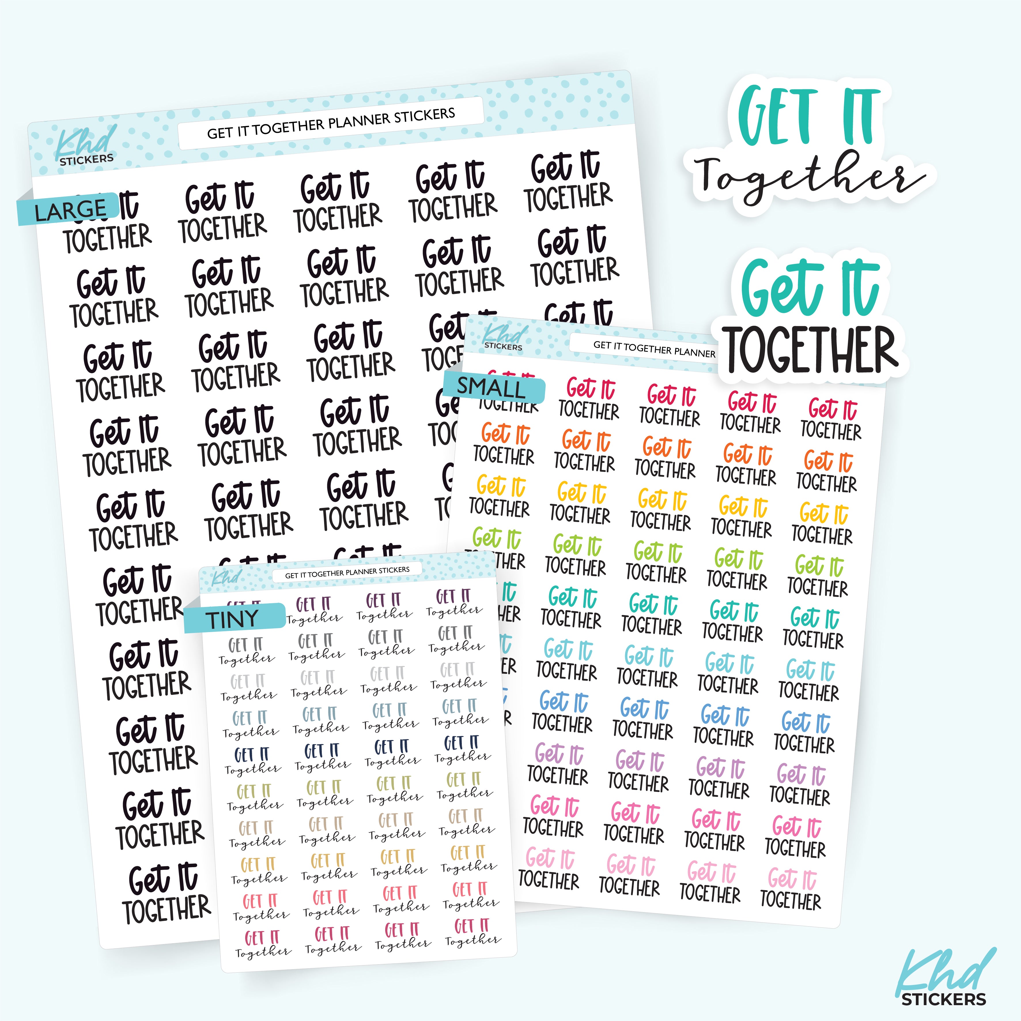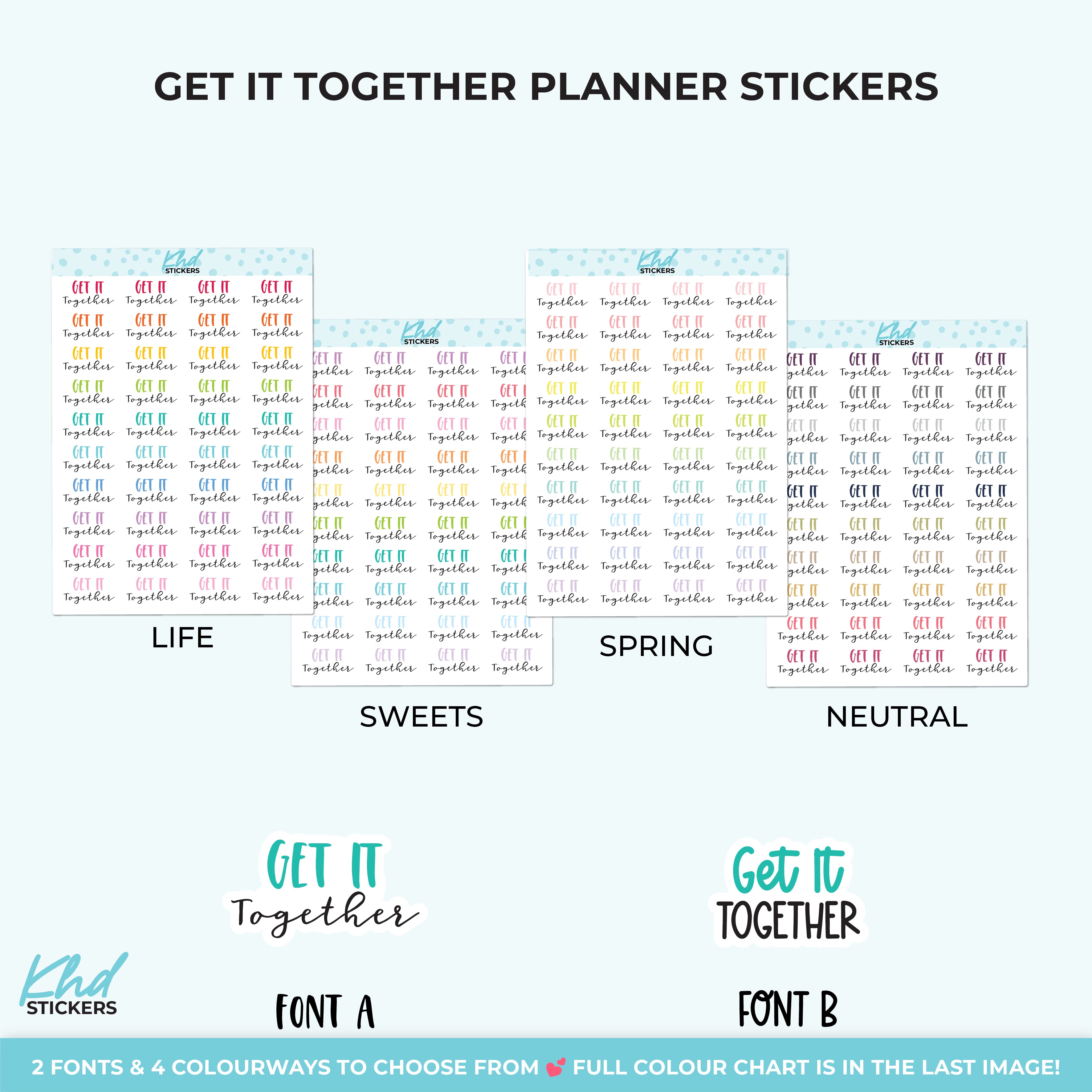 Get It Together Planner Stickers. Select from one of 4 colourways, or select a sheet of your favourite colour. Available in three great sizes making it easy to match your planning style.