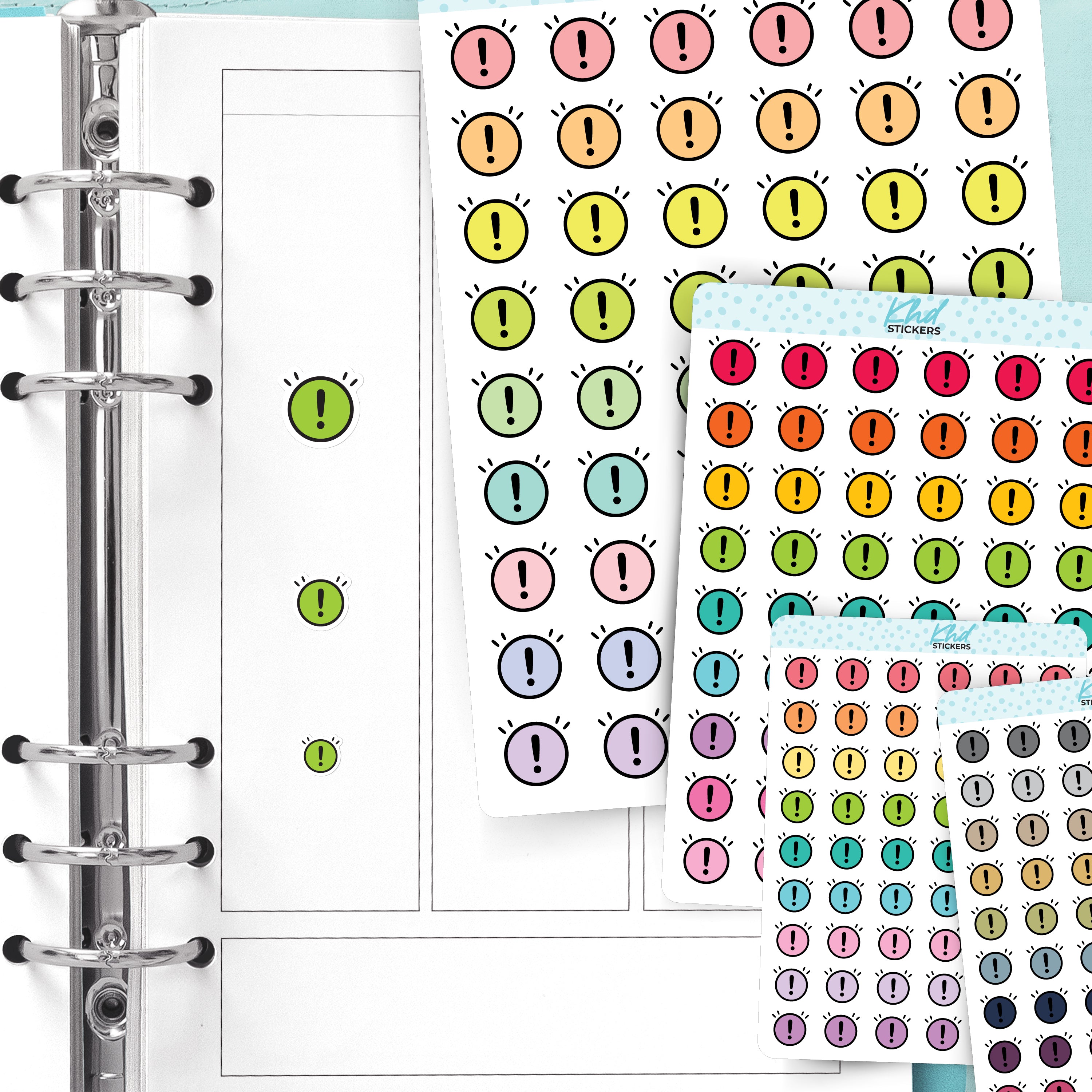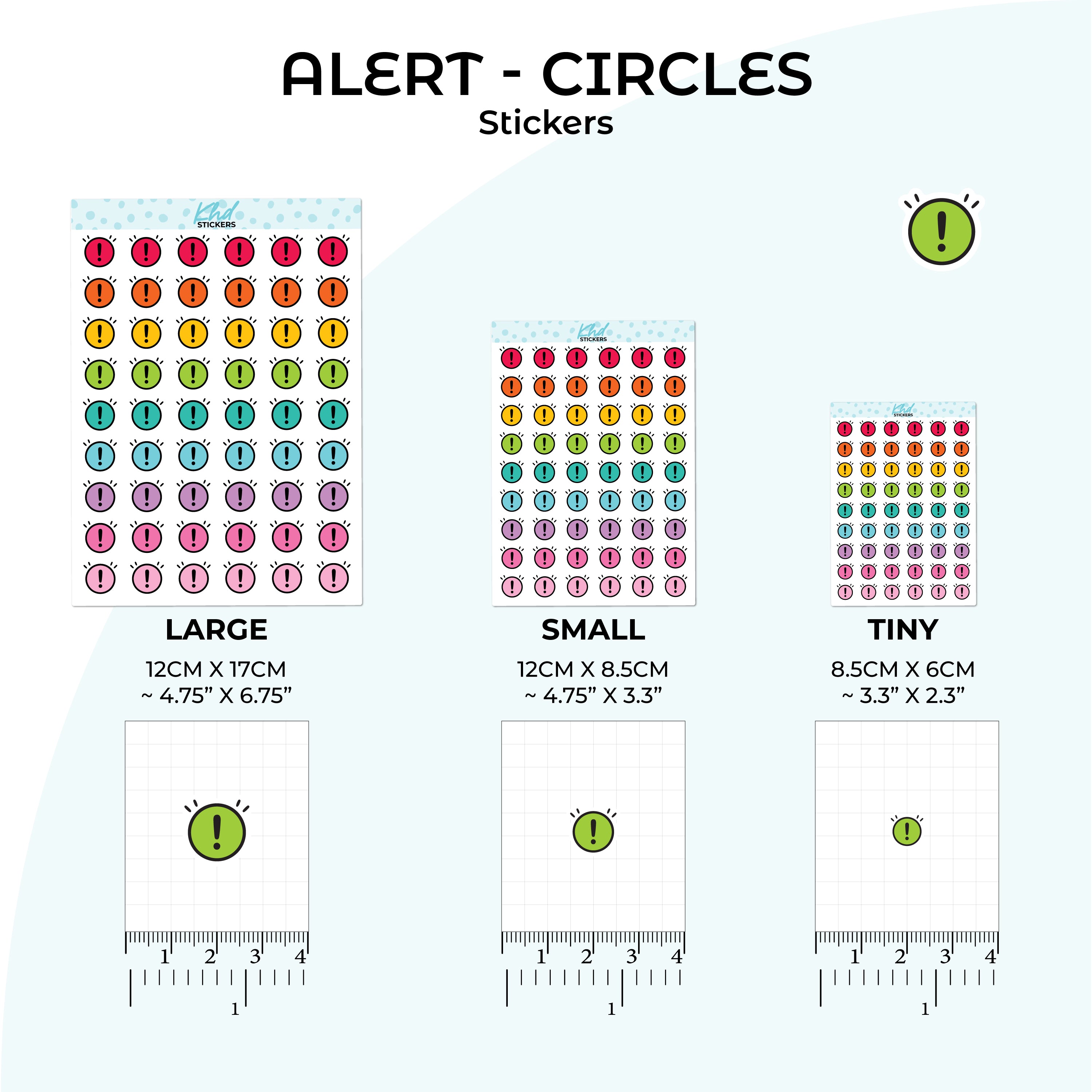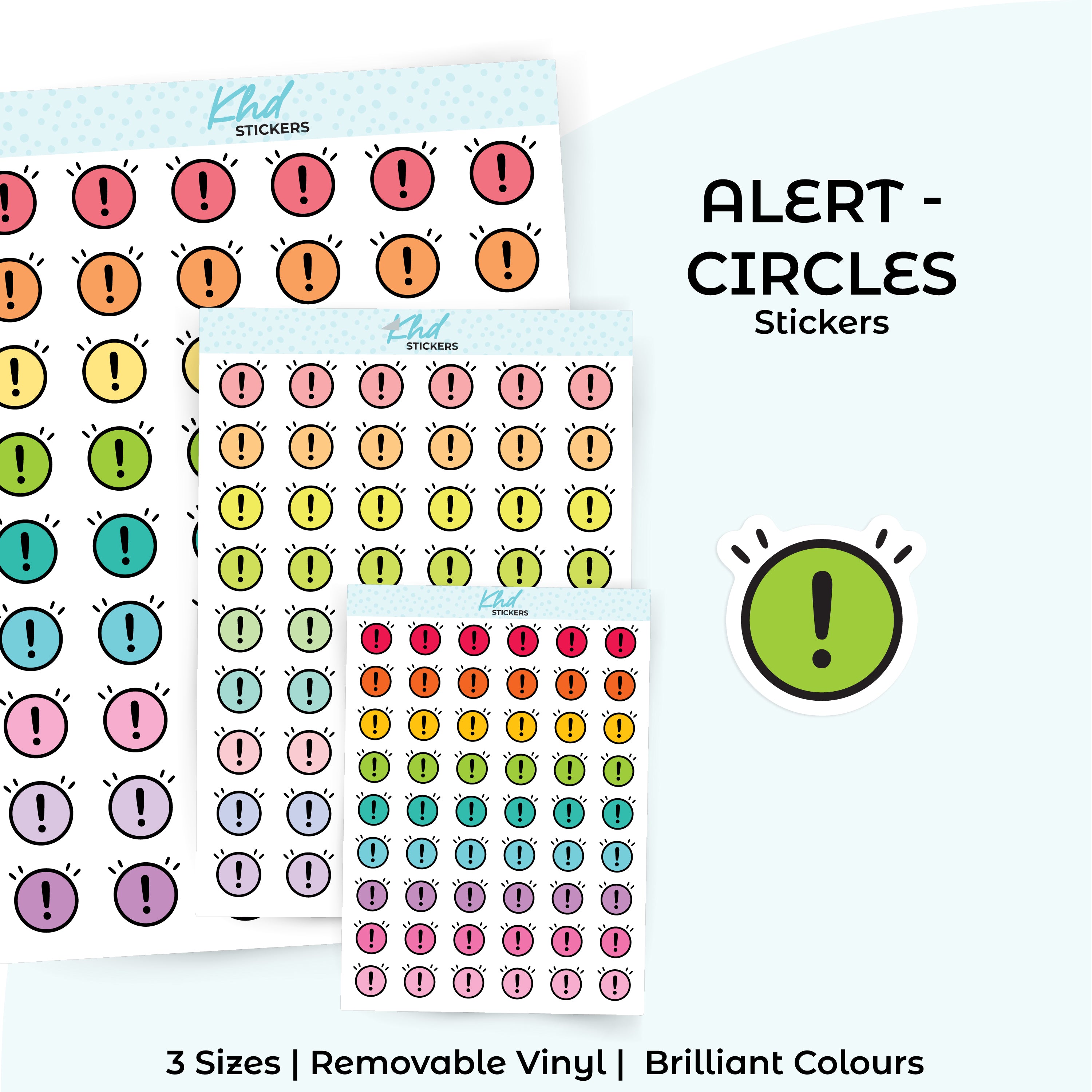 These alert circle stickers bring a soft but clear reminder wherever you place them. Ideal for noting high-priority tasks or daily highlights. Their simple round shape fits easily into boxes, checklists, or margins.