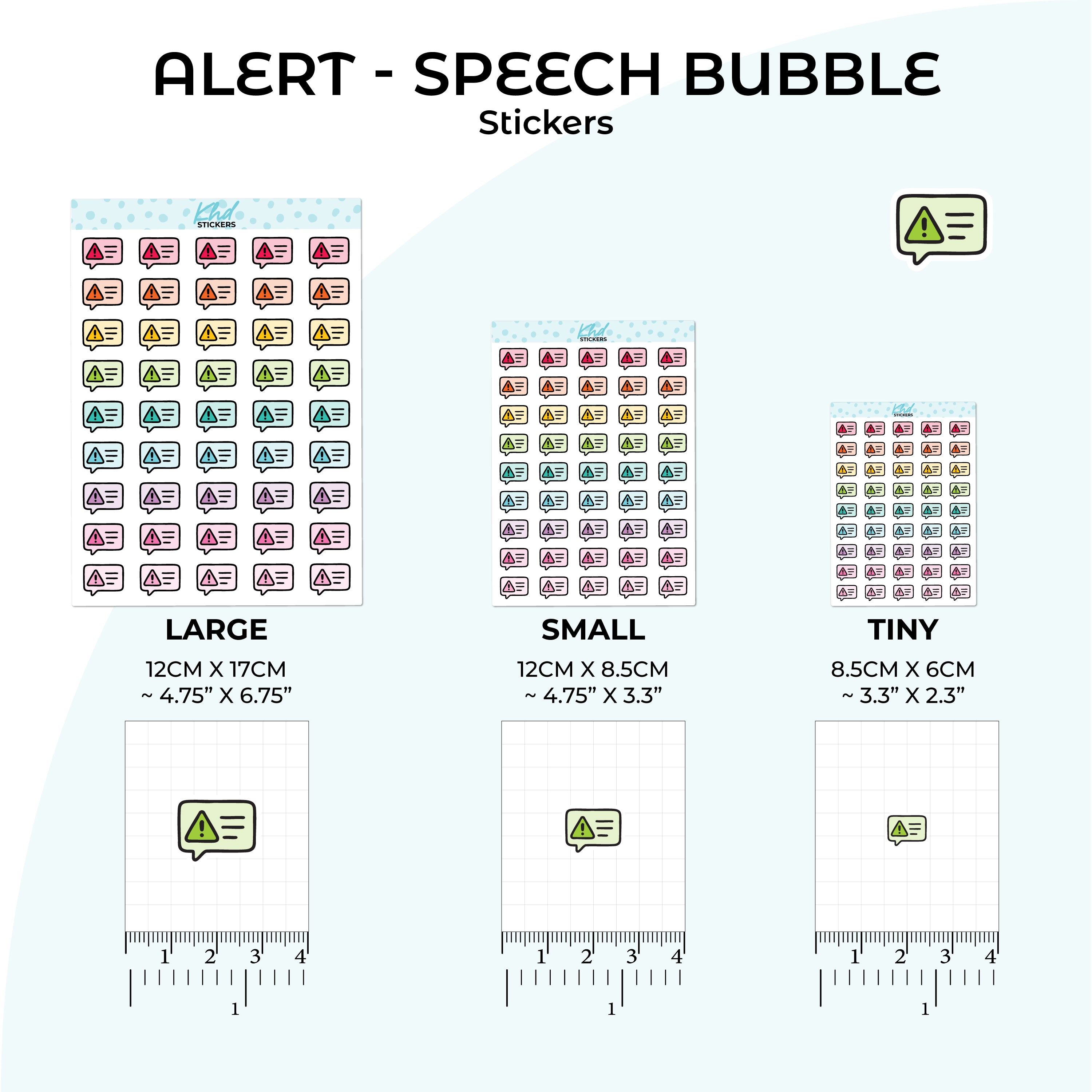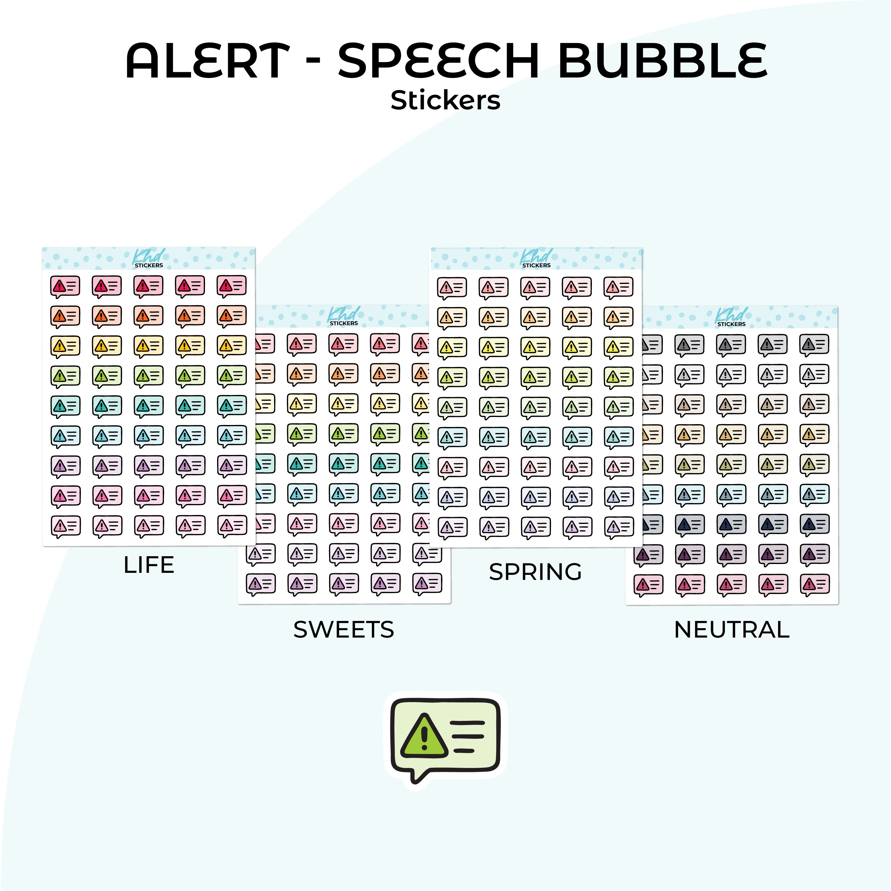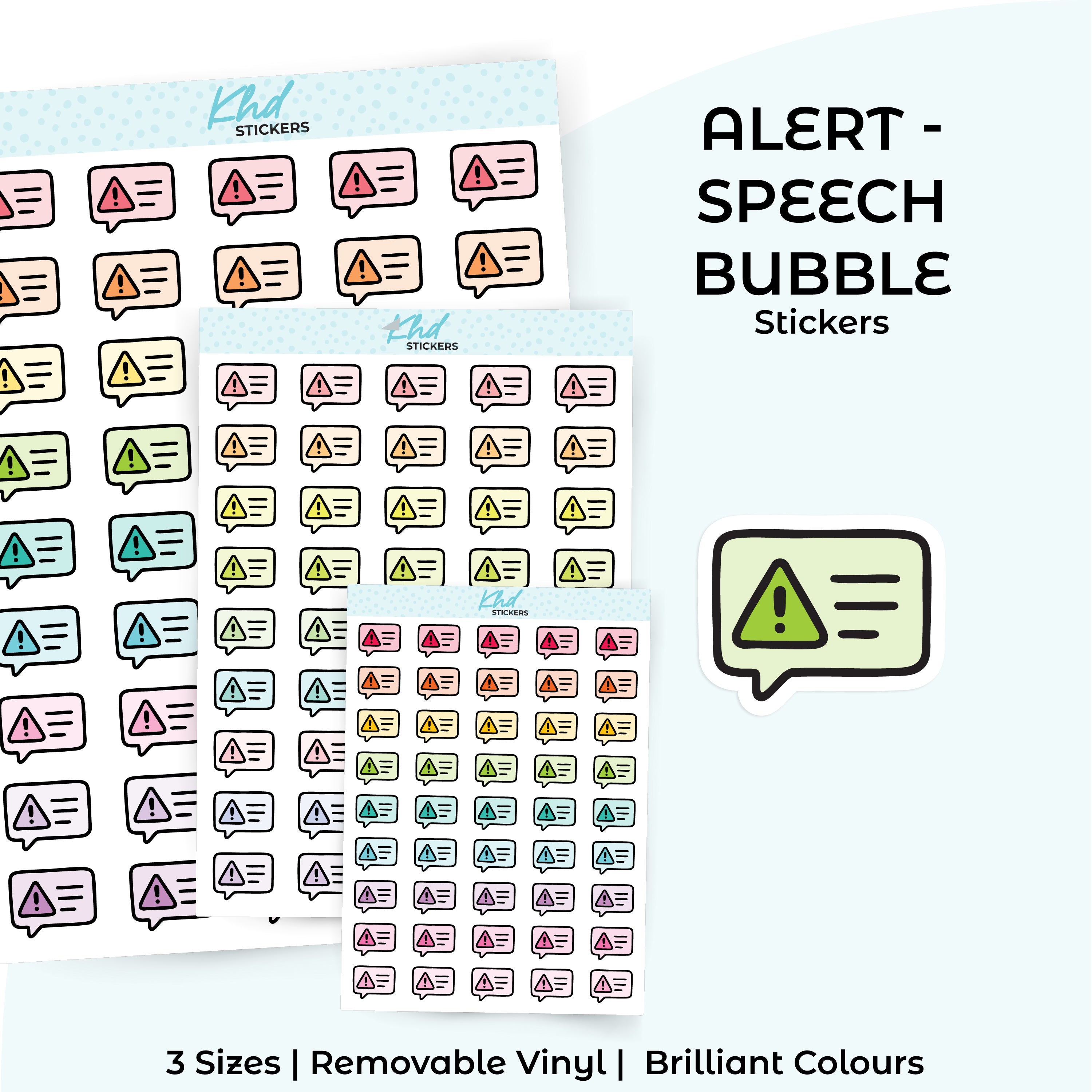 Alert - Speech Bubble Planner Stickers in three sizes and 35 colourways. Removable, smooth-matte finish.