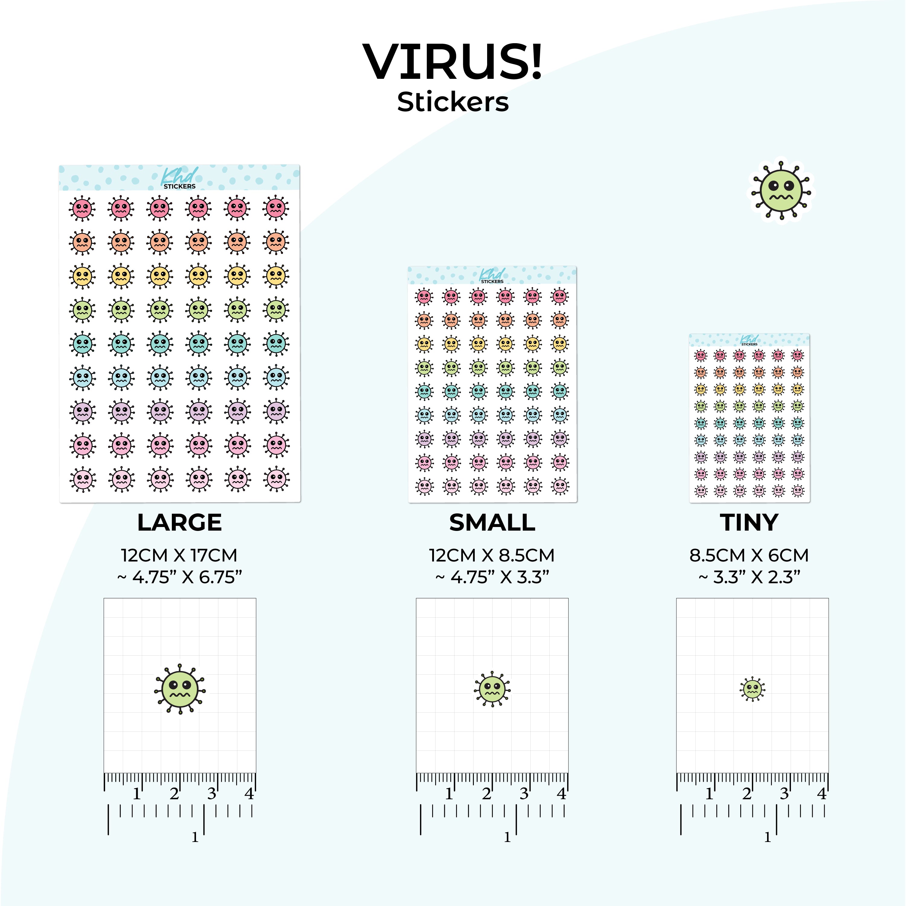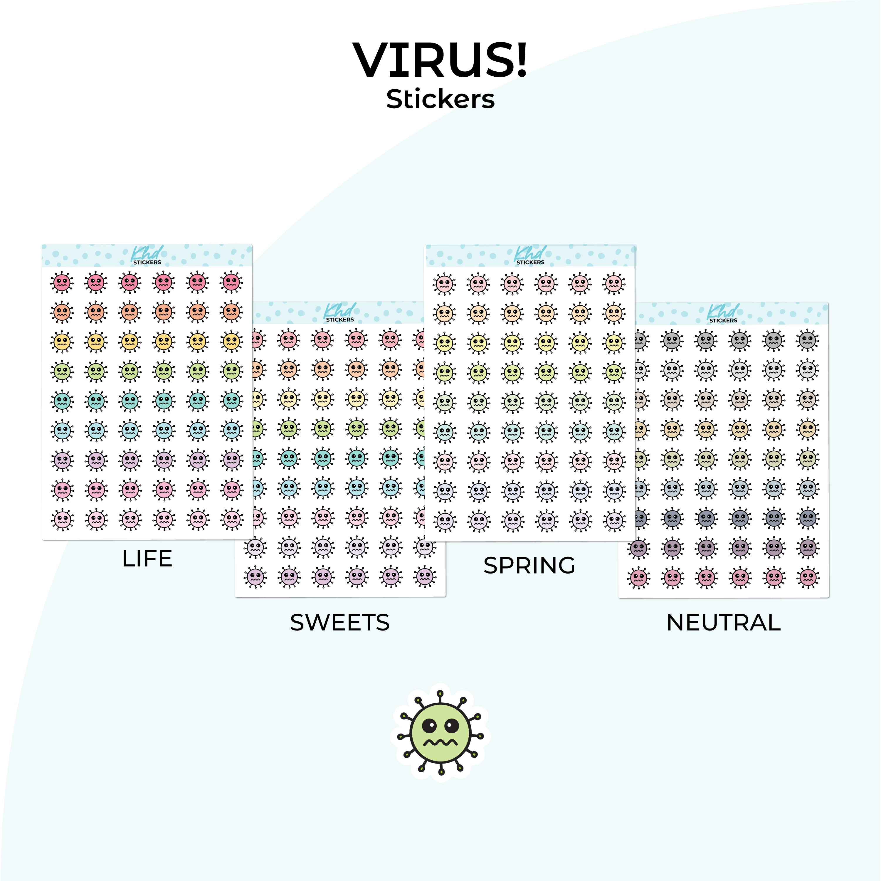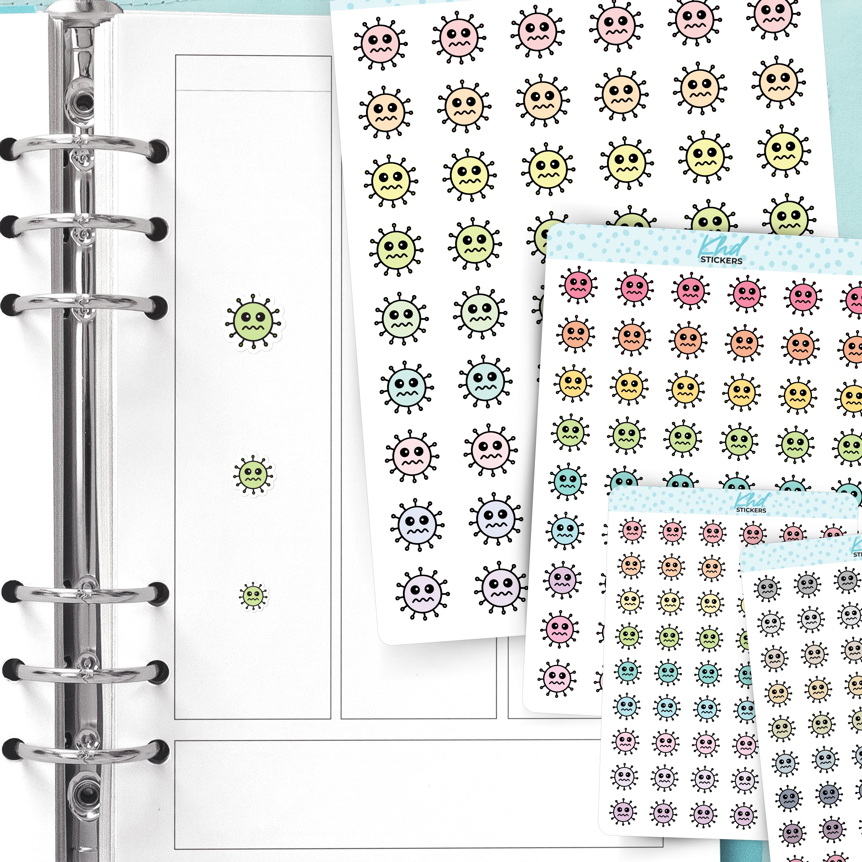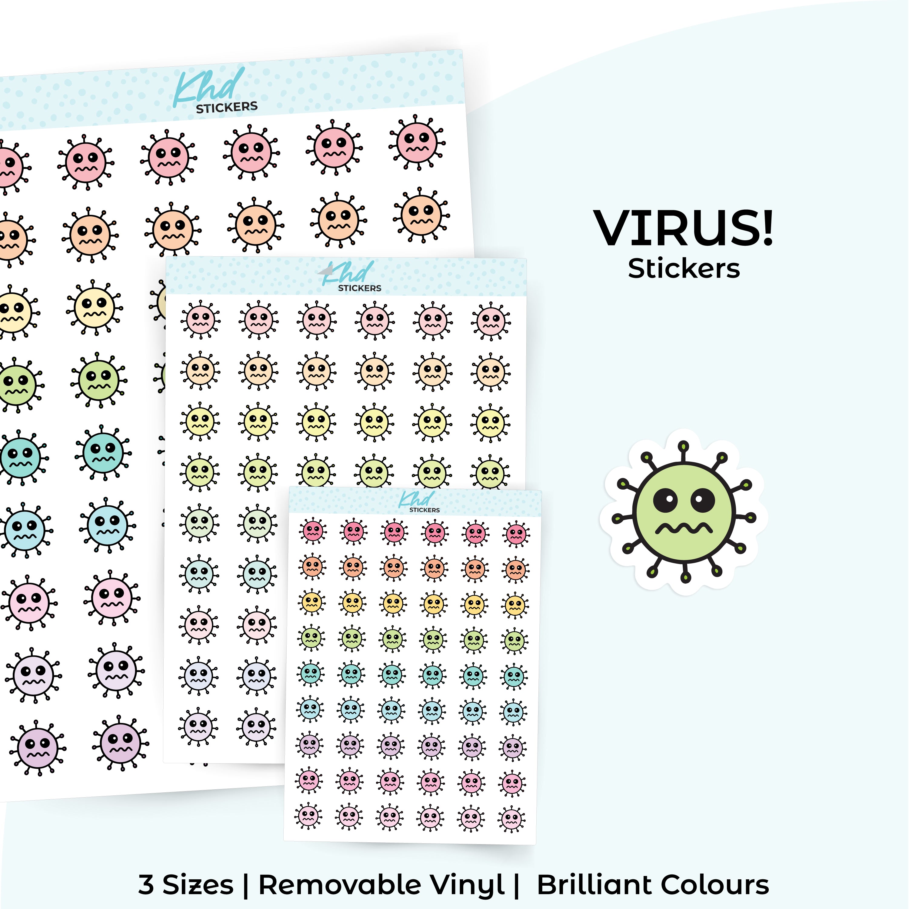 Virus! Planner Stickers in three sizes and 35 colourways. Removable, smooth-matte finish.