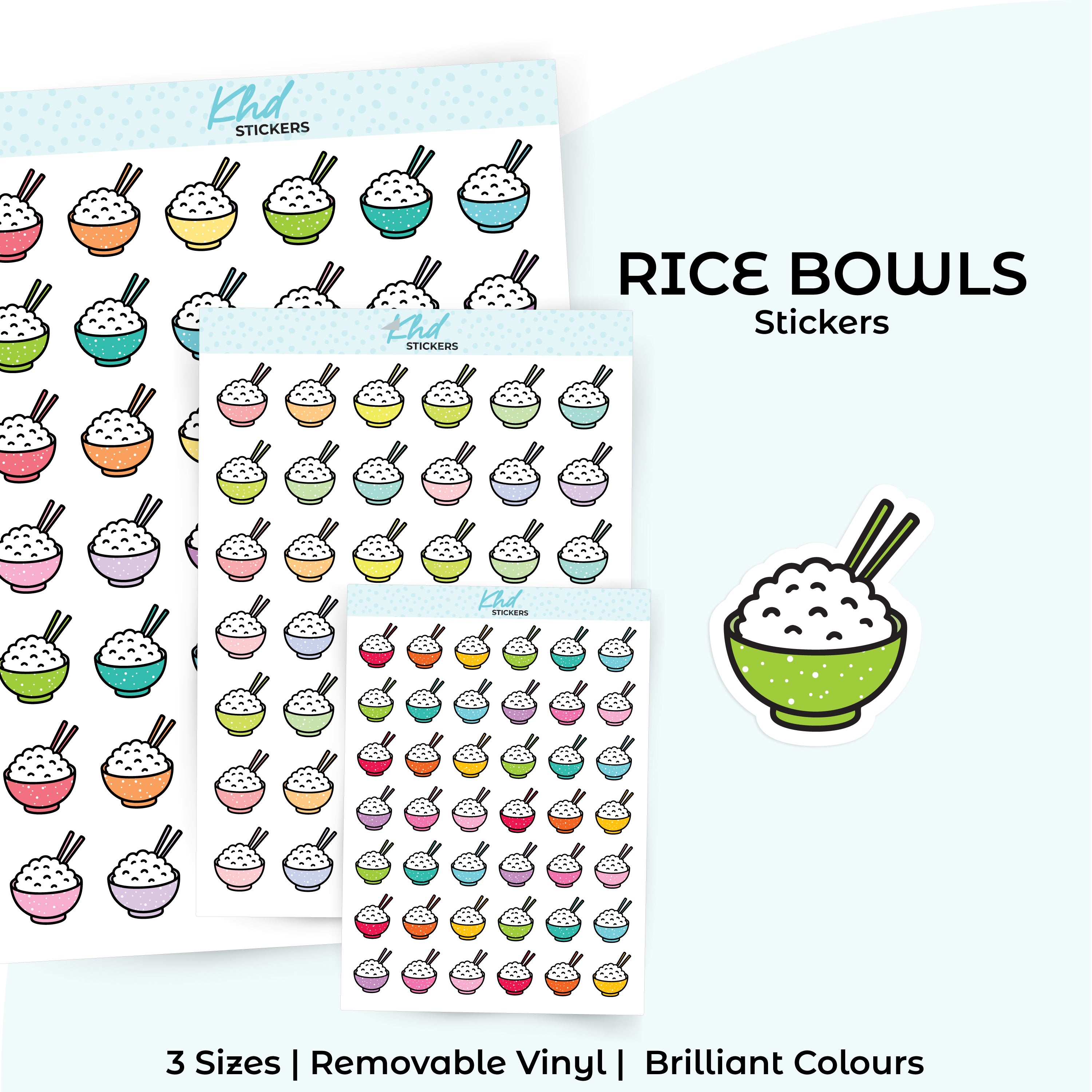 Rice Bowls Planner Stickers in three sizes and 35 colourways. Removable, smooth-matte finish.