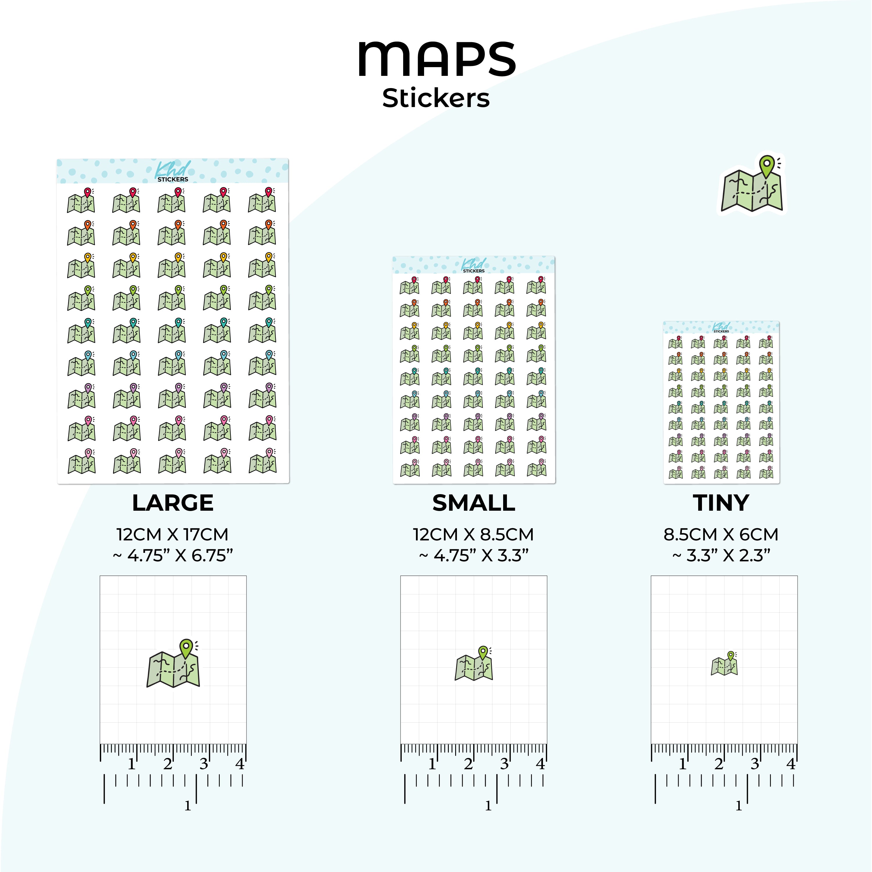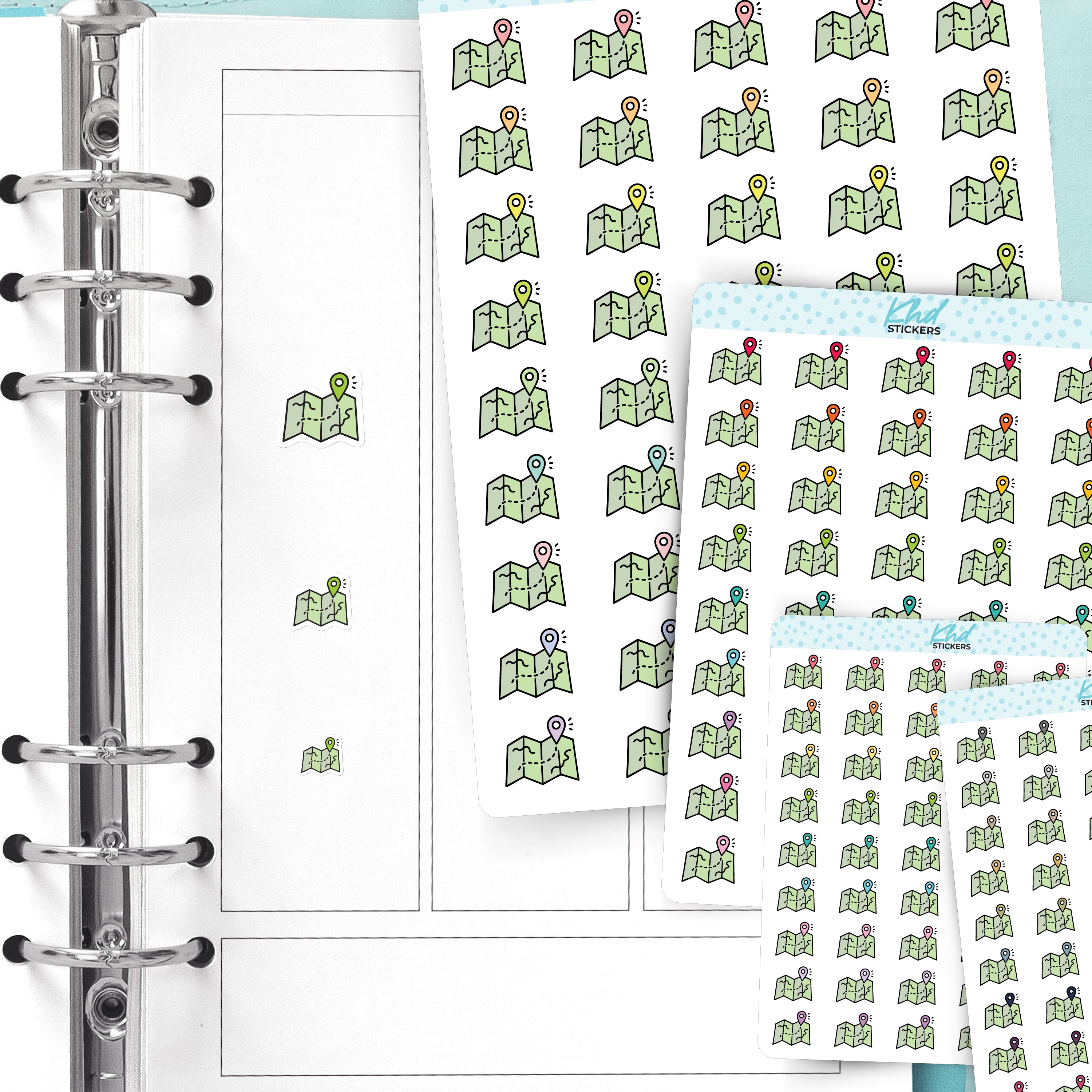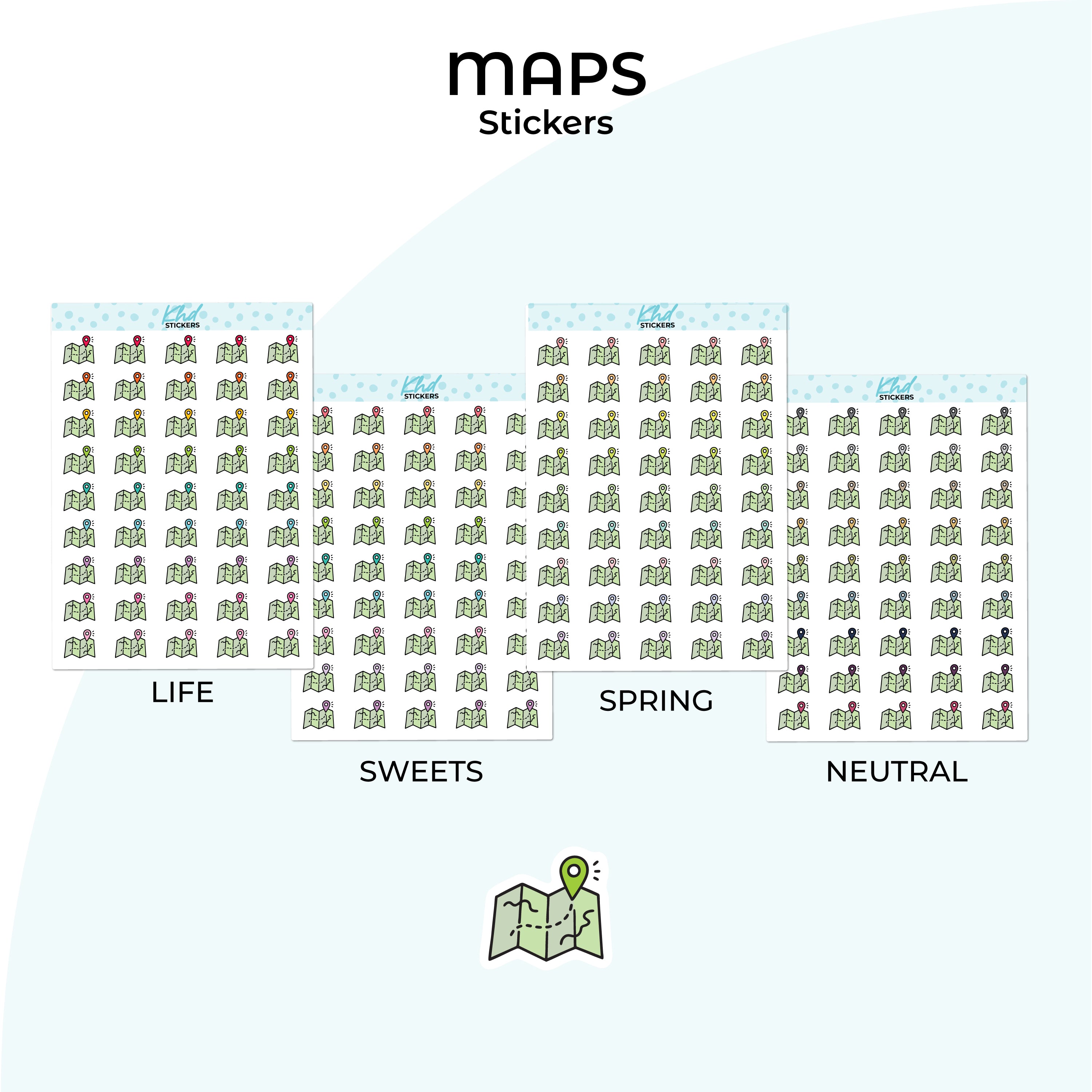 Maps Planner Stickers in three sizes and 35 colourways. Removable, smooth-matte finish.