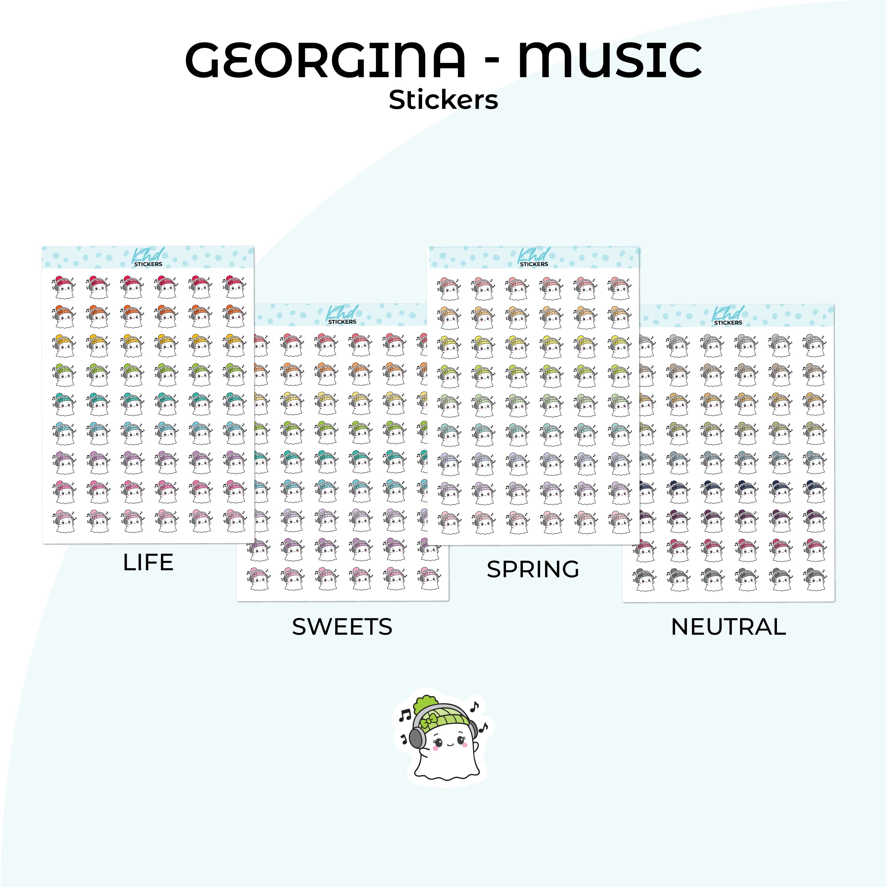 Georgina with music to track practice, lessons, gigs and playlists in your planner or diary.