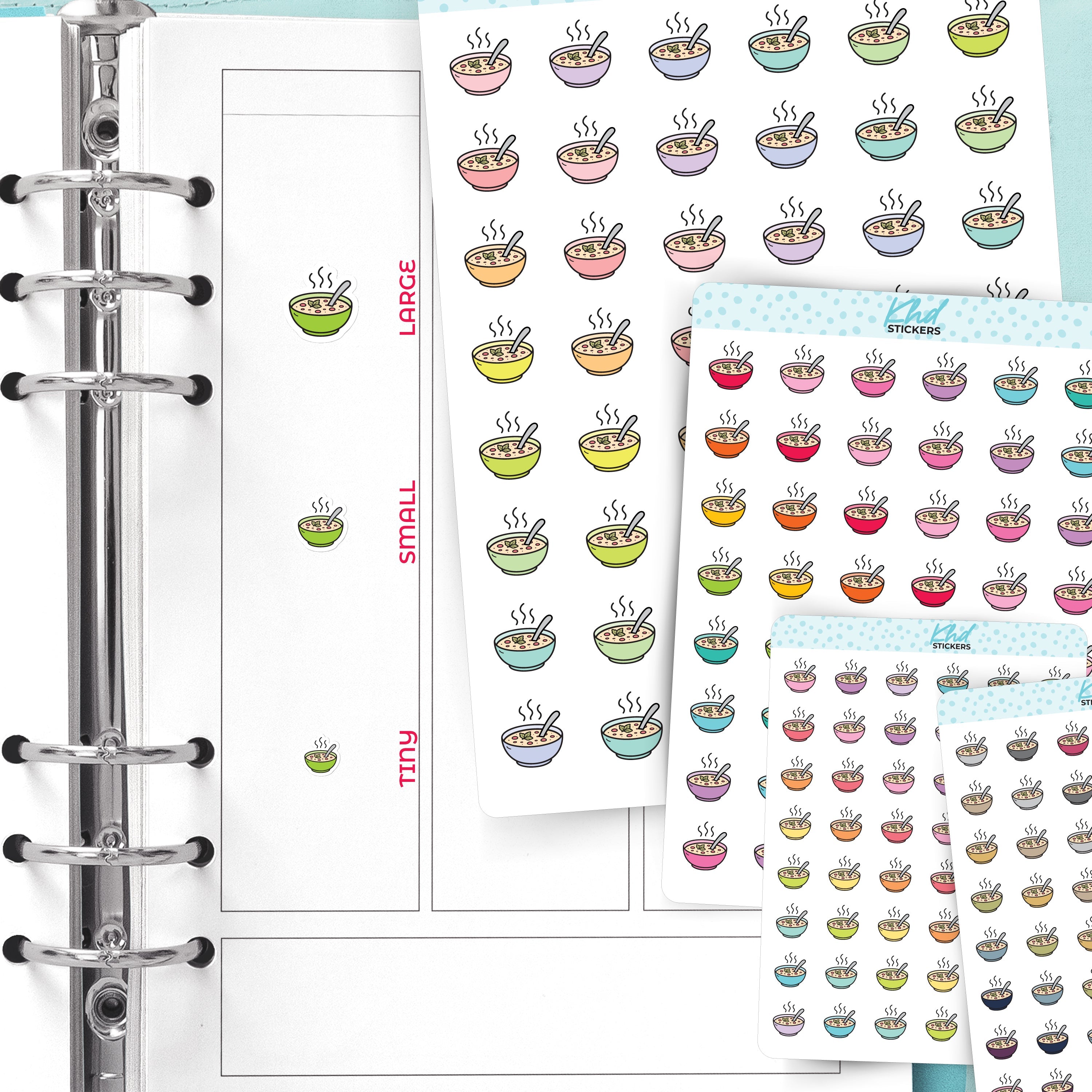 Cute functional soup icons for planners, diaries, and journals.