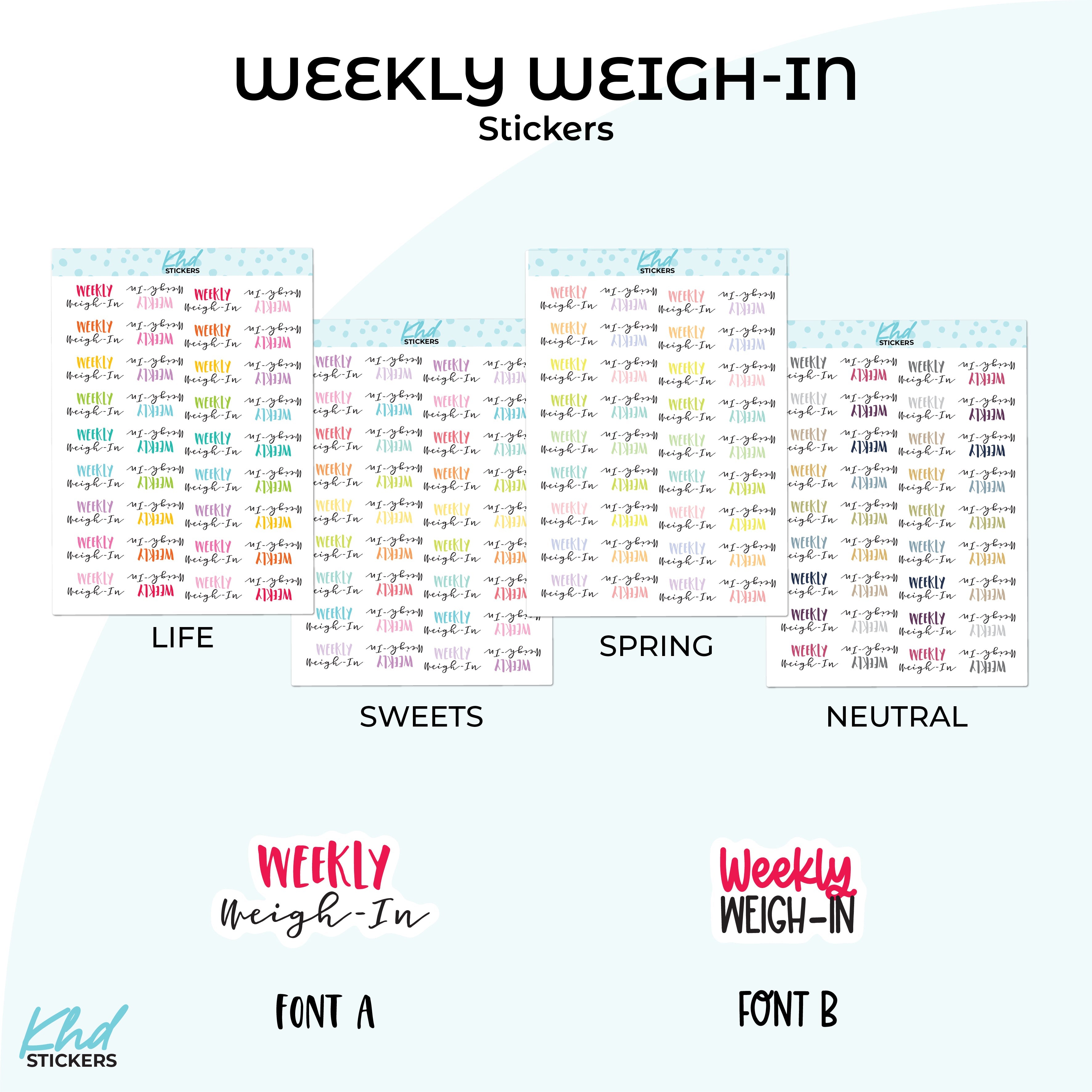 Stay consistent with your progress tracking using simple weigh-in reminders. Perfect for fitness and health planning. Two font styles included.