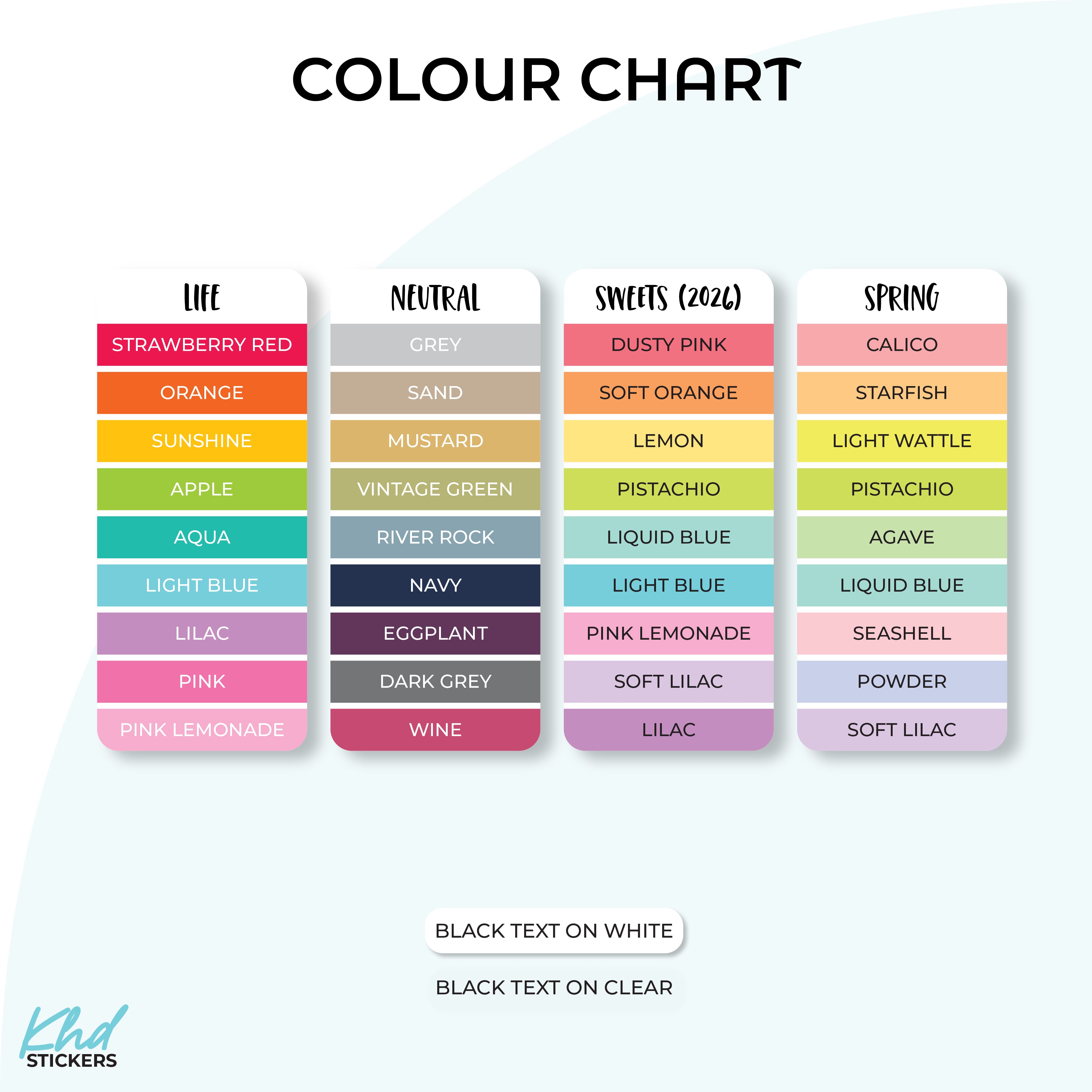 Vinyl can be removed or repositioned on most papers for up to 6 months, and comes your choice of colourways and individual colours. Permanent Markers are the preferred pen.